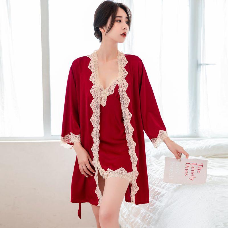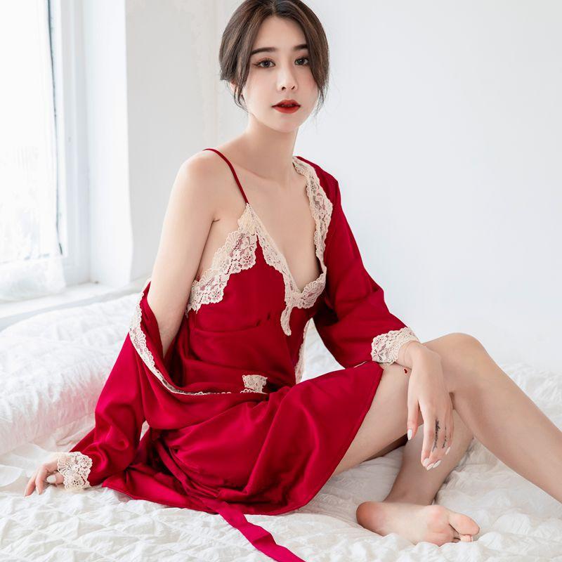 Camisón sexy de seda helada para mujer, novedad de primavera y otoño de 2023, pijama de dos piezas, popular en Internet, conjunto de ropa para el hogar