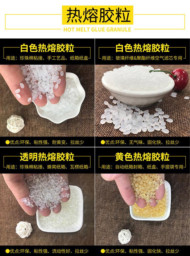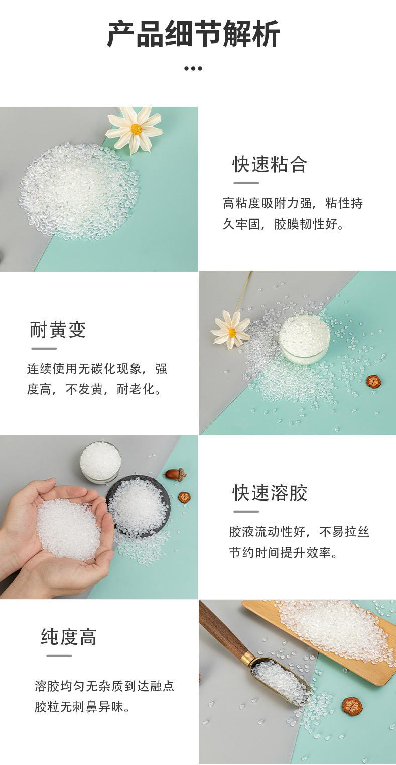 Weiwang algodón perlado pegamento termofusible embalaje encuadernación de libros pegamento para sellado de bordes pegamento de curado partículas termofusibles transparentes de alta viscosidad