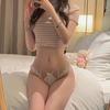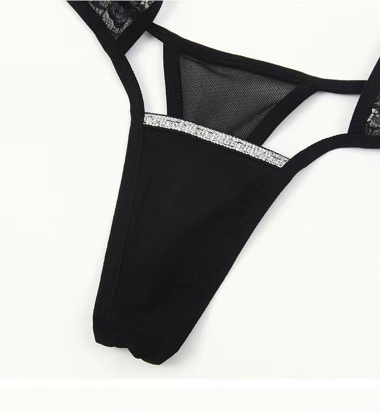 Ropa interior sexy con borde de encaje de pestañas puras para mujer, tanga interior sexy con cordones y tentación