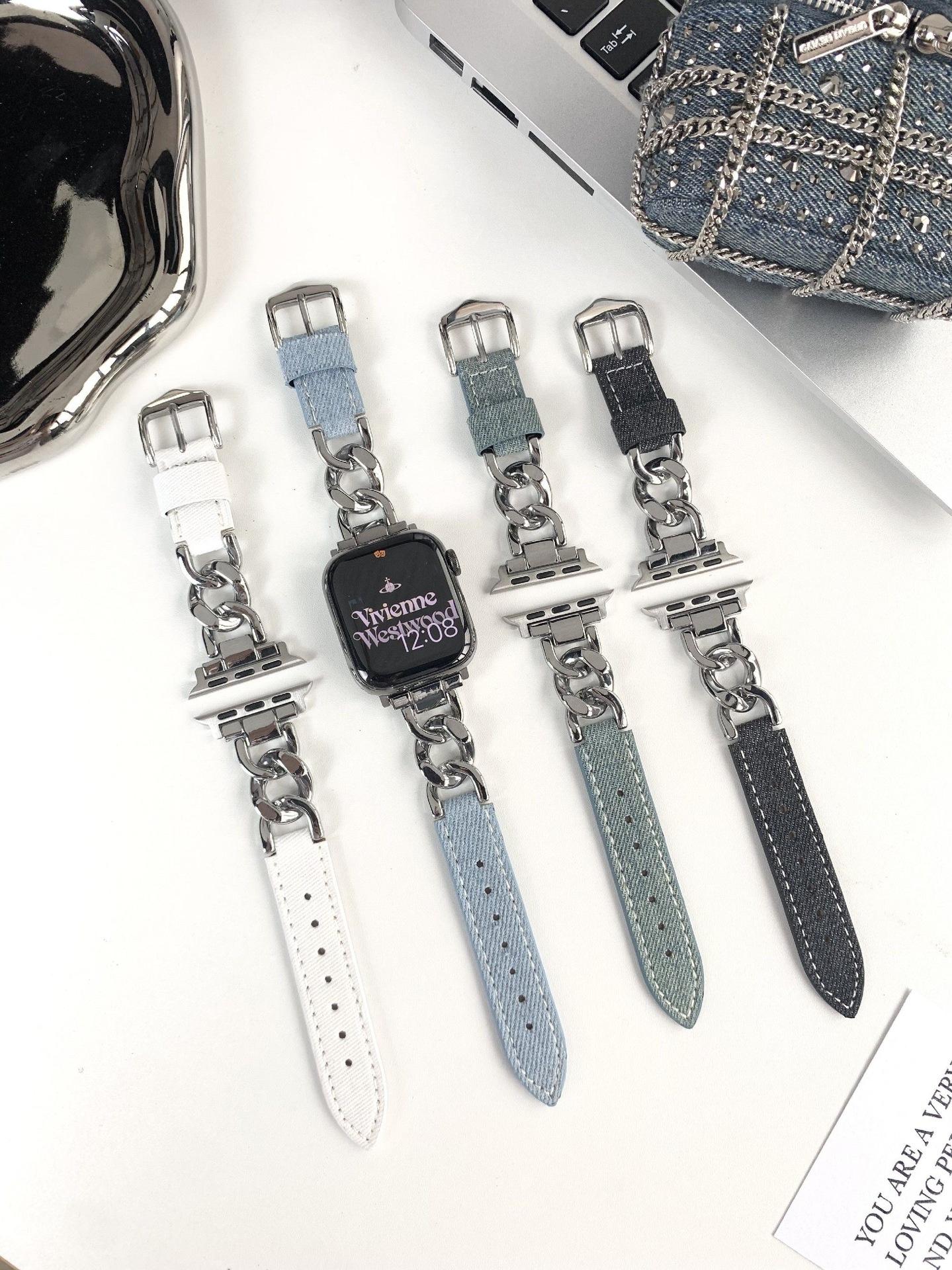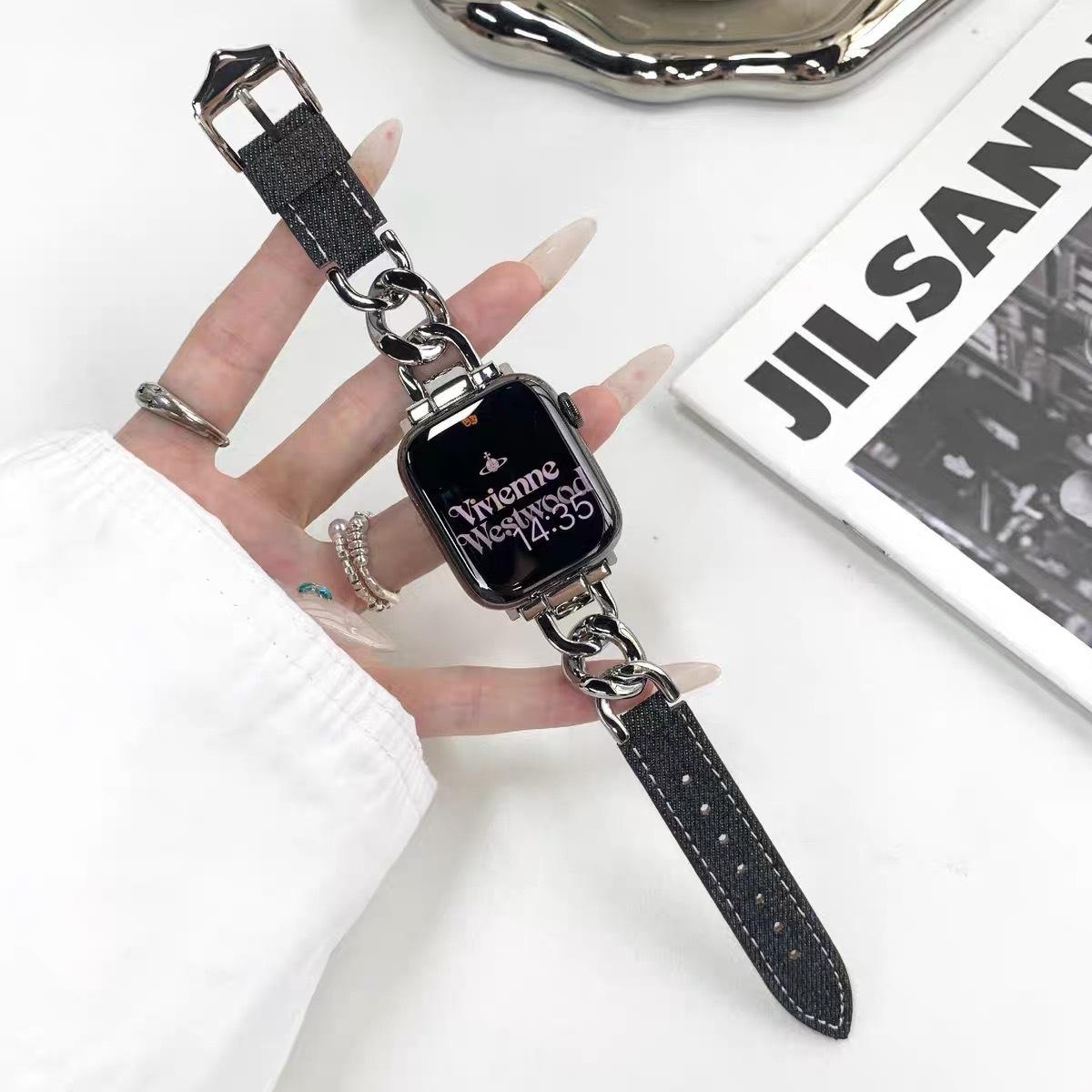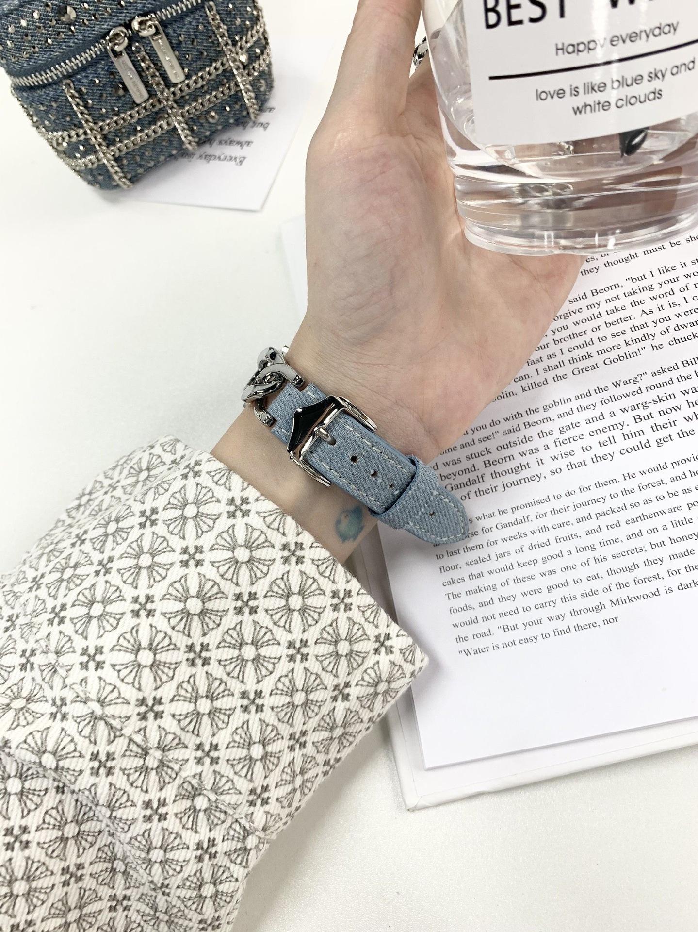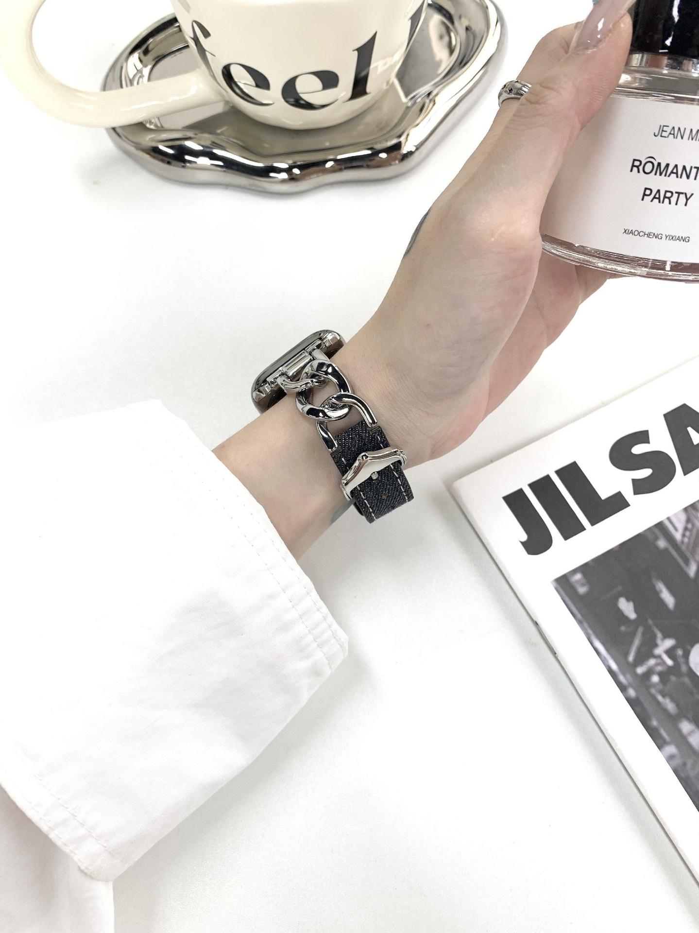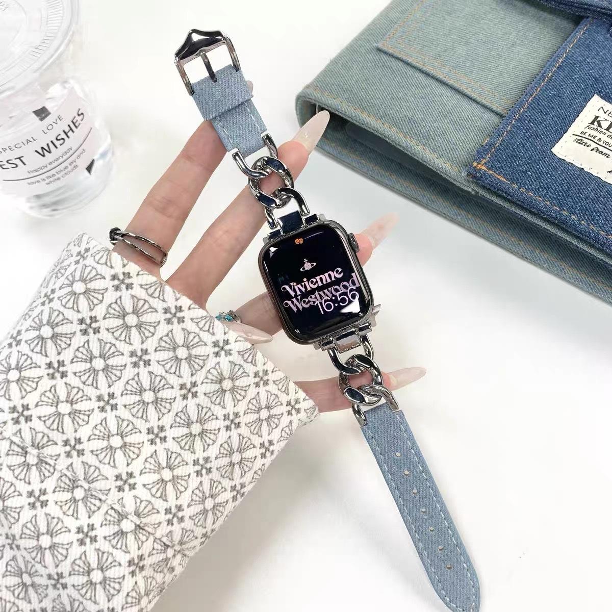 Adecuado para Apple Watch Apple Watch 1-9 Generación Correa de metal de cuero de mezclilla