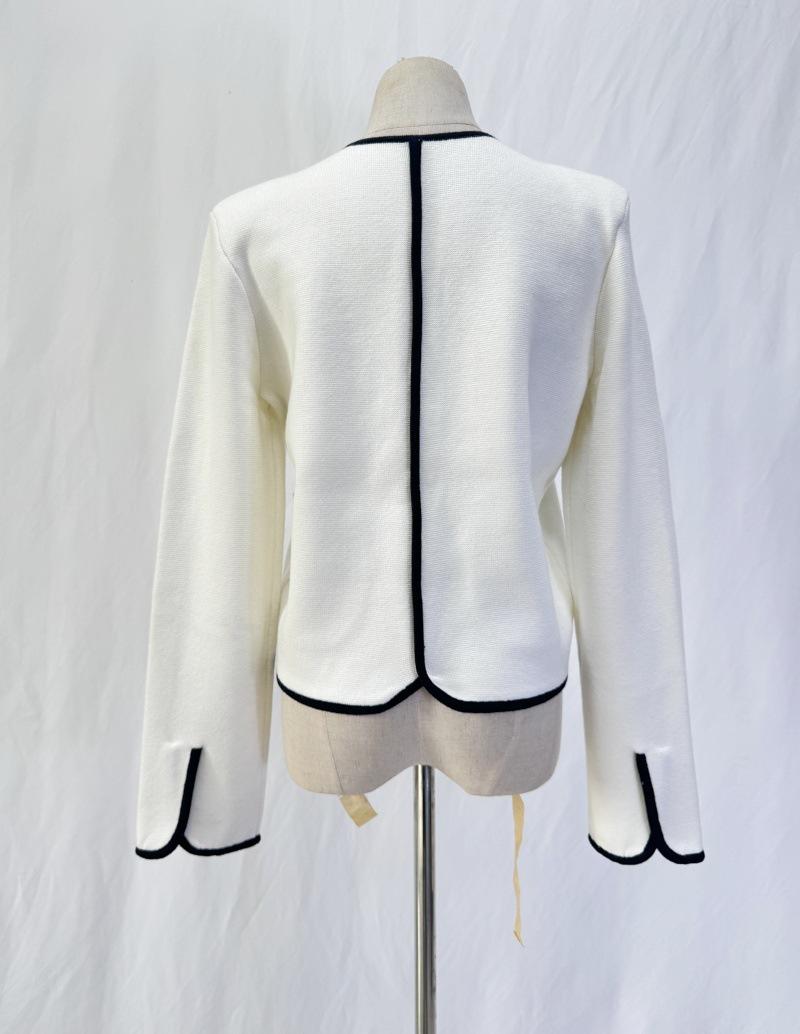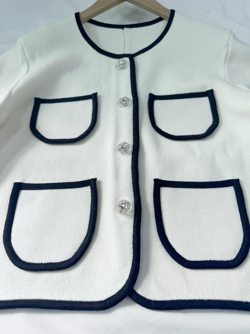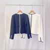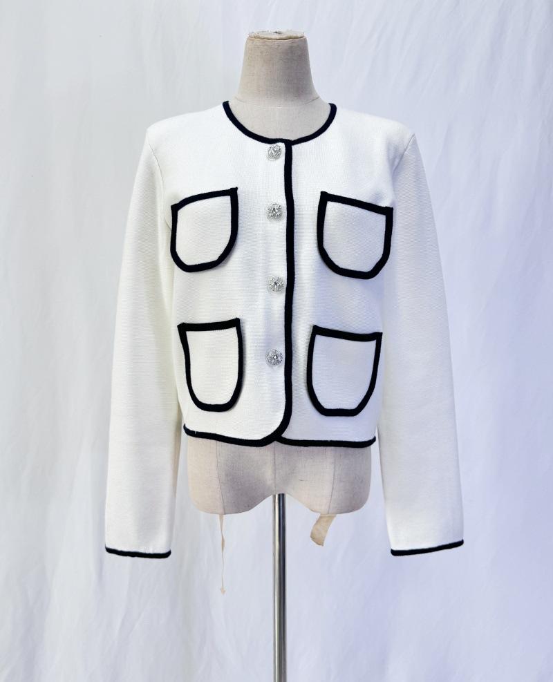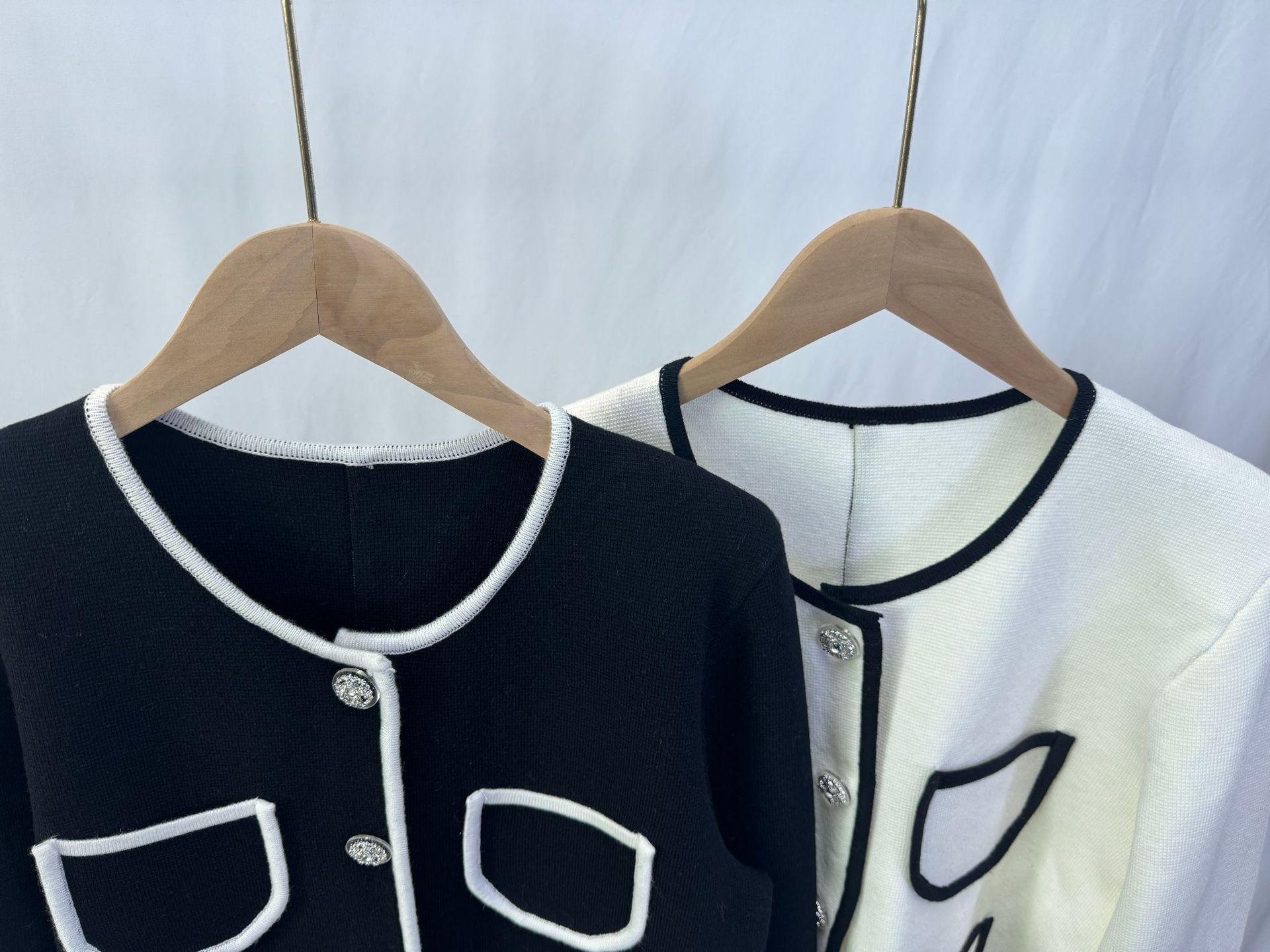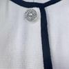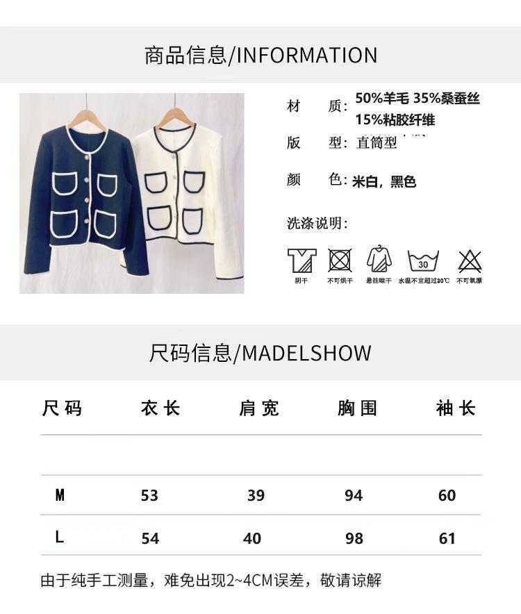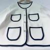 24 Primavera Nuevo Elegante Estilo Chanel Pequeño Color Contraste Botón de Uña Colgante Lana de Seda Manga Larga Tejido Chaqueta Cárdigan Corta