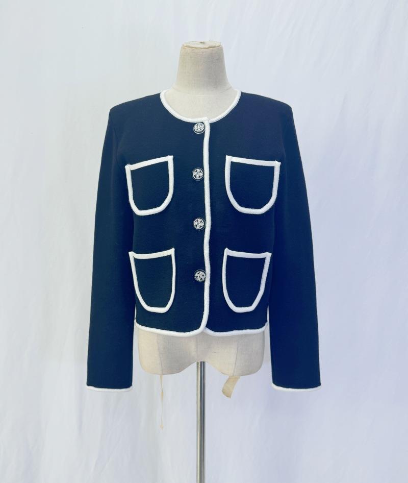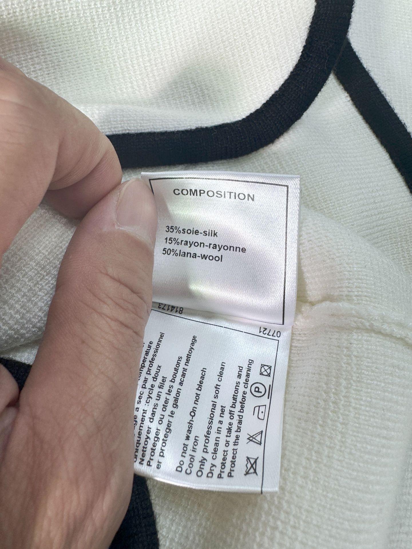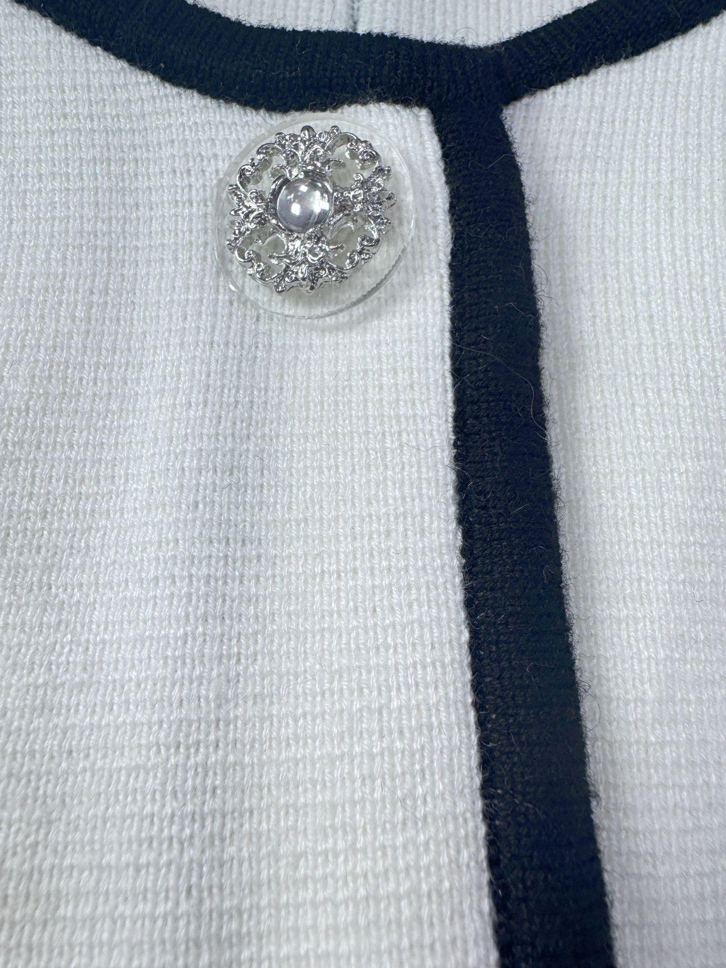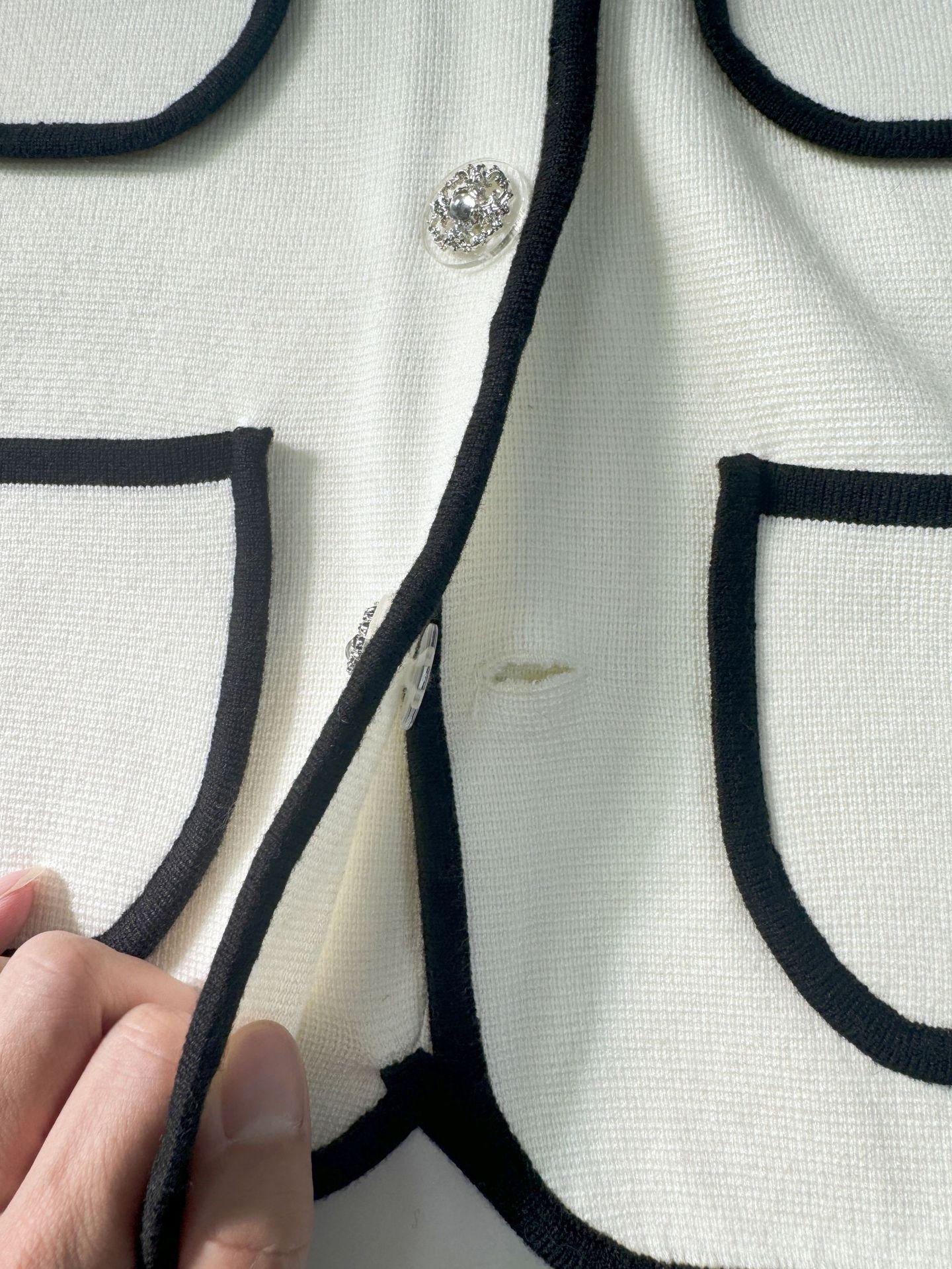 24 Primavera Nuevo Elegante Estilo Chanel Pequeño Color Contraste Botón de Uña Colgante Lana de Seda Manga Larga Tejido Chaqueta Cárdigan Corta