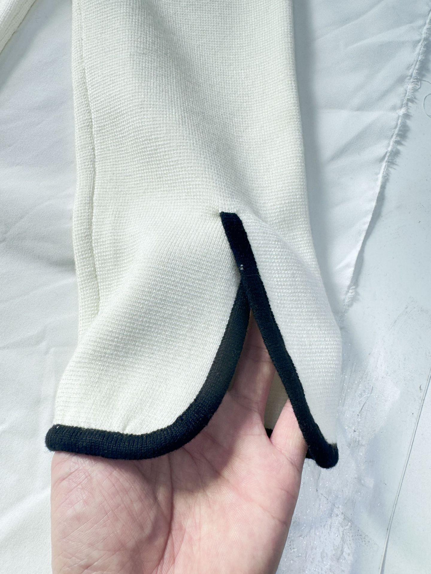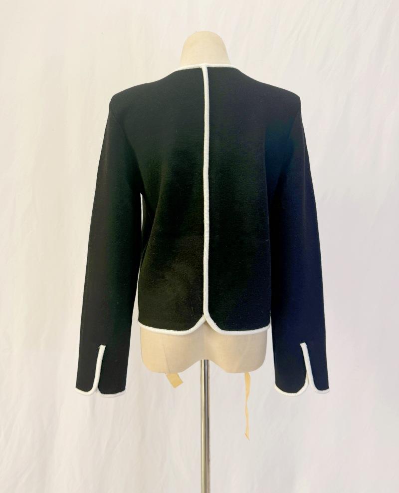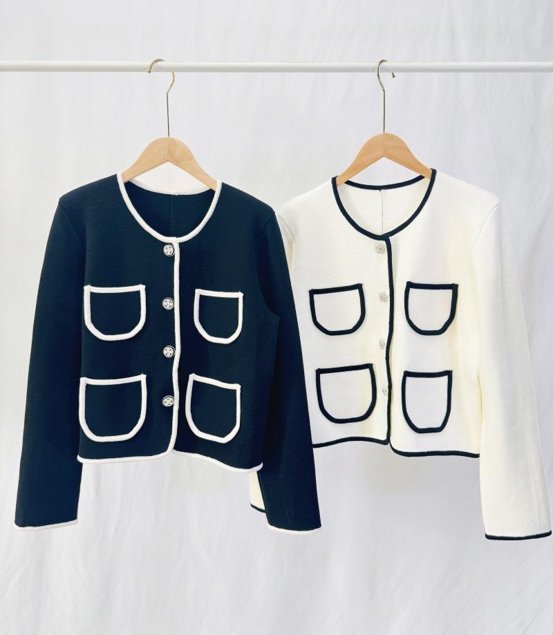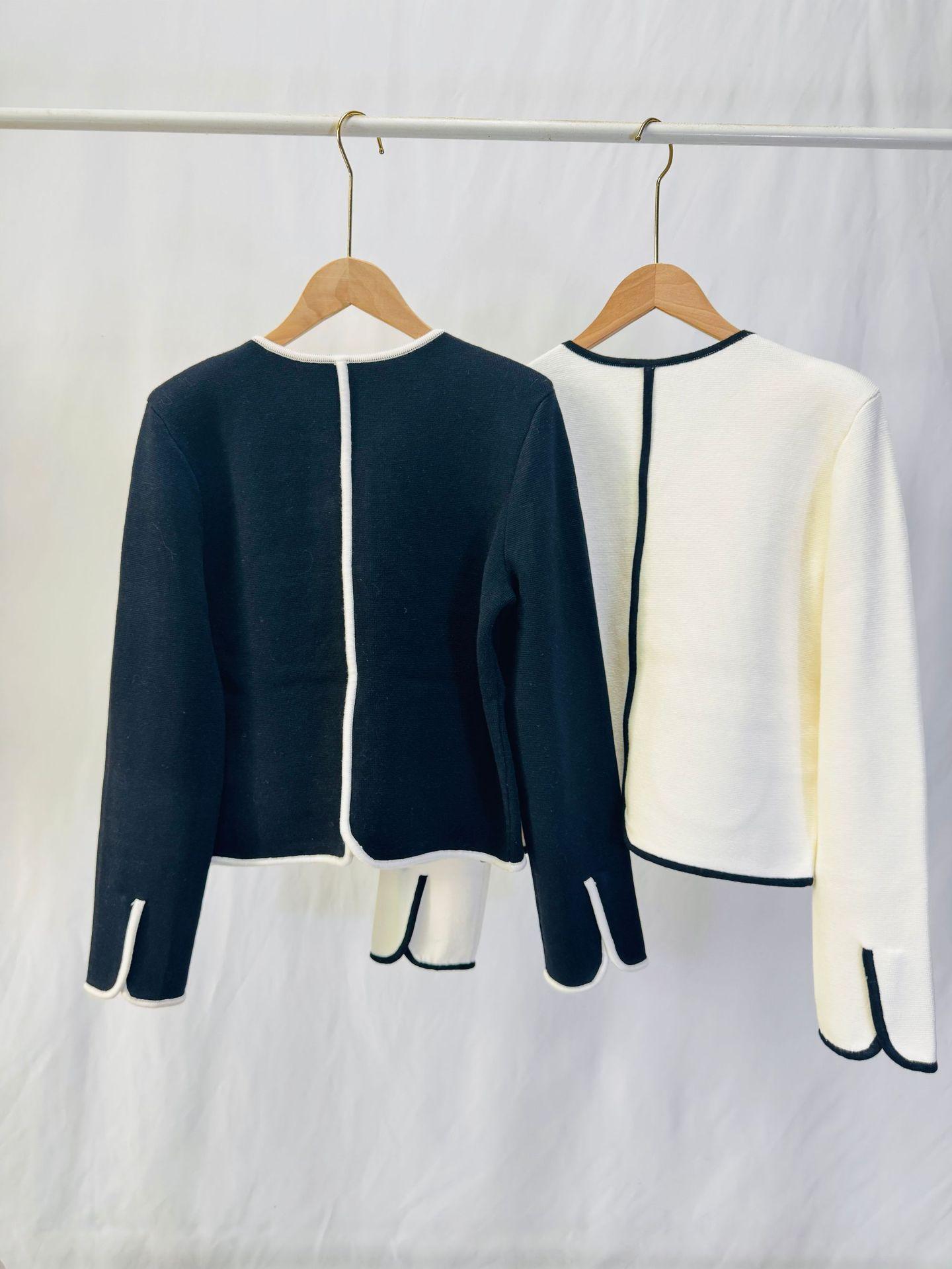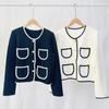 24 Primavera Nuevo Elegante Estilo Chanel Pequeño Color Contraste Botón de Uña Colgante Lana de Seda Manga Larga Tejido Chaqueta Cárdigan Corta