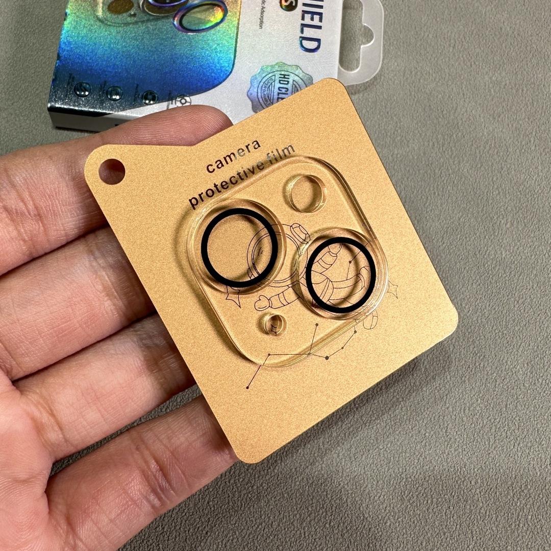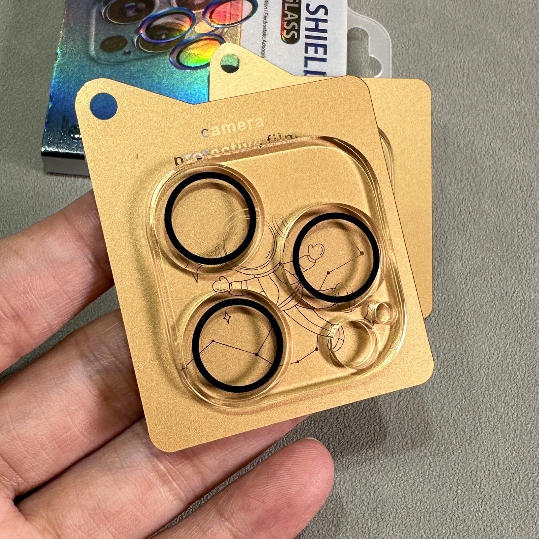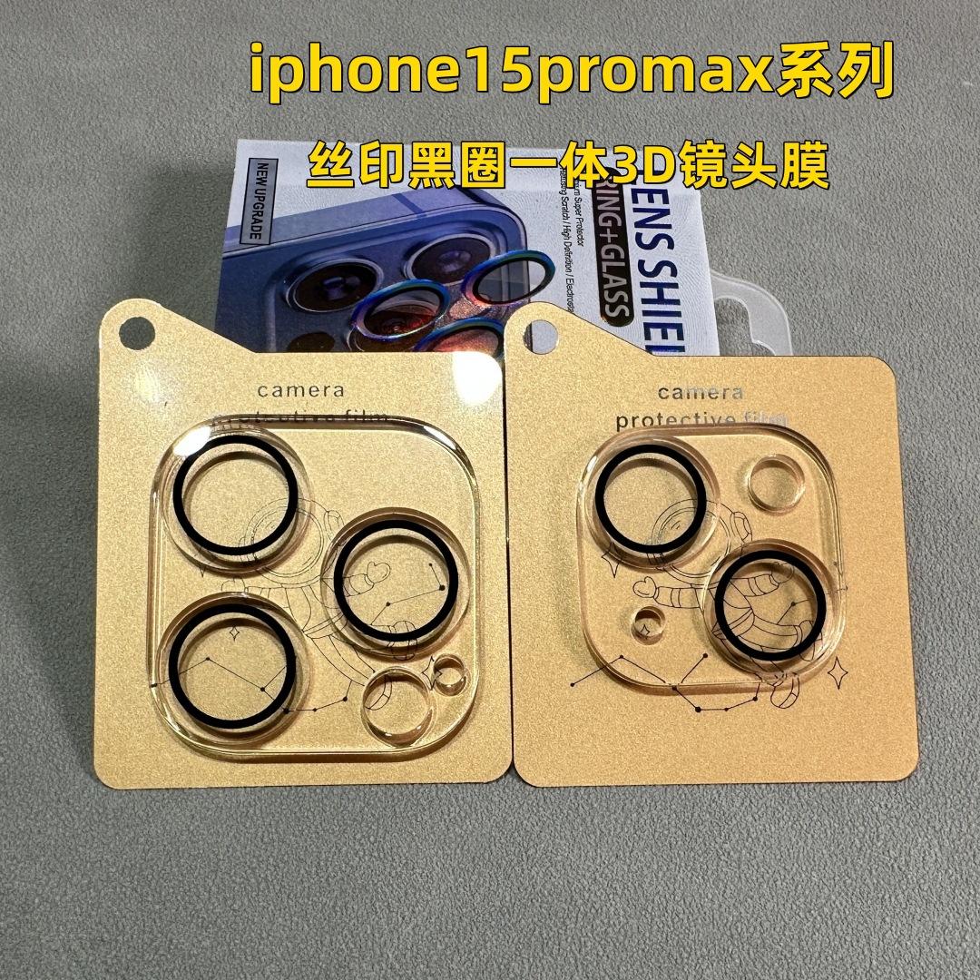 Película protectora de lente circular negra con serigrafía para iPhone 16 Pro Max, película protectora templada para lente de cámara trasera de Apple 15 Plus