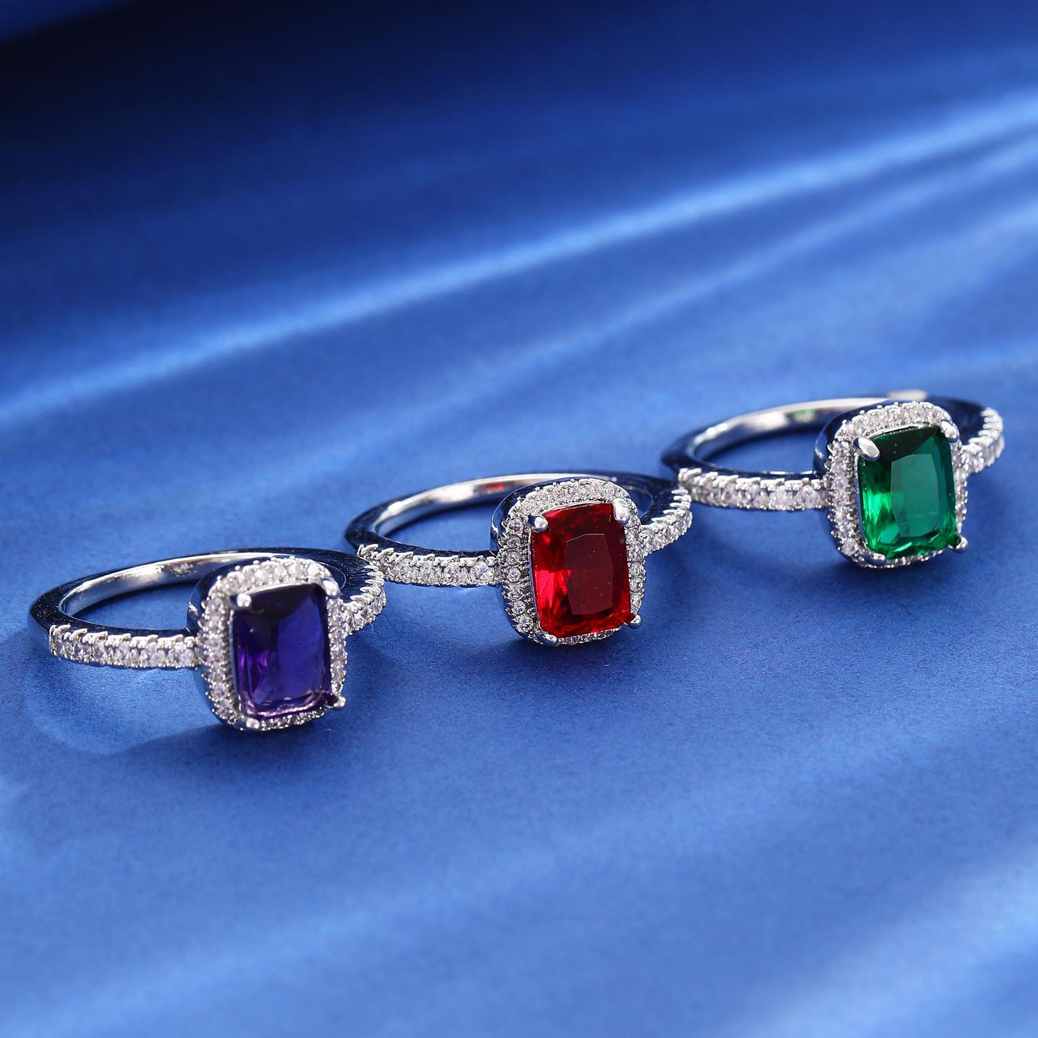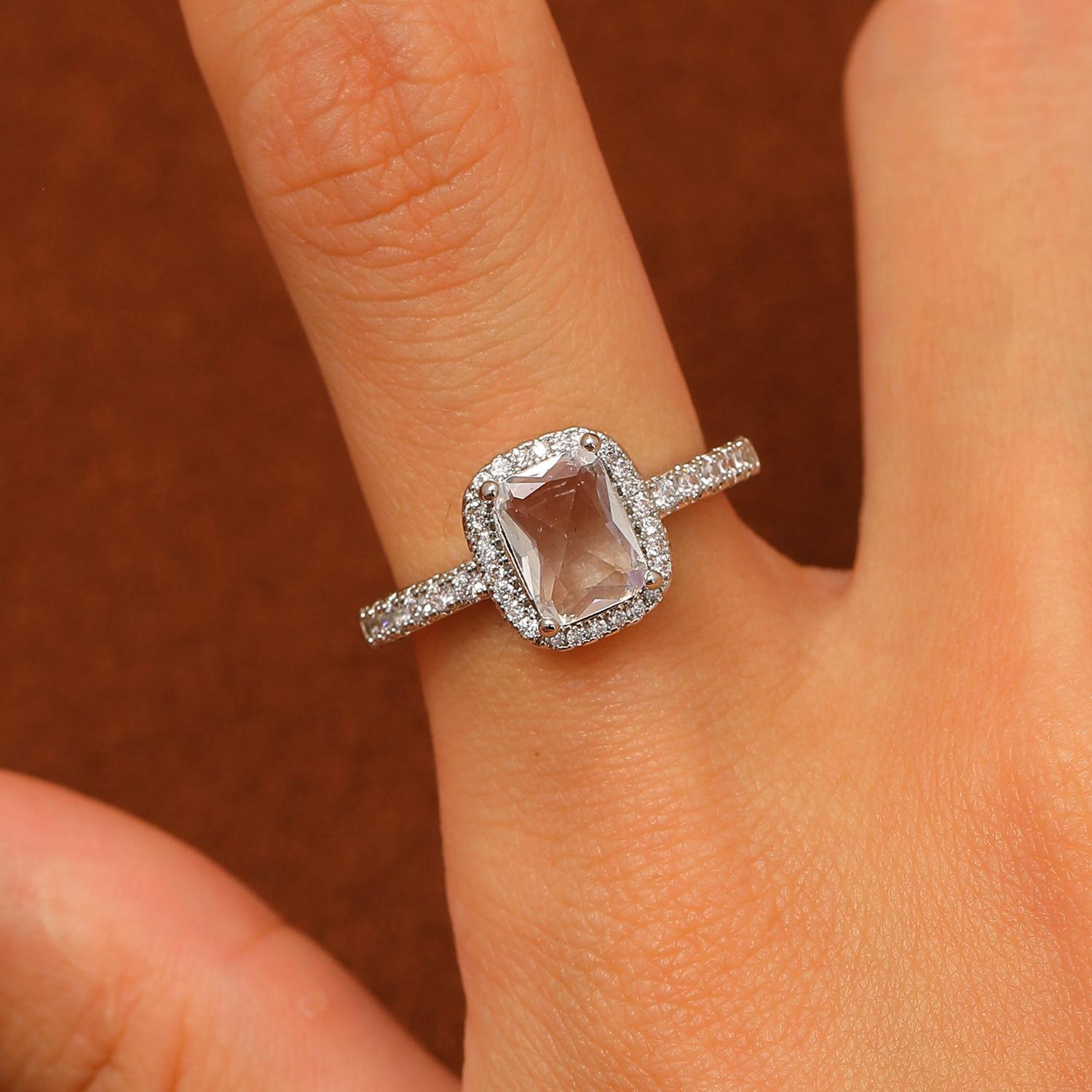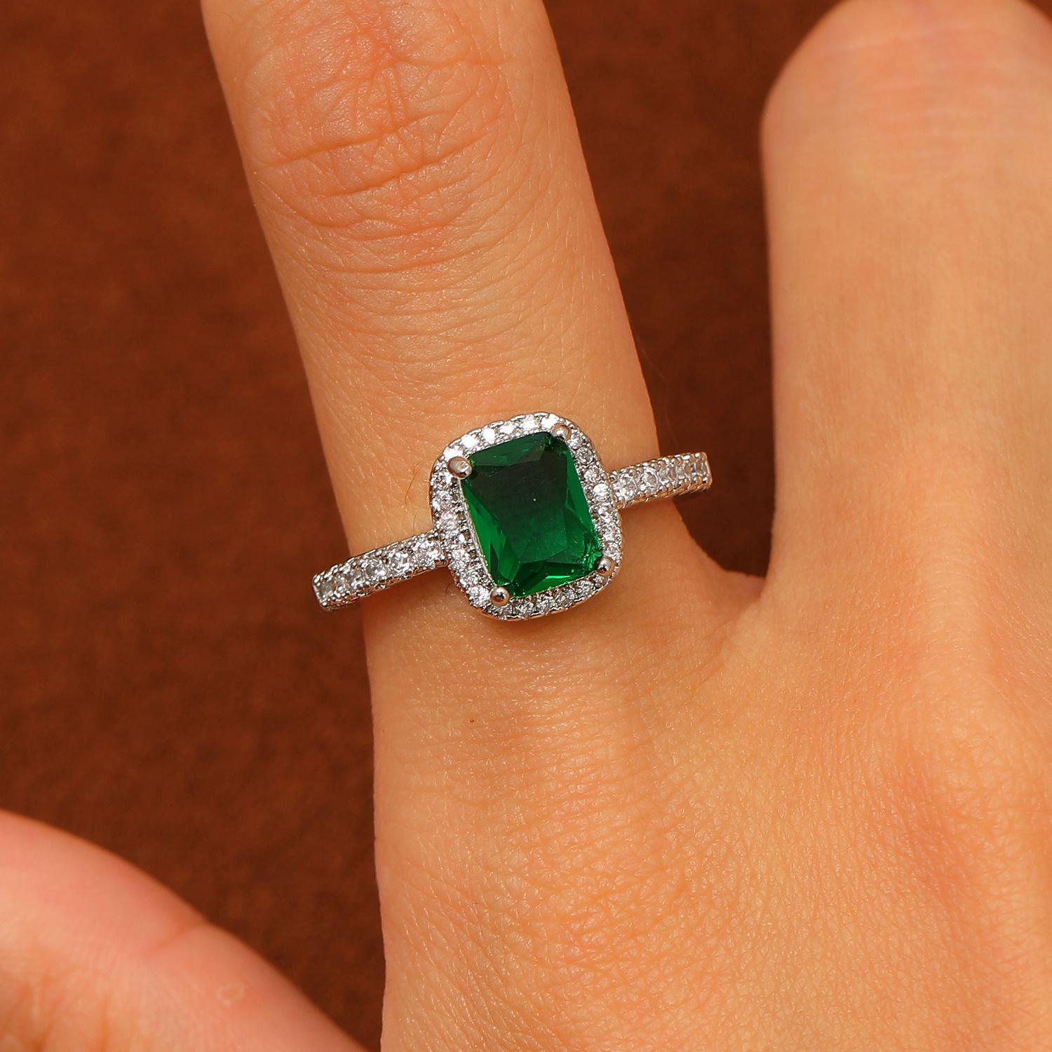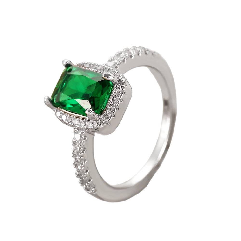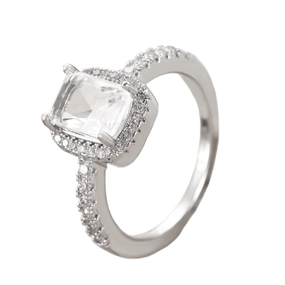 European and american style retro popular square copper inlaid zircon ring for women elegant ladies open emerald ring wholesale