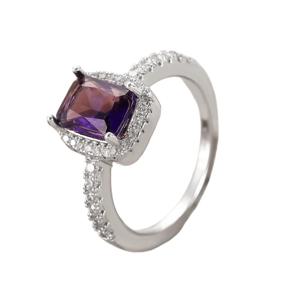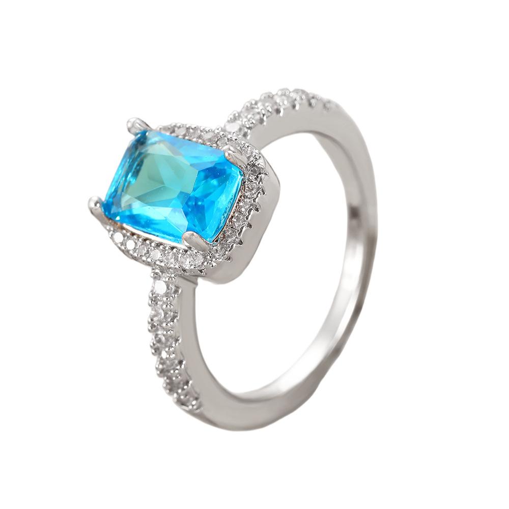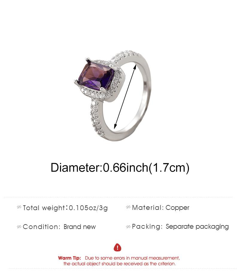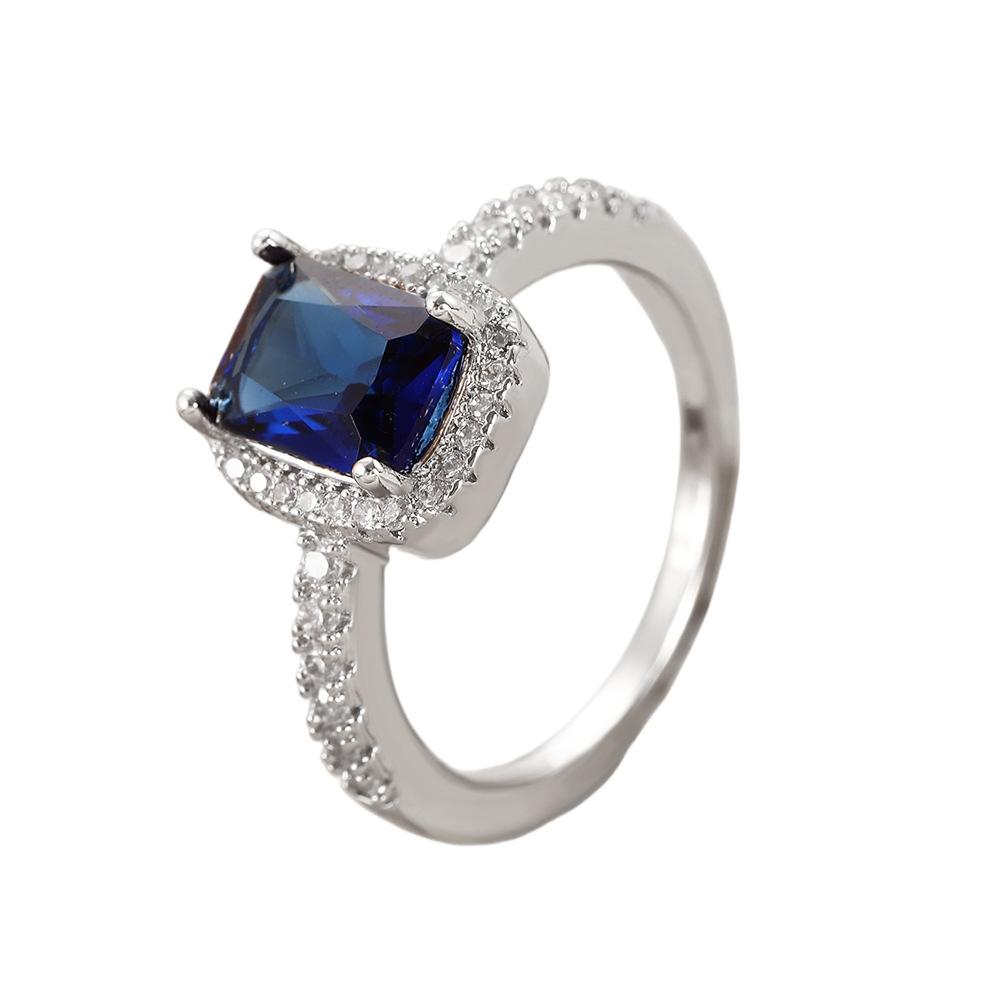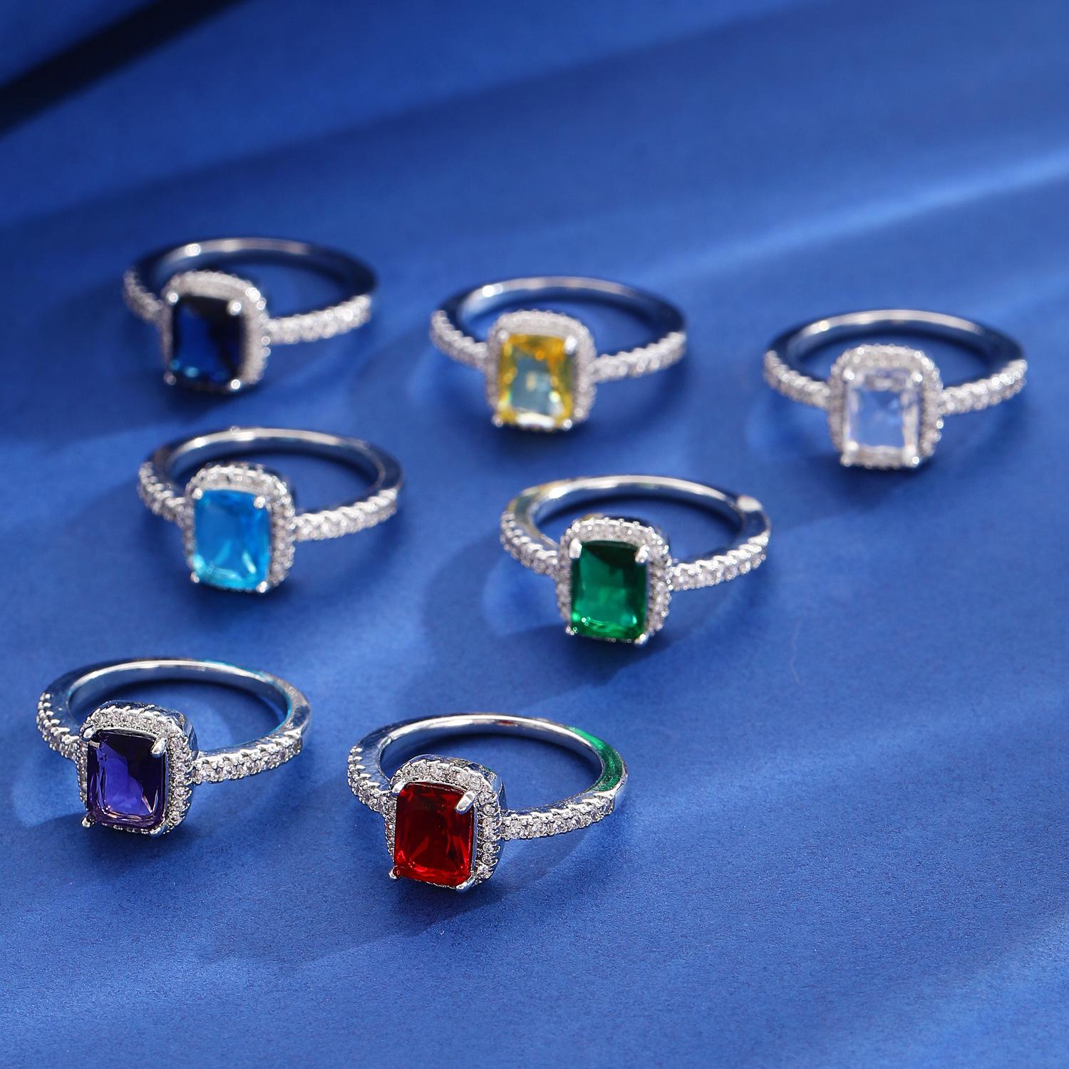 European and american style retro popular square copper inlaid zircon ring for women elegant ladies open emerald ring wholesale