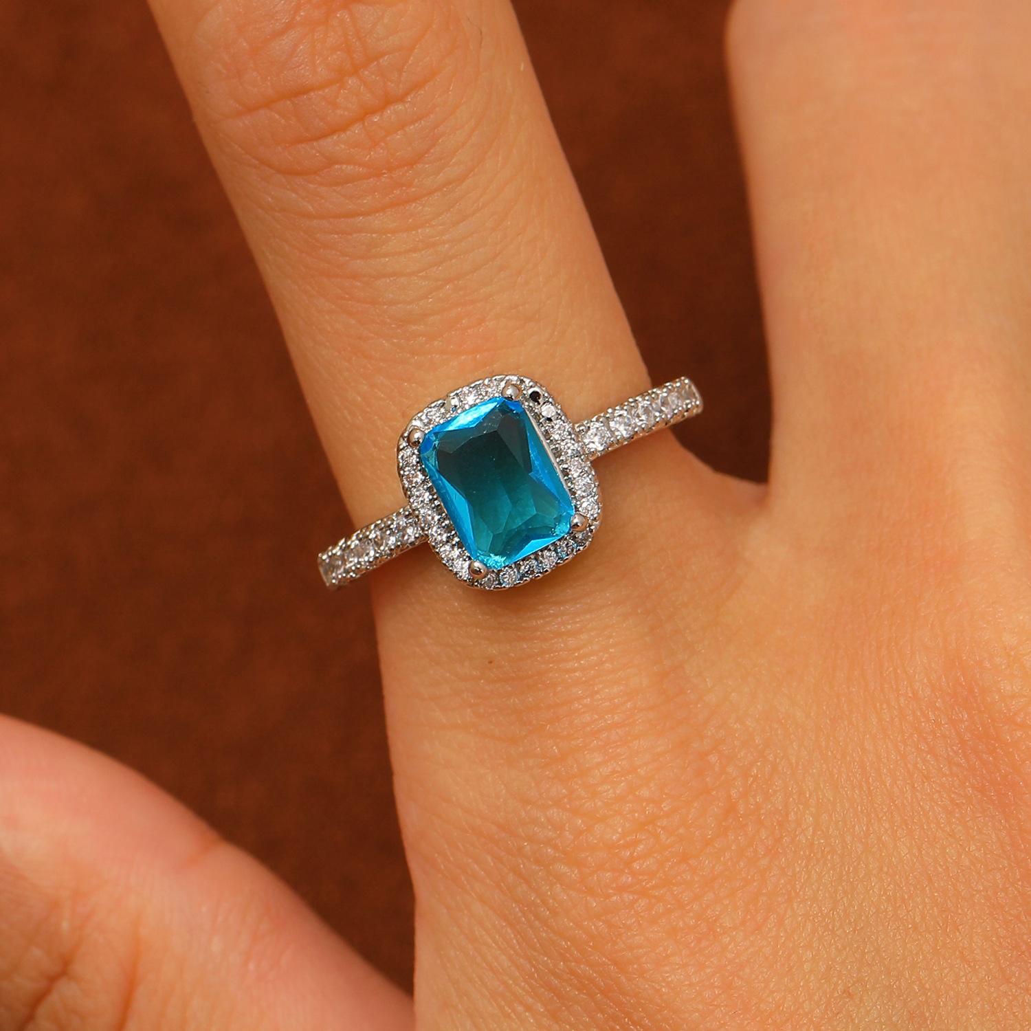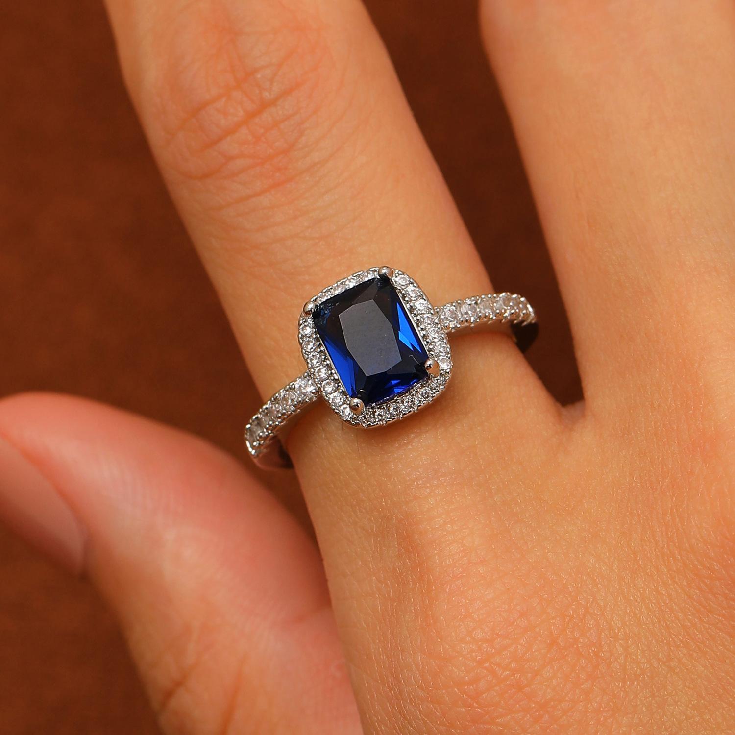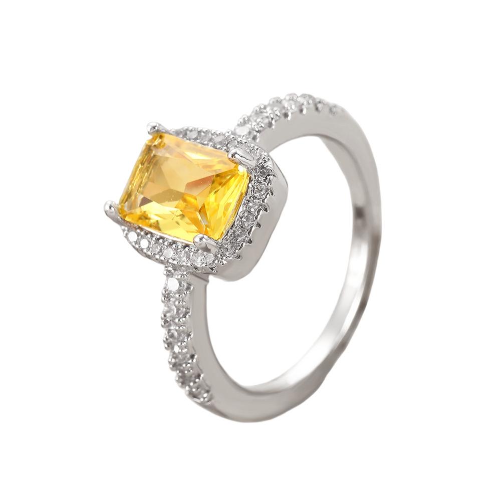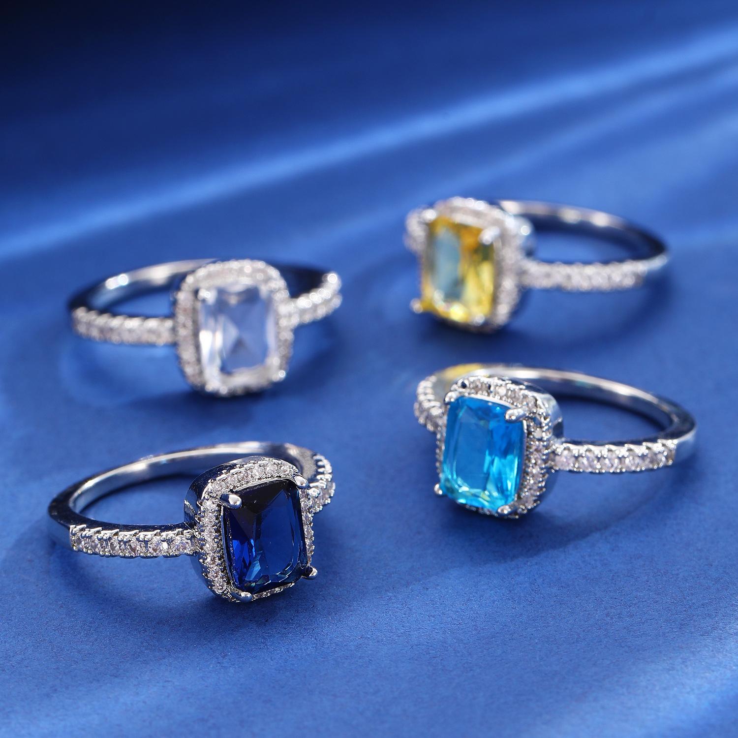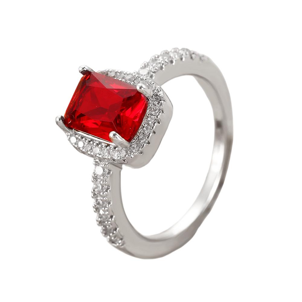 European and american style retro popular square copper inlaid zircon ring for women elegant ladies open emerald ring wholesale