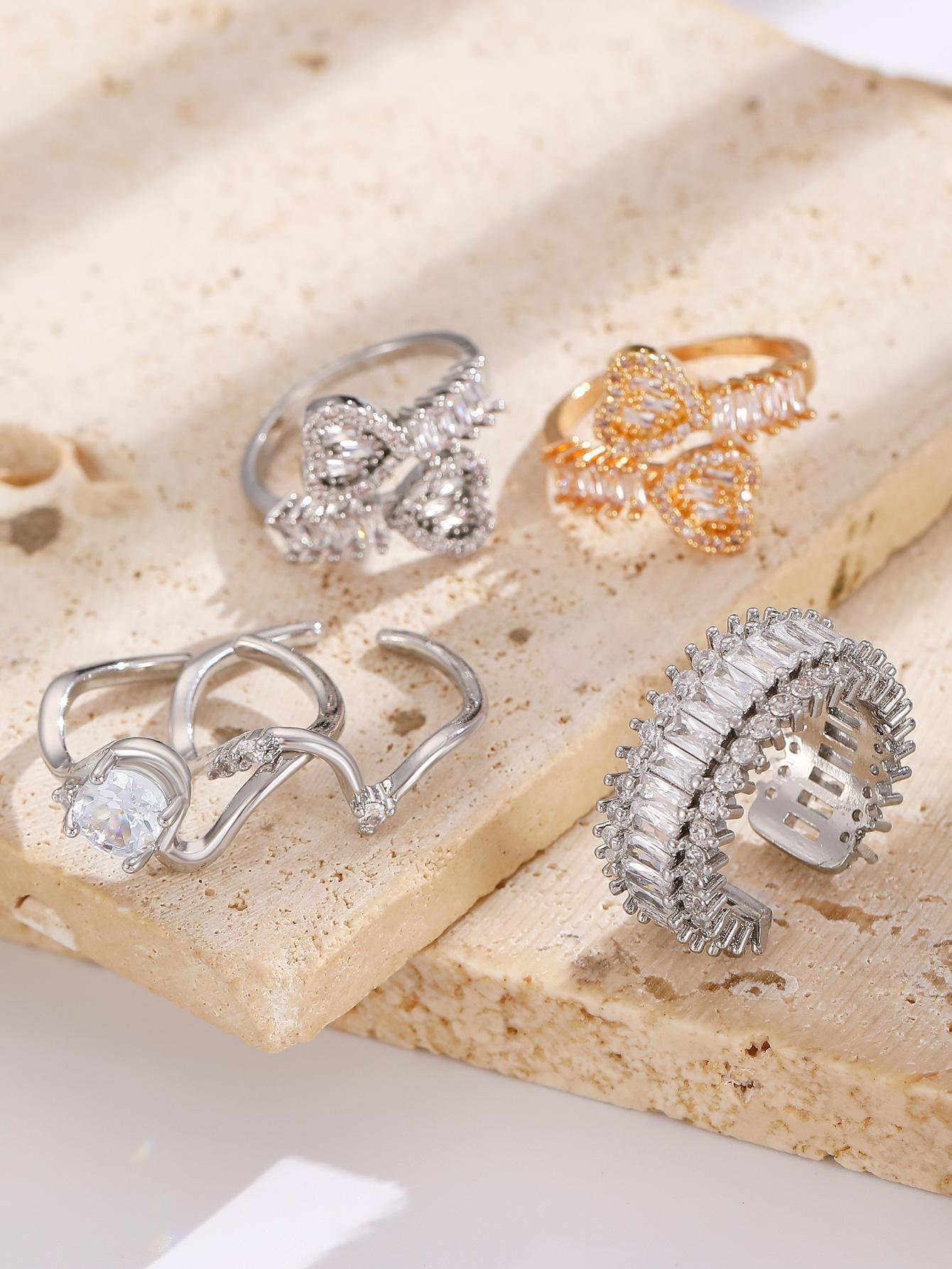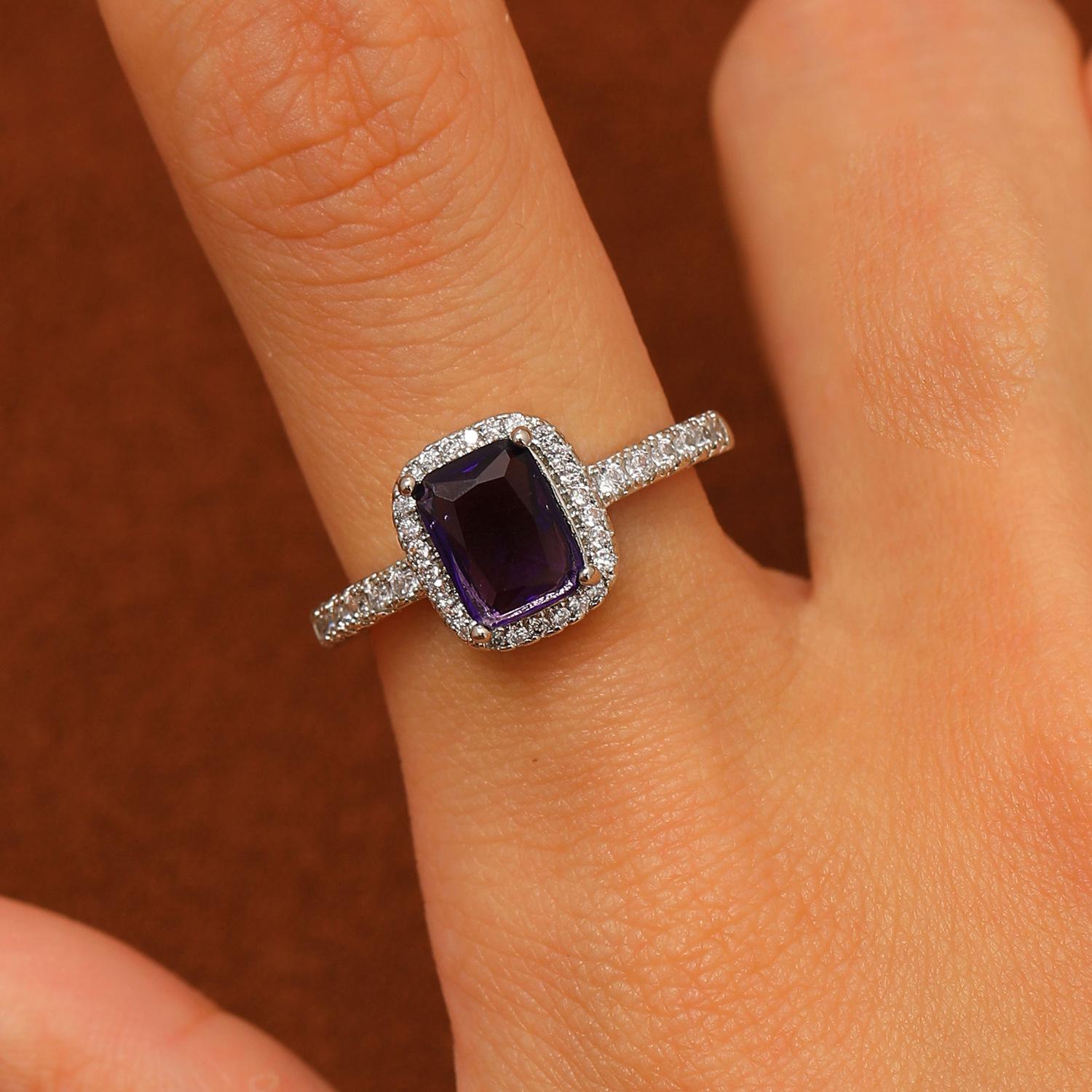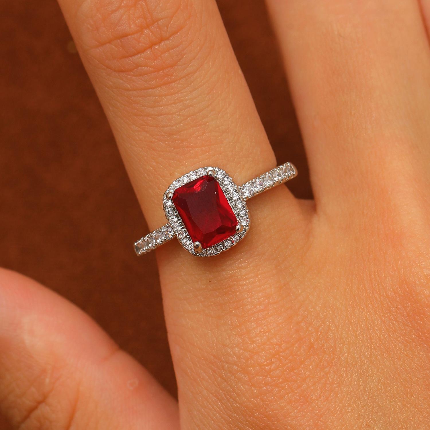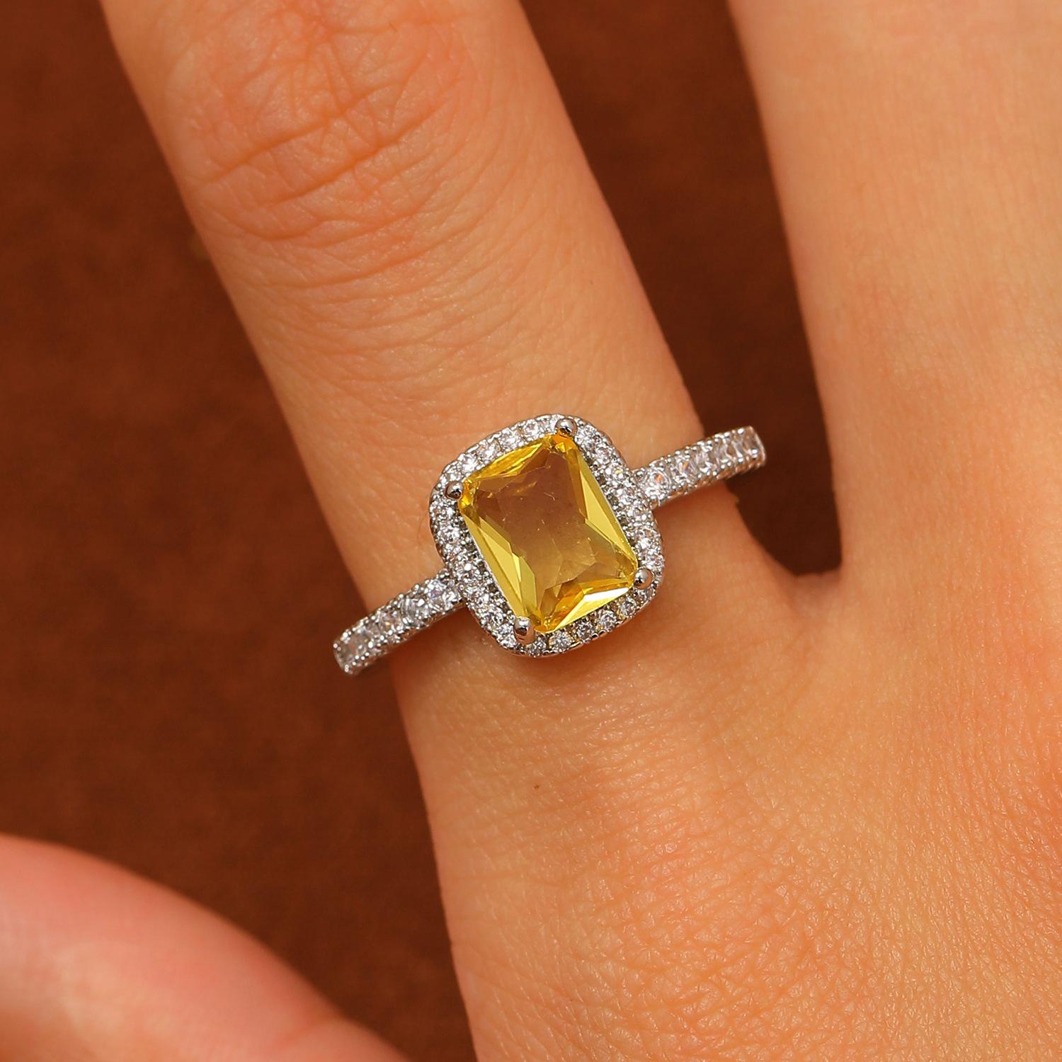 European and american style retro popular square copper inlaid zircon ring for women elegant ladies open emerald ring wholesale