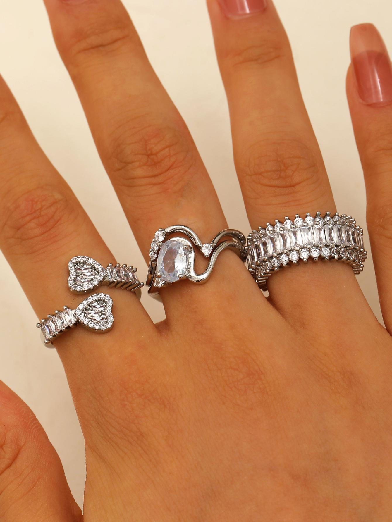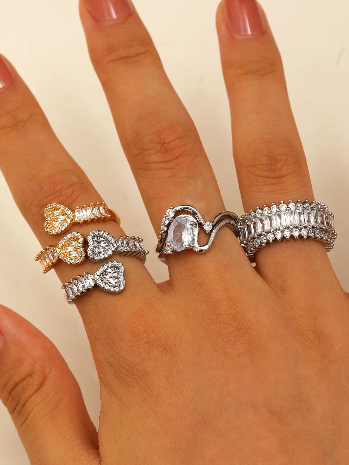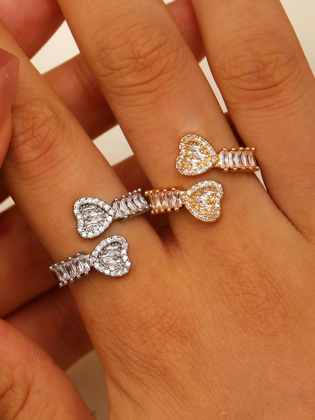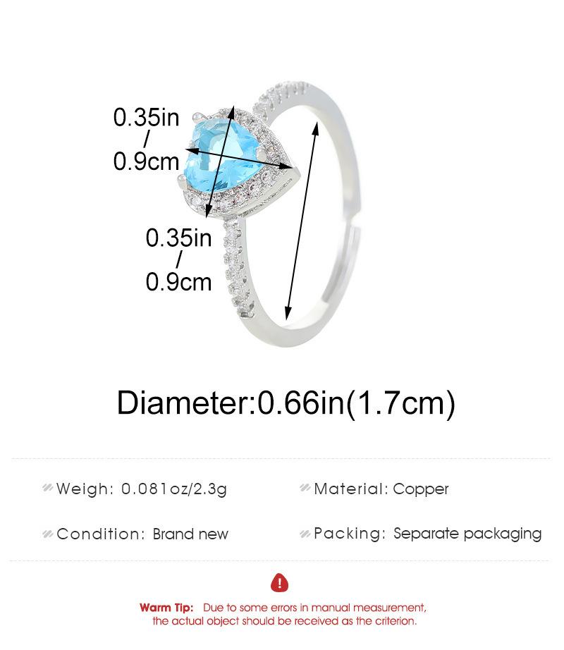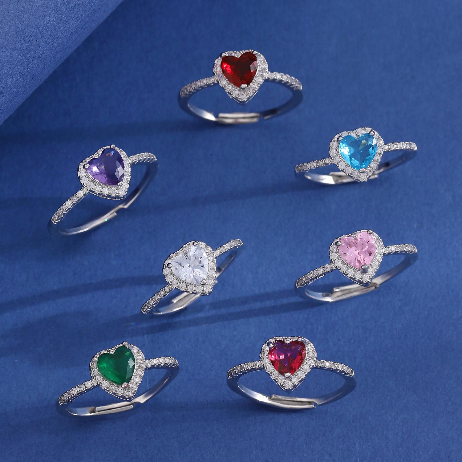 Anillo de diamantes de circón de color amoroso transfronterizo para mujer, sentido de alta gama, apertura ajustable, forma de corazón, para dama, anillo de diamantes completo, venta al por mayor