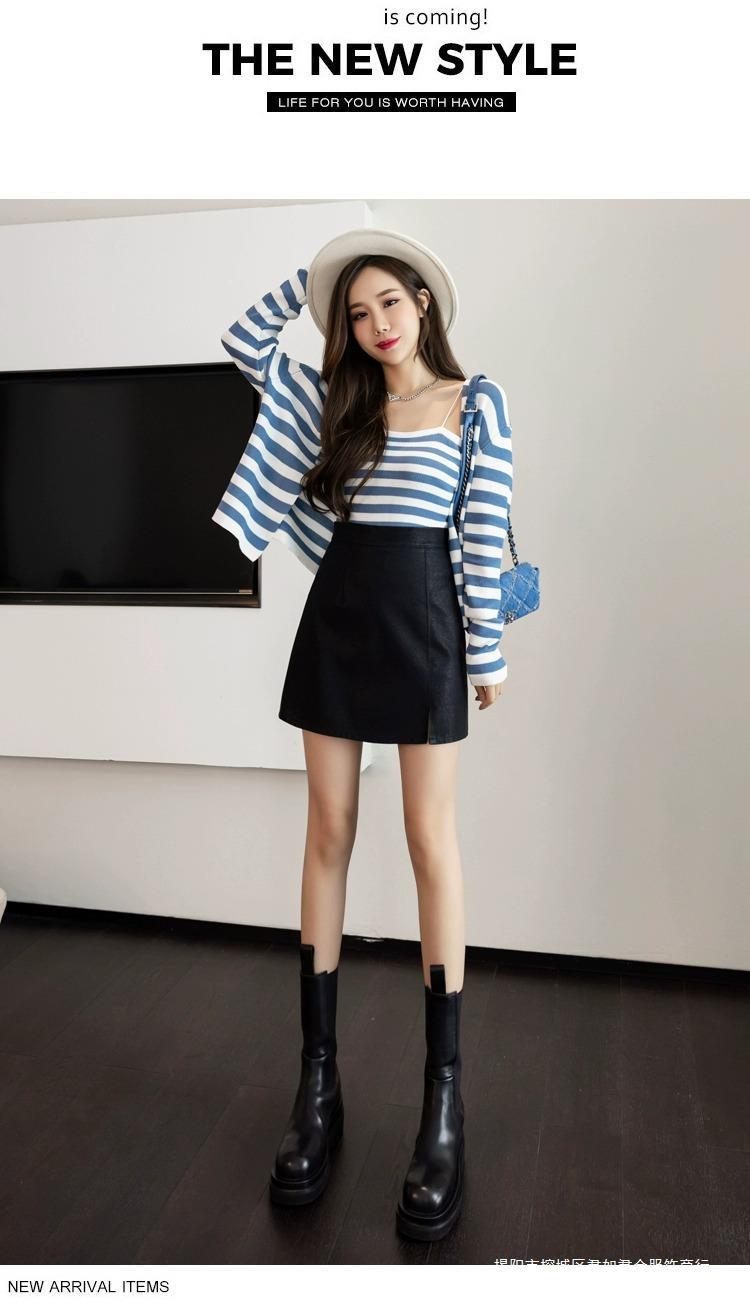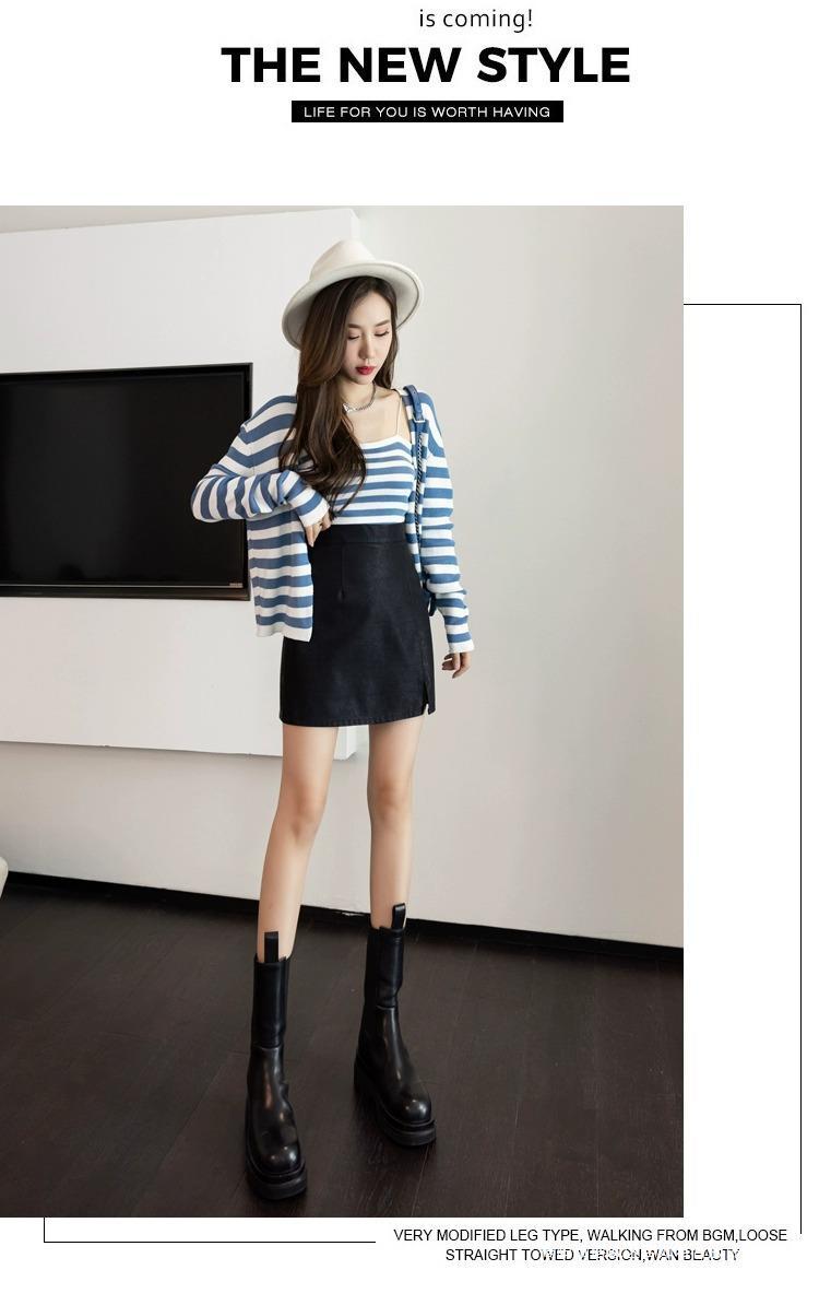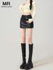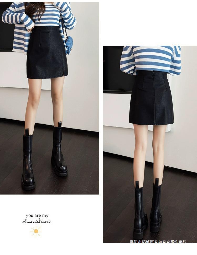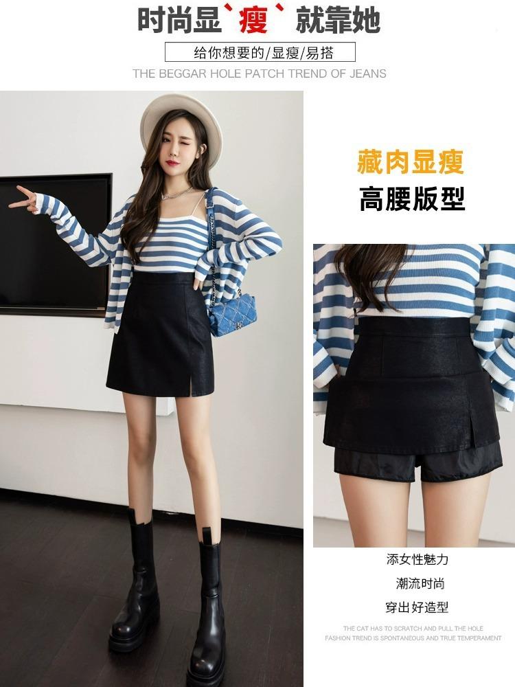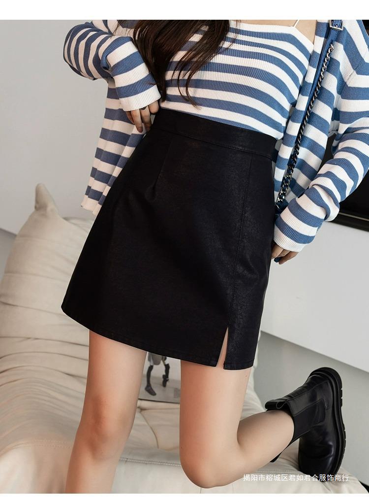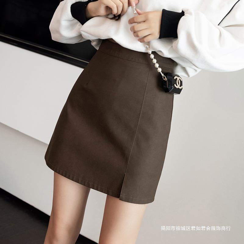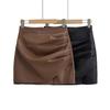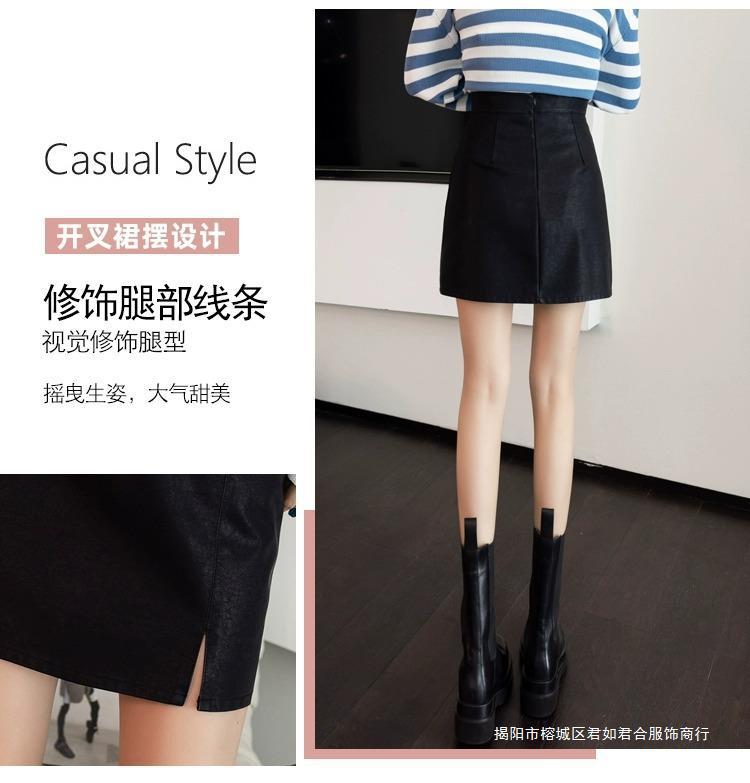 Falda Irregular con Abertura de Cuero PU Falda para Mujer Otoño e Invierno 2023 Nueva Cintura Alta Adelgazante Línea A Falda de Cadera