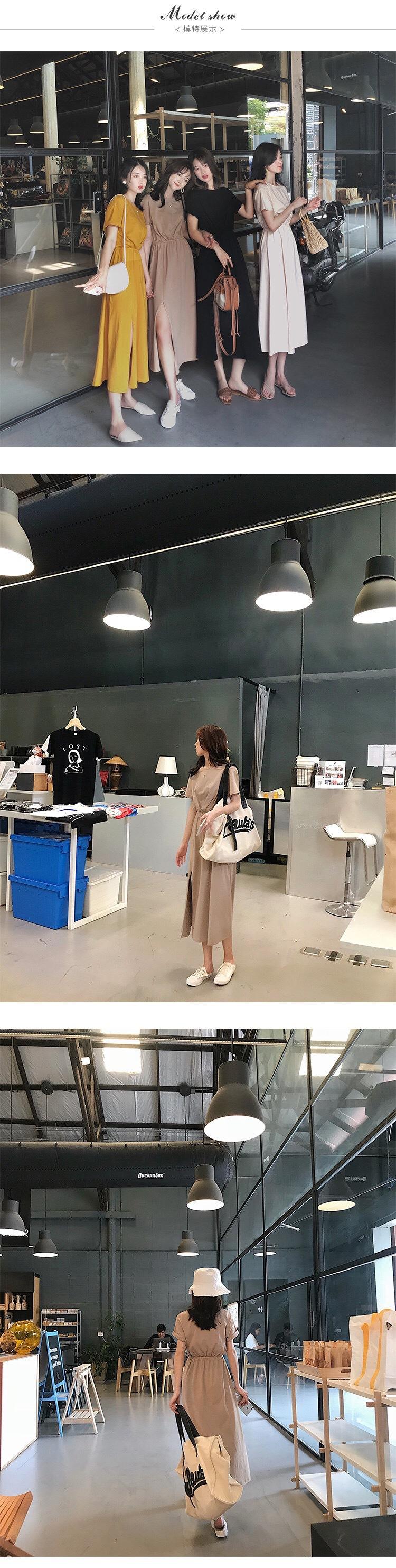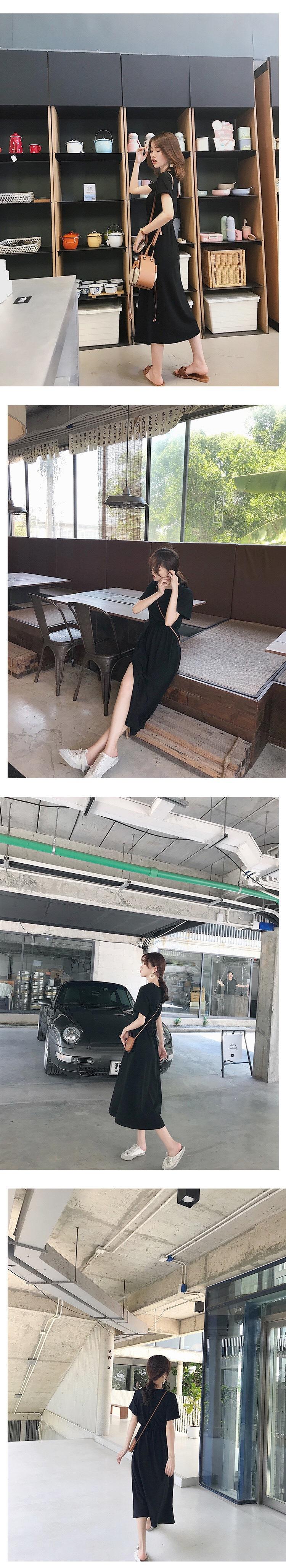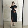 Vestido nuevo 2023 para mujer, cintura francesa, temperamento adelgazante, manga corta con abertura larga, falda larga sobre la rodilla