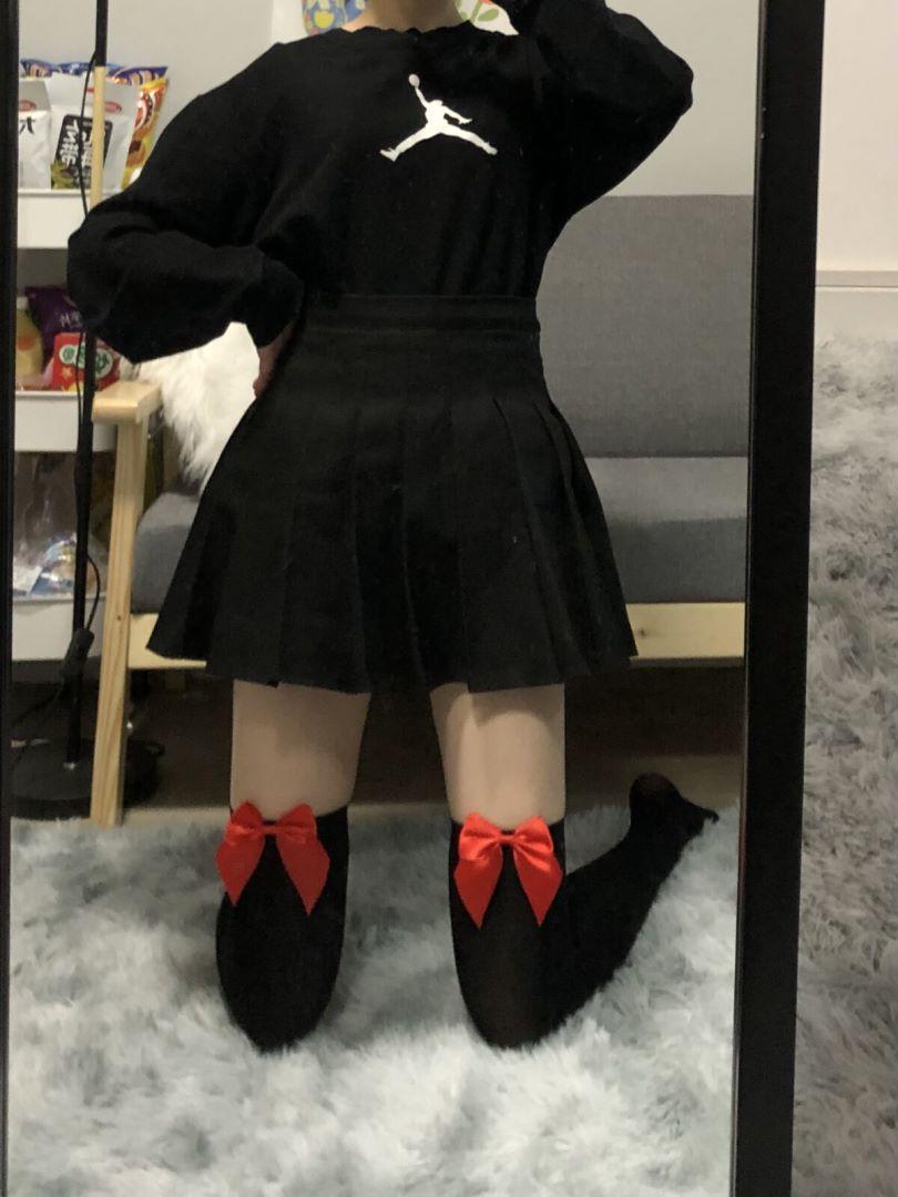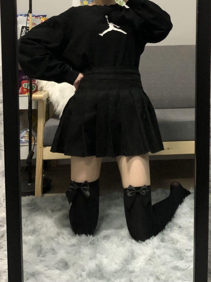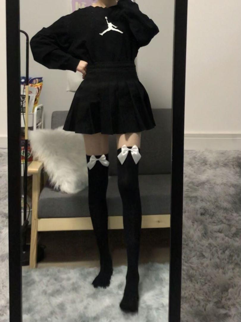 Calcetines Altos hasta la Rodilla con Lazo Estilo Japonés Jk Terciopelo Tubo Alto Calcetines Largos Blanco y Negro Grosor Medio Estilo Escolar Estilo Femenino