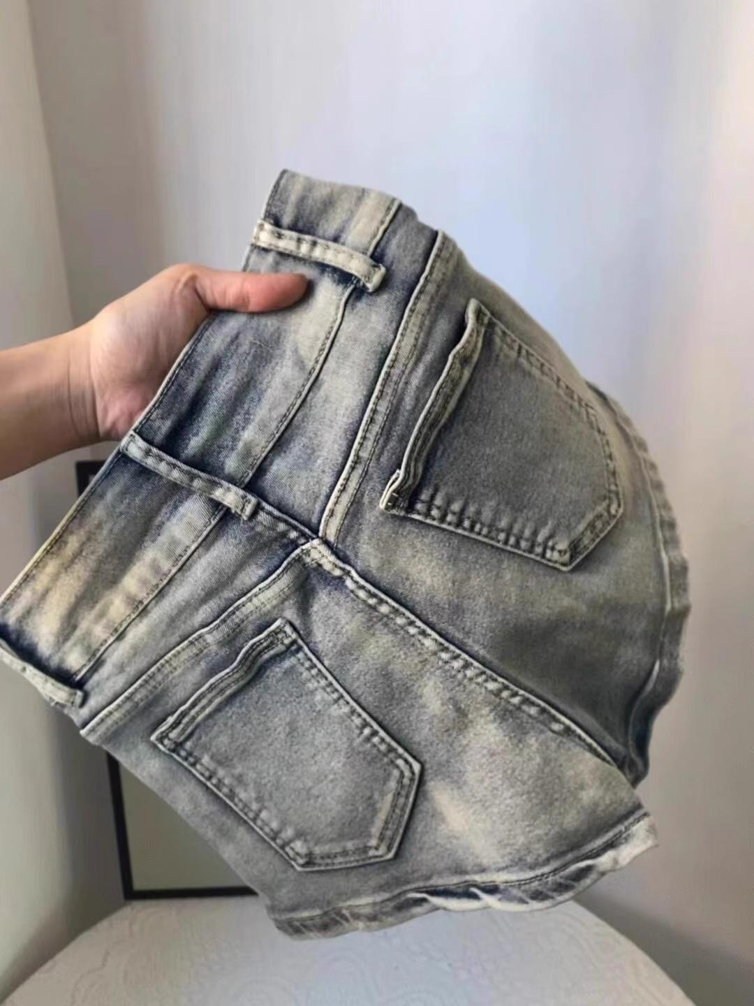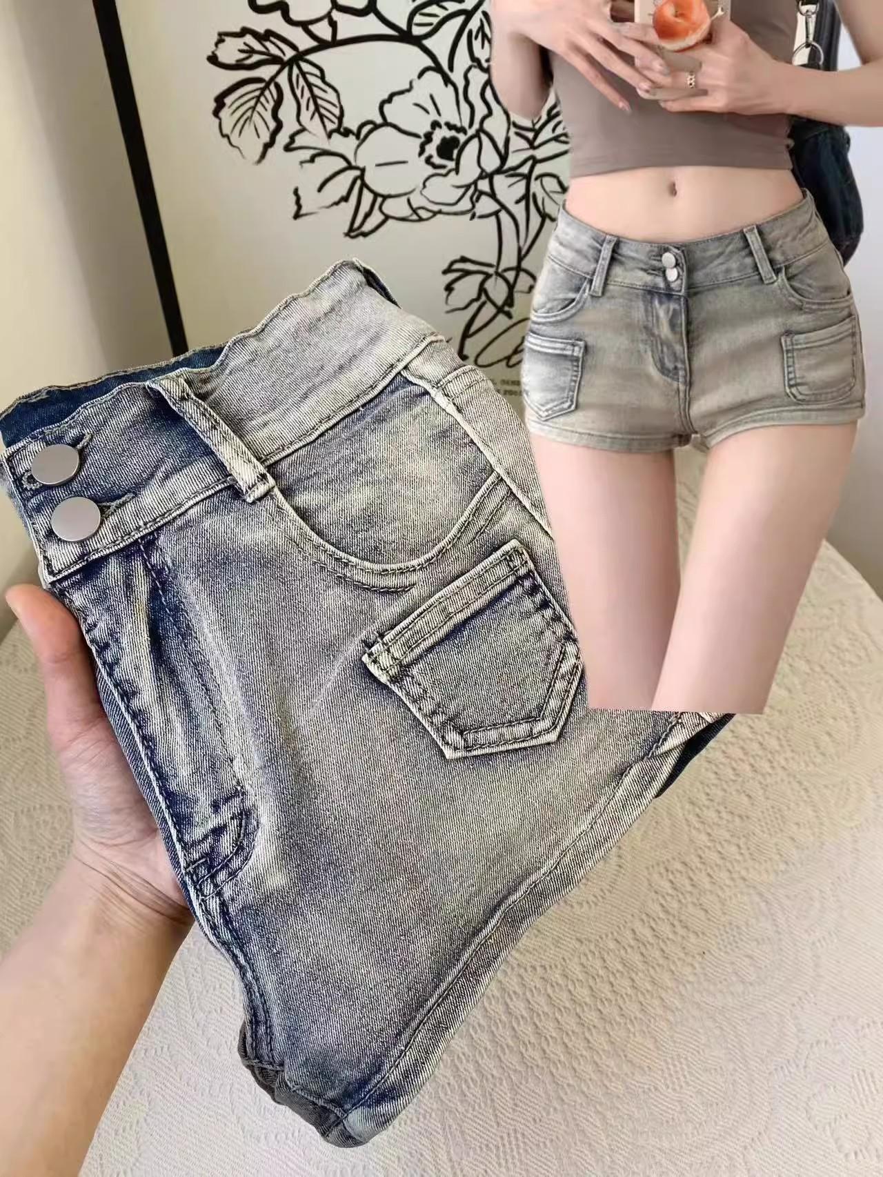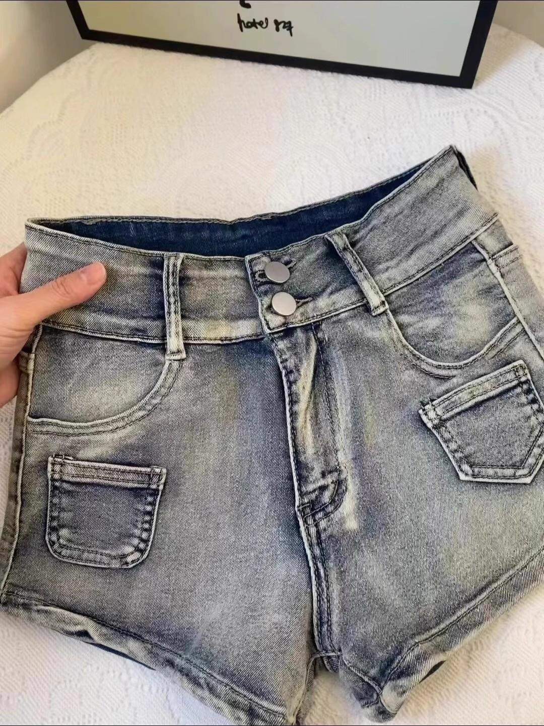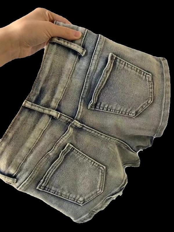 Pantalones vaqueros de cintura alta estilo americano retro para mujer, pantalones cortos ajustados elásticos de Spice Girls de verano, pantalones cortos adelgazantes que combinan con todo.