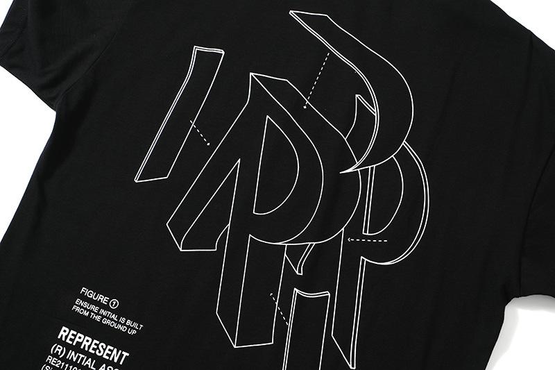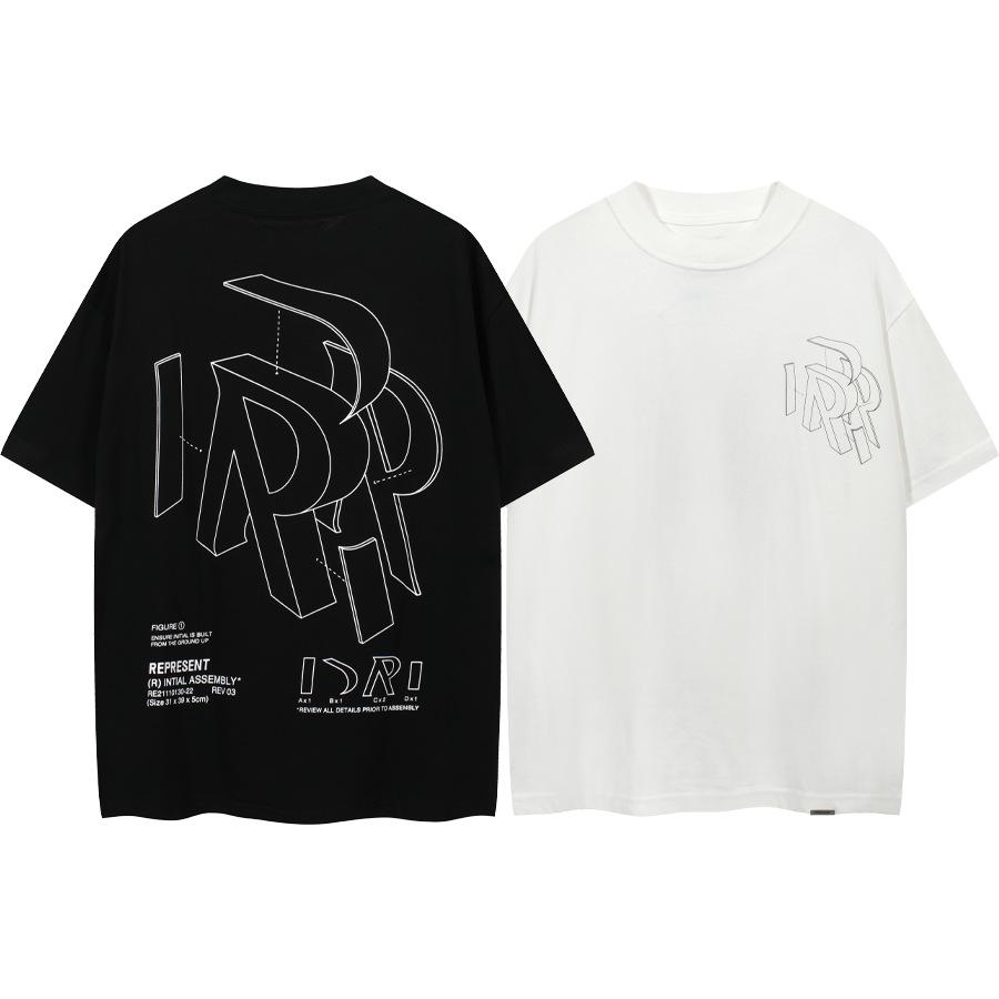 Marca de moda transfronteriza Represent camiseta casual holgada de manga corta para hombre con estampado de eslogan con logo de letra hueca deconstruido