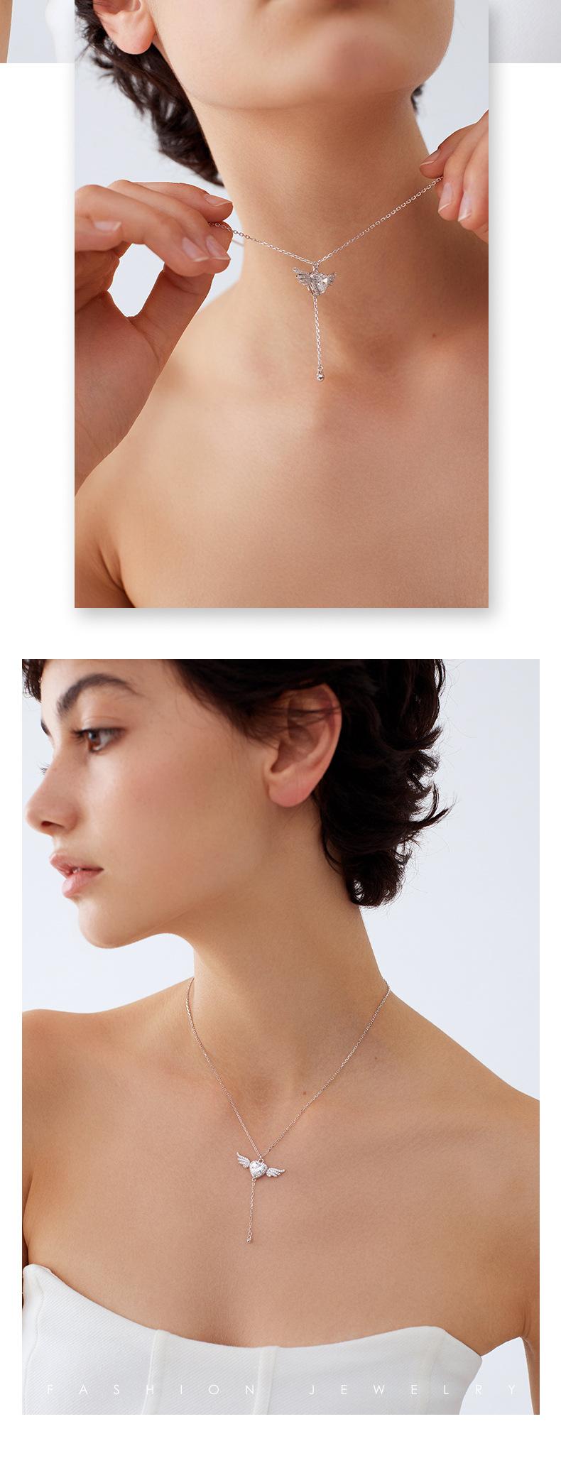 Collar de plata de ley 925 con forma de corazón de Cupido para mujer, ligero, de lujo, con alas de ángel, cadena para clavícula, regalo navideño.