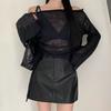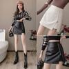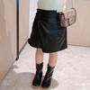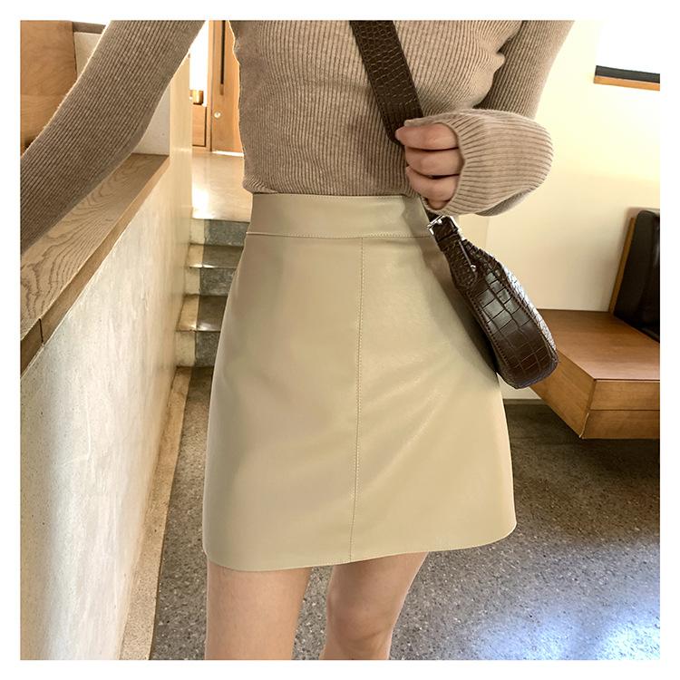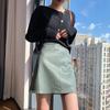 Falda de cuero para mujer, primavera y otoño 2022, nueva, cintura alta, adelgazante, estilo coreano, elegante, falda corta de cuero PU, falda acampanada a la cadera