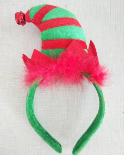 ![]() Diadema navideña con campanas transfronterizas, rayas rojas y verdes, diadema de elfo navideño, decoración navideña, festival, carnaval, cabello con plumas