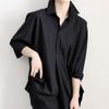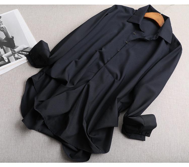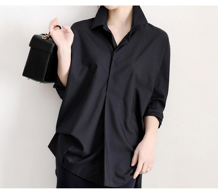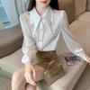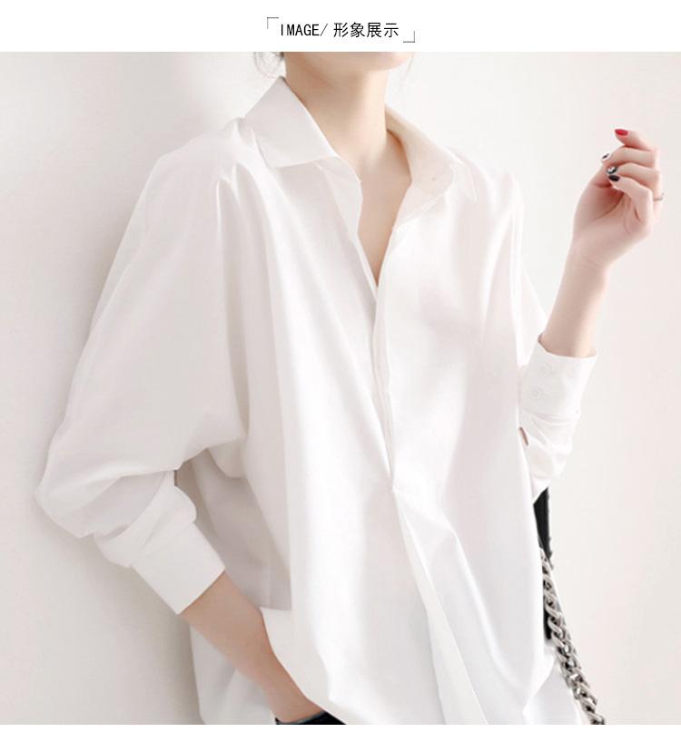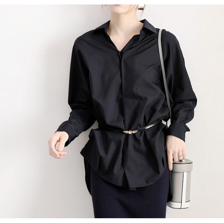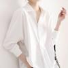 Camisa de Stock Listo para Mujer Primavera y Verano Nueva Manga Larga Color Puro Drapeada Suelta Personalizada Camisa Blanca Solapa Ropa de Trabajo para el Lugar de Trabajo