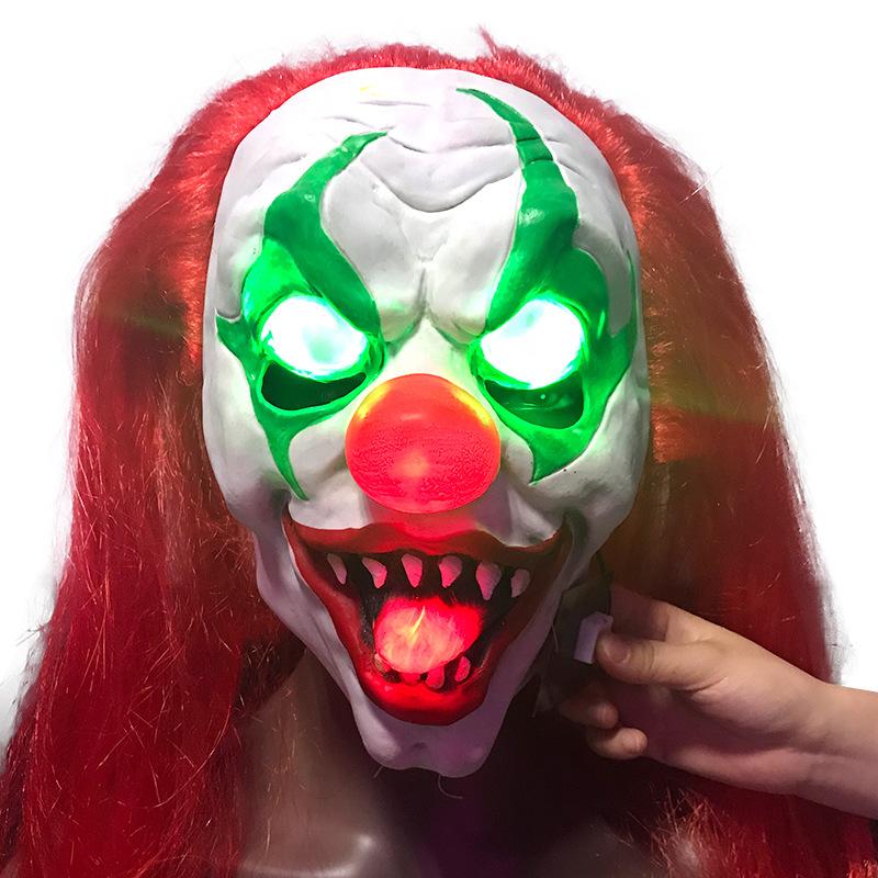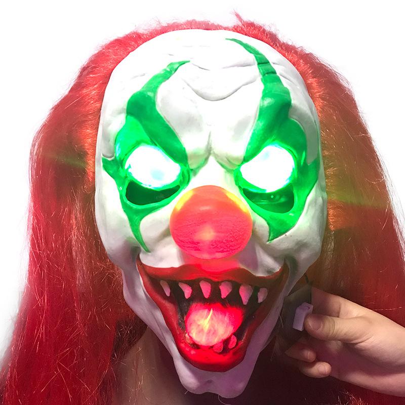 Nombre del producto: Máscara de payaso LEDMaterial: Plástico PVC + cabelloTamaño: 20cm*37cm*0.8cmPeso: 120g