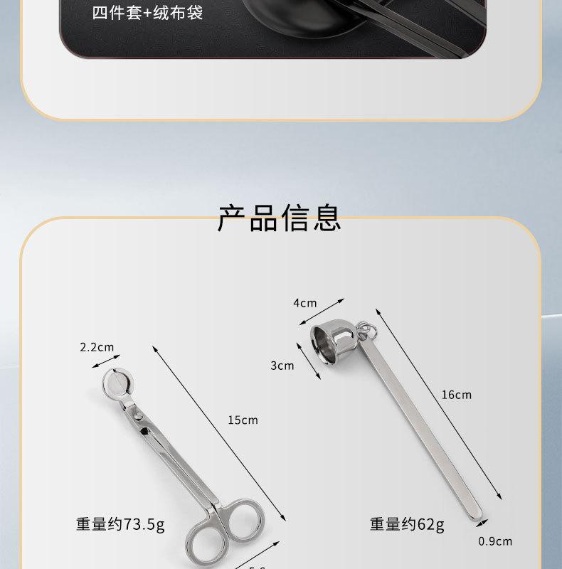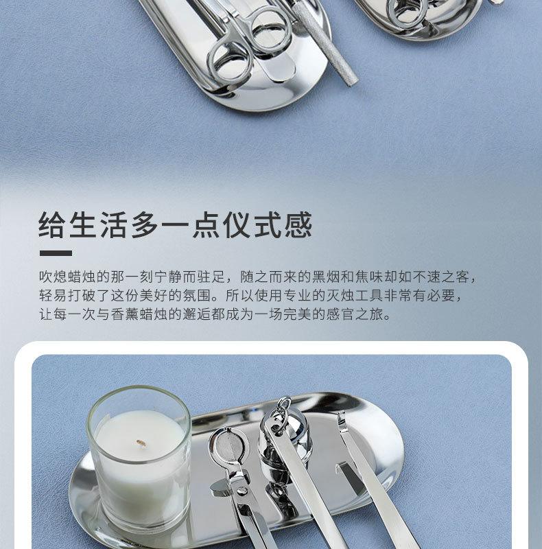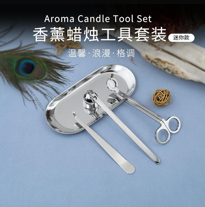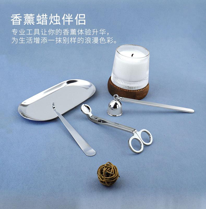 Miniherramienta portátil para aromaterapia Ins, juego de cuatro piezas, extintor de velas, tapa para velas, corte del núcleo de la vela, bandeja con gancho para extintor de velas