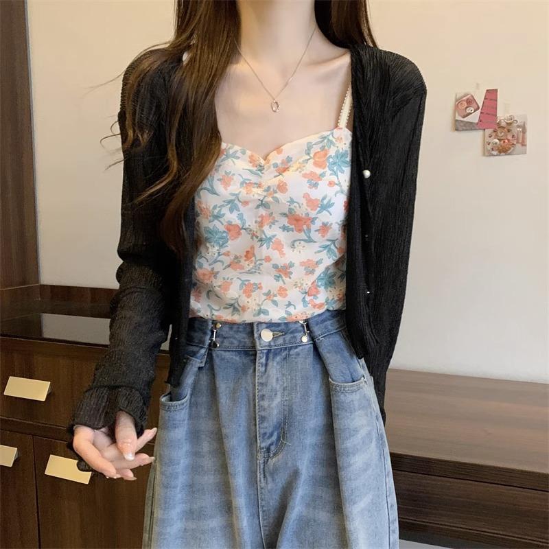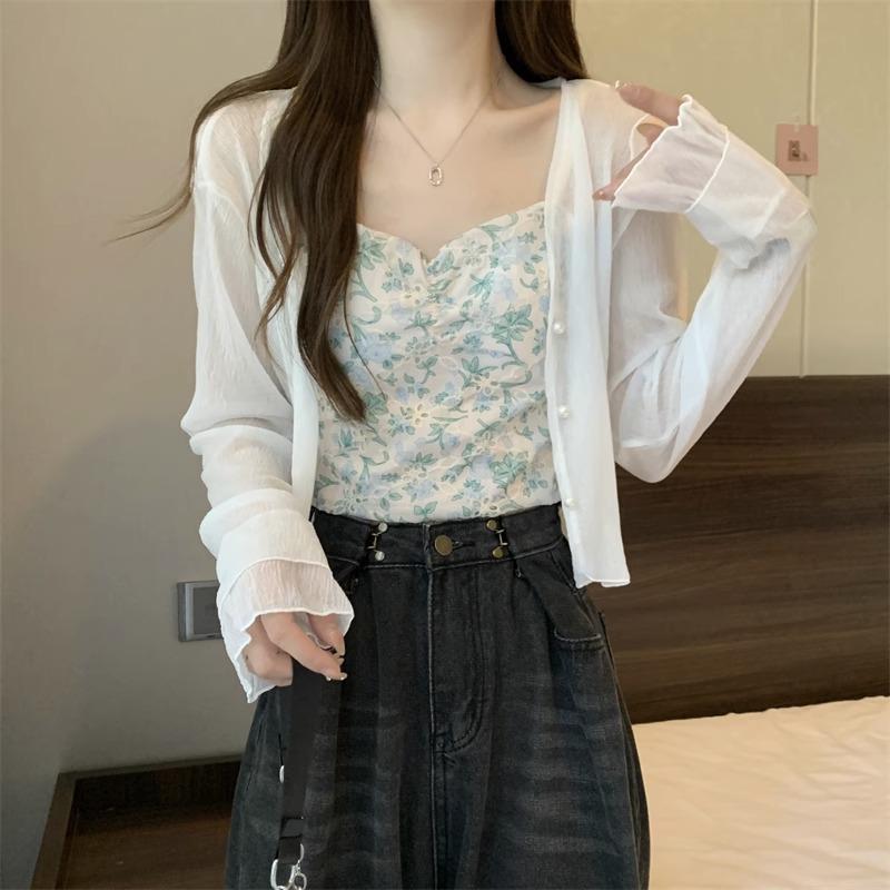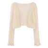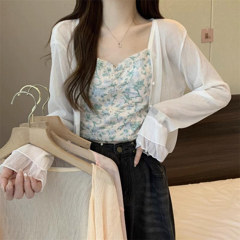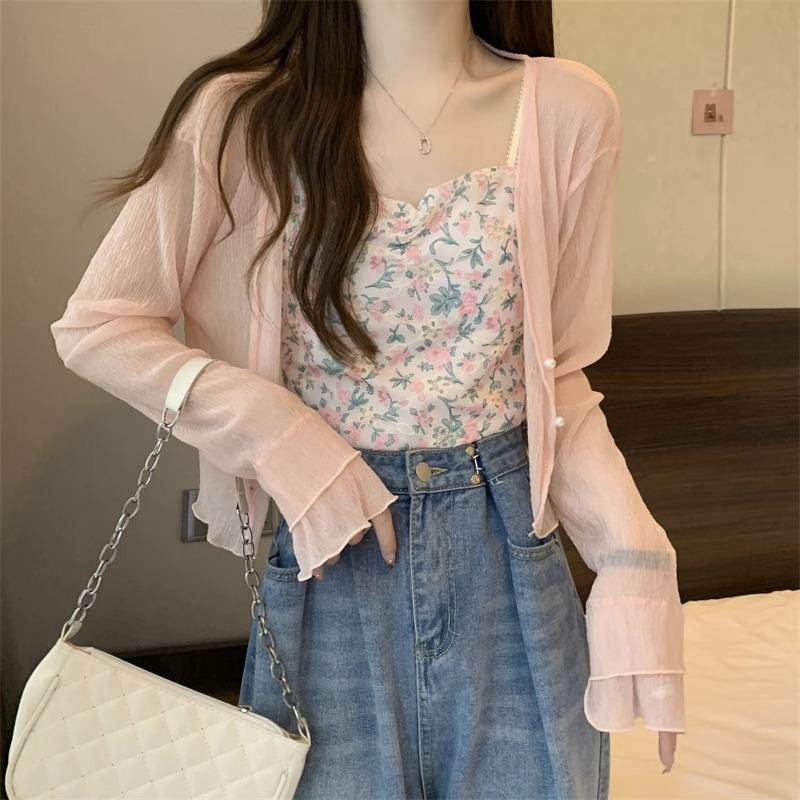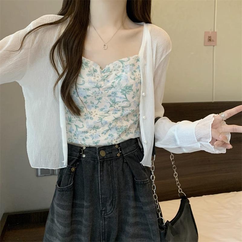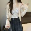 Cárdigan de seda de hielo con protector solar para mujer, abrigo tipo chal fino de verano con falda de tirantes, blusa exterior, blusa corta