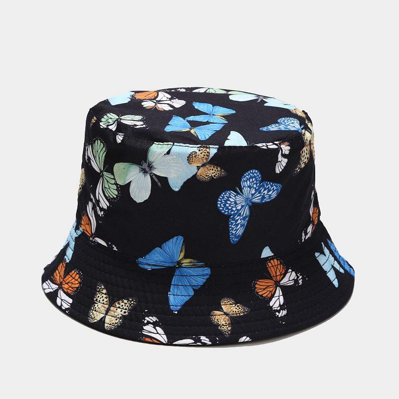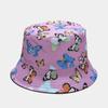 Sombrero de pescador con estampado de mariposas de colores, estilo europeo y americano, para mujer, de algodón puro, de doble cara, para exteriores, combina con todo.