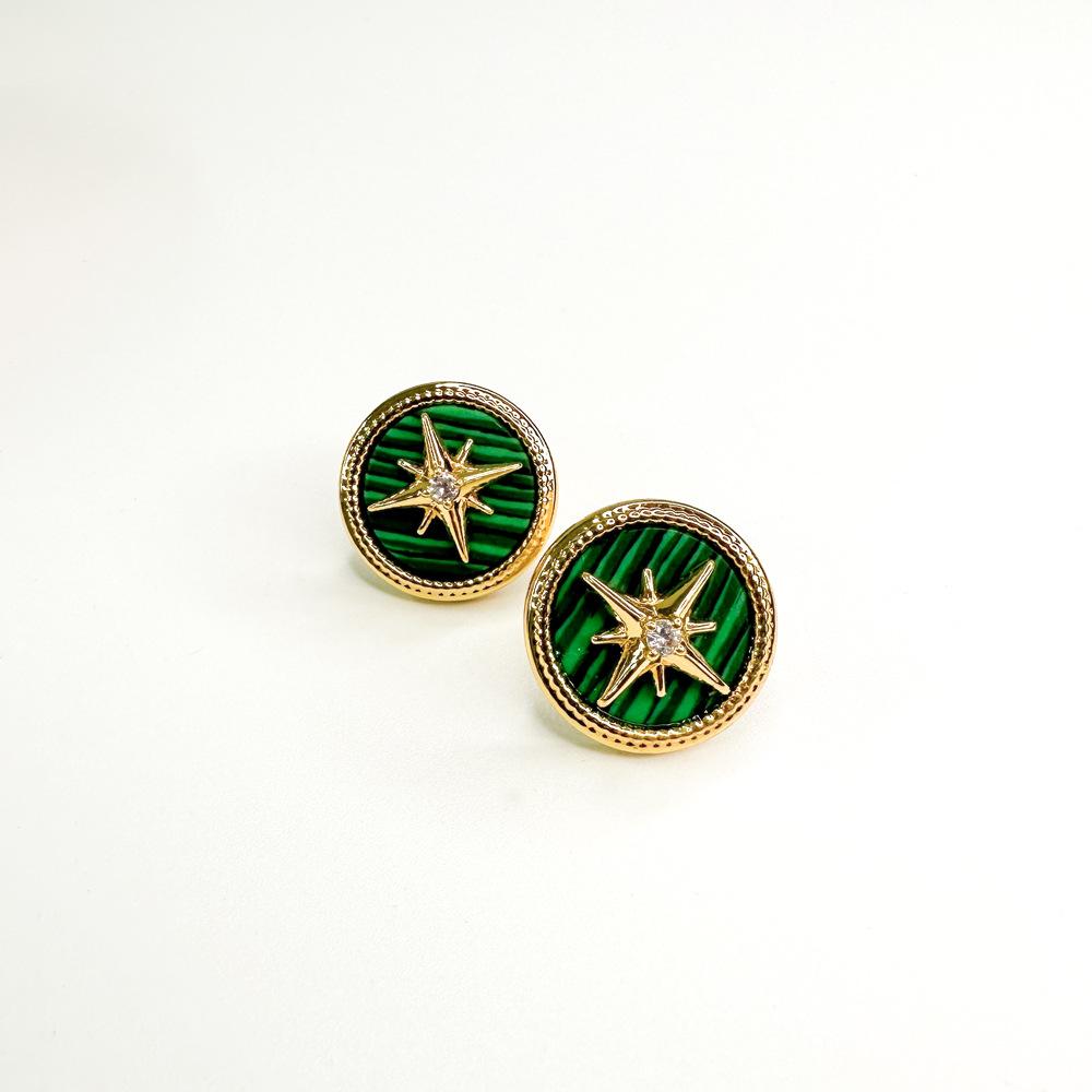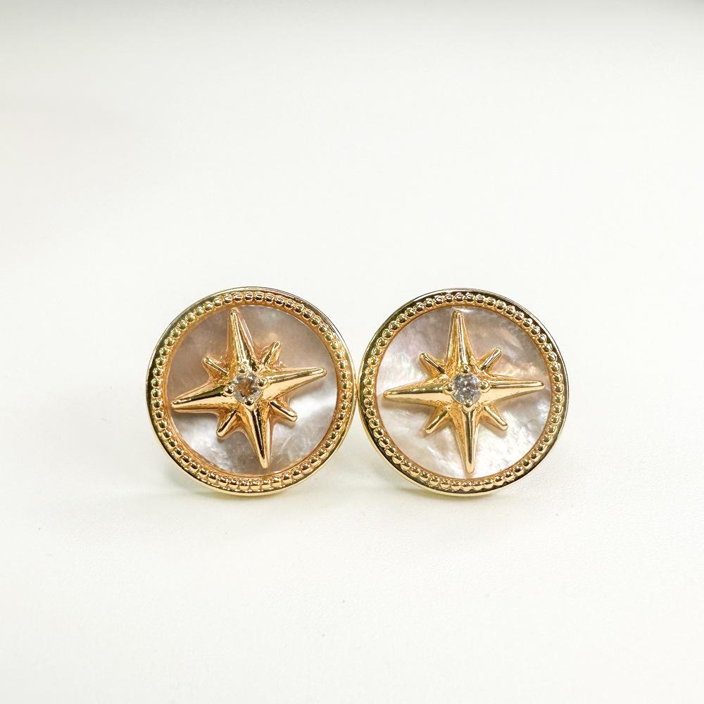 Material: Latón galvanizado, oro de 18 quilates, circonita, aguja de plata 925.
