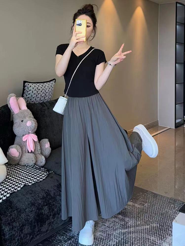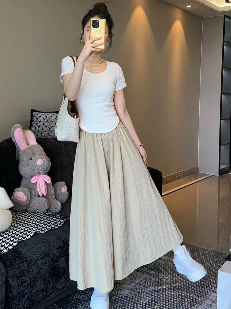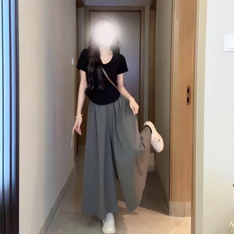 Culotte de cinco colores, ocho puntos rectos, verano, pierna ancha, cintura alta, casual, nuevo, suelto, talla grande, adelgazante, pantalones anchos