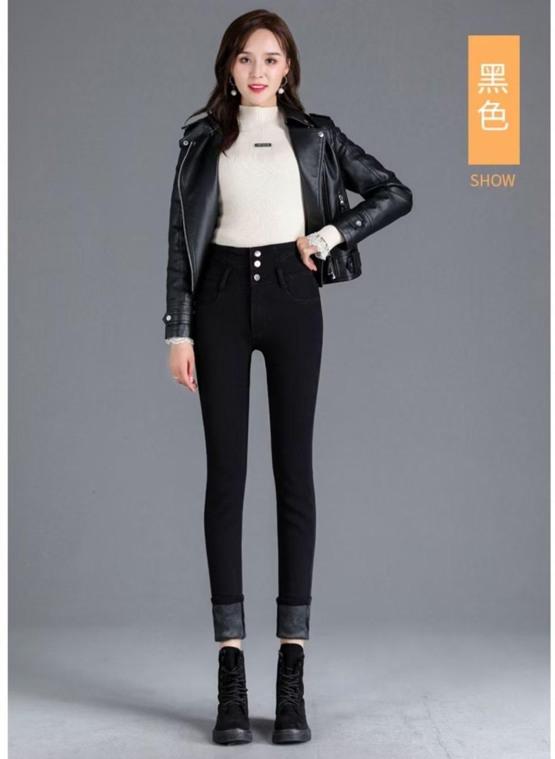 Vaqueros gruesos con forro polar para mujer, novedad de otoño e invierno de 2024, pantalones largos ajustados adelgazantes de cintura alta