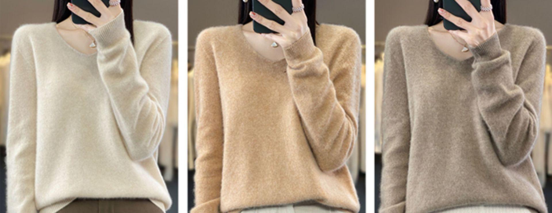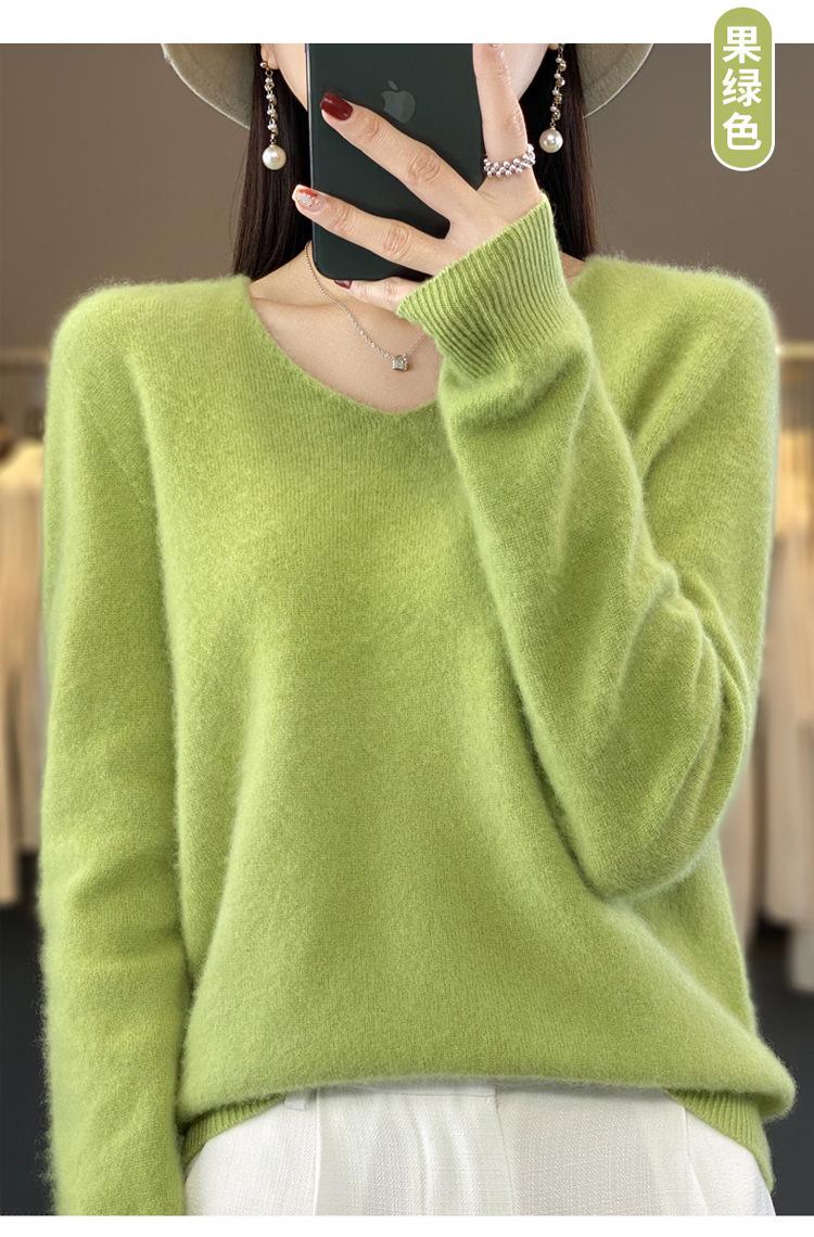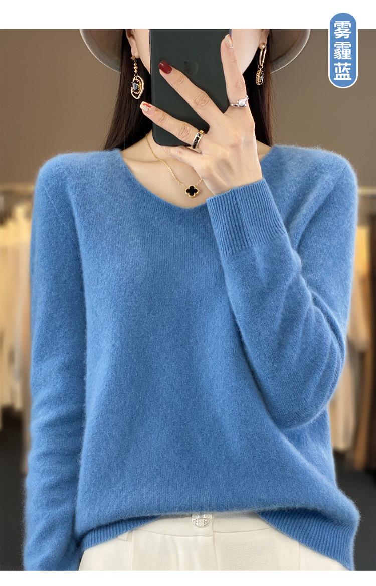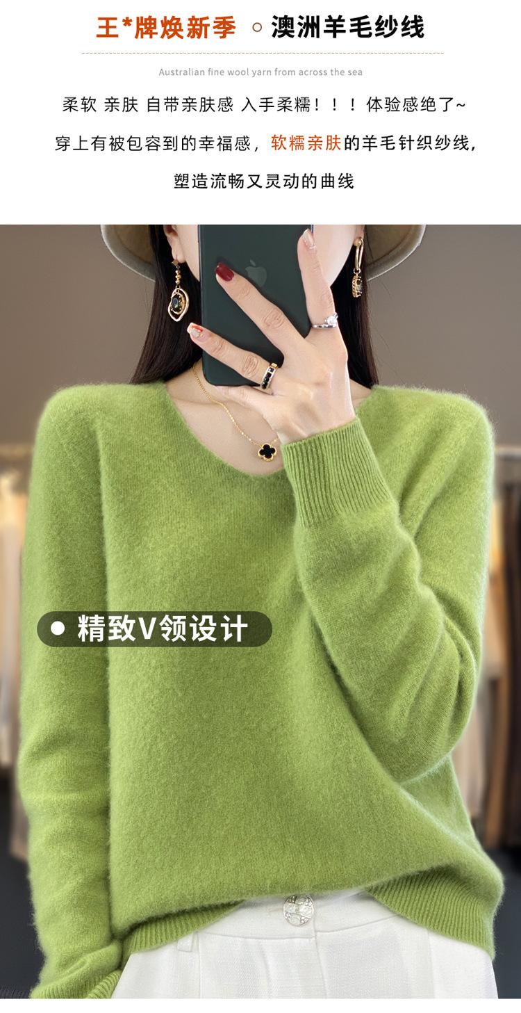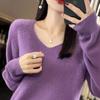 Suéter de Lana 100% Pura para Mujer Prenda de Primera Línea Jersey de Cuello en V Tejido Camiseta Básica 2023 Otoño Nuevo Suéter de Cachemira