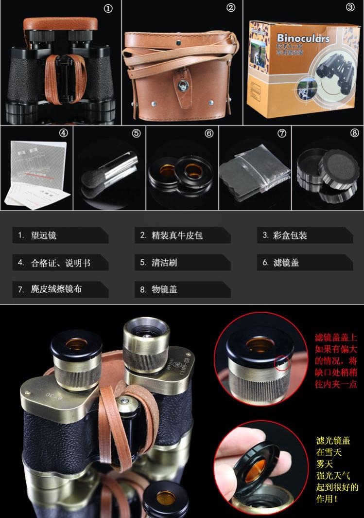 Binoculares 62-Tipo 8X30 al por mayor de Alta Potencia y Alta Definición para Exteriores con Coordinación de Rango Visión Nocturna con Poca Luz Binoculares de Mano