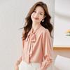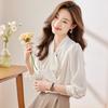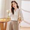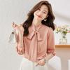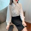 Camisa elegante de gasa francesa con lazo de perlas para mujer, diseño moderno de otoño, ideal para ir al trabajo.