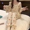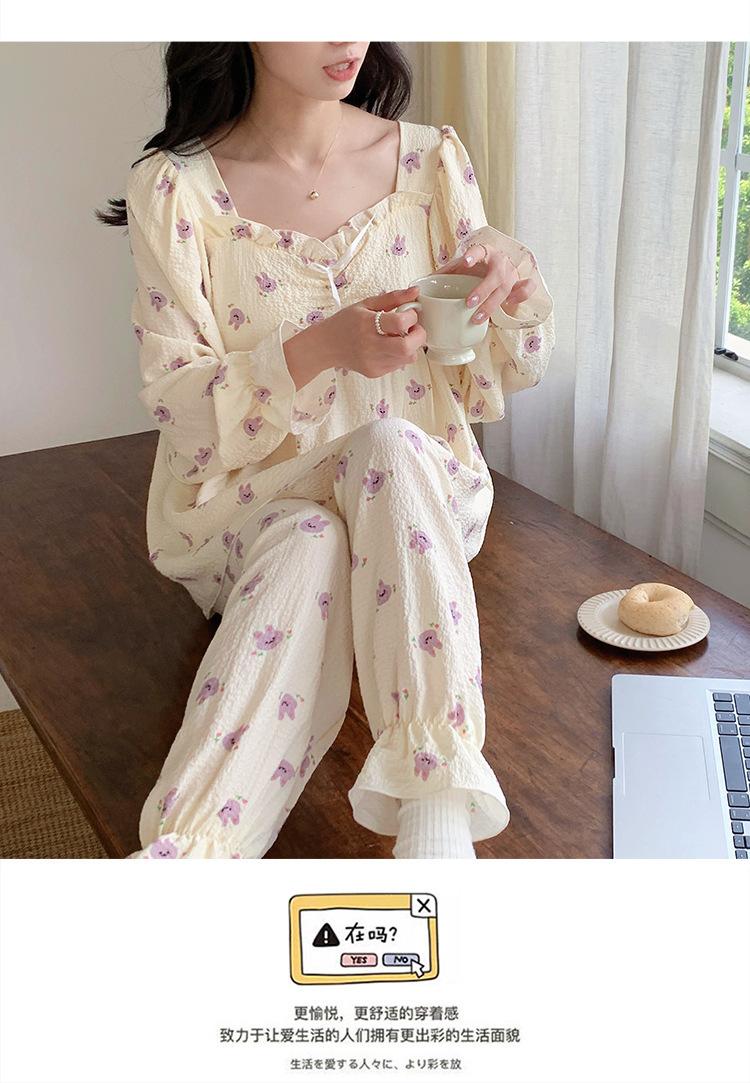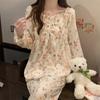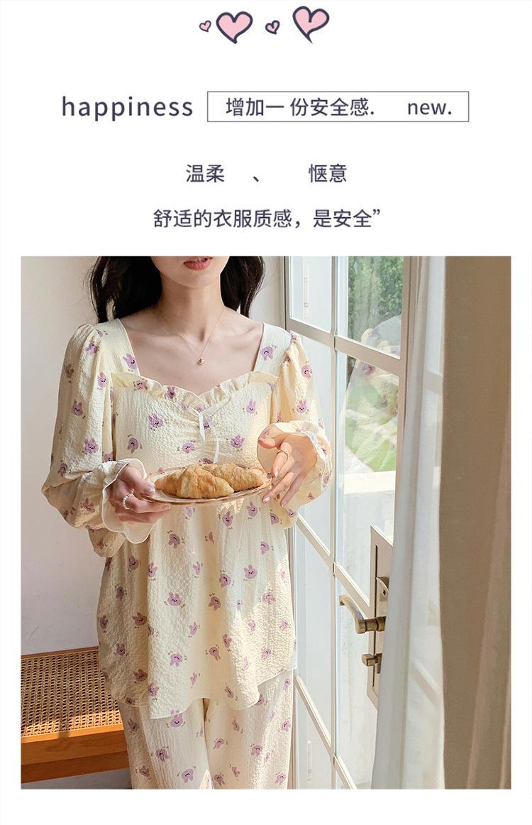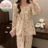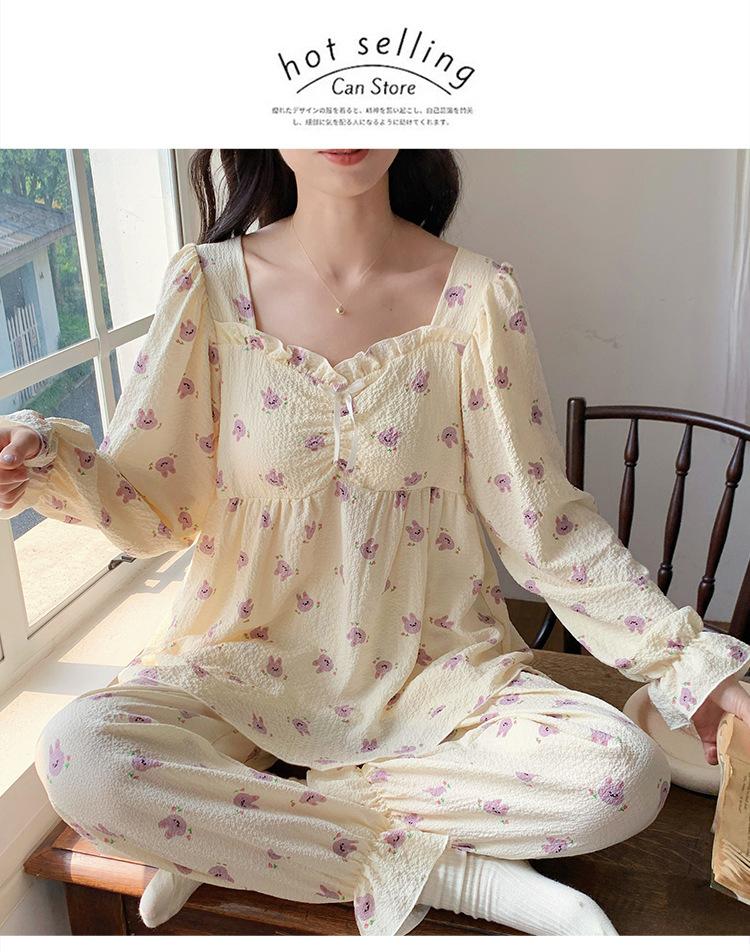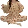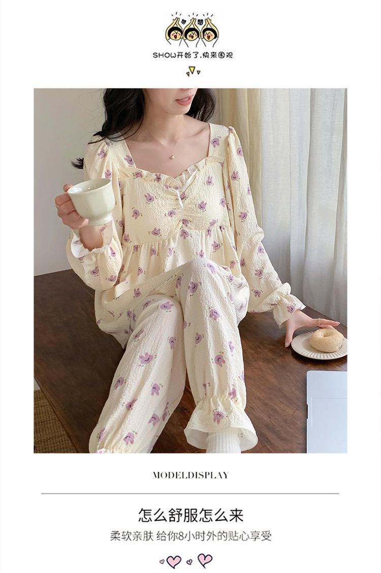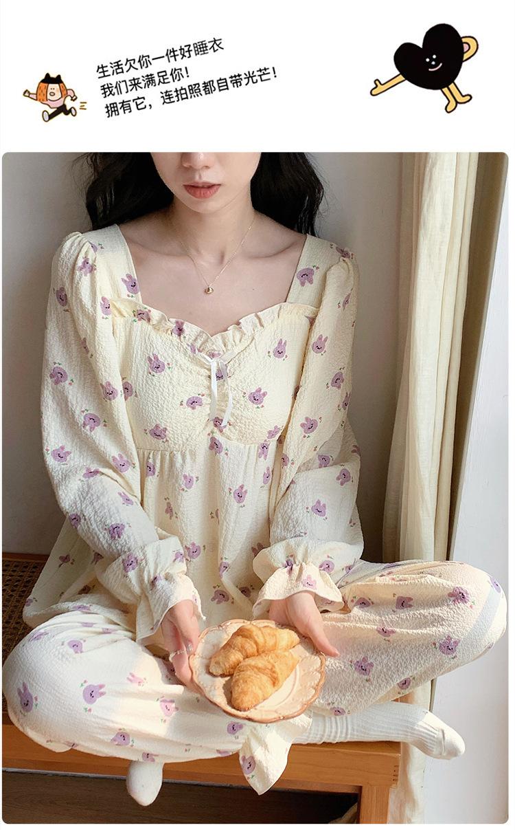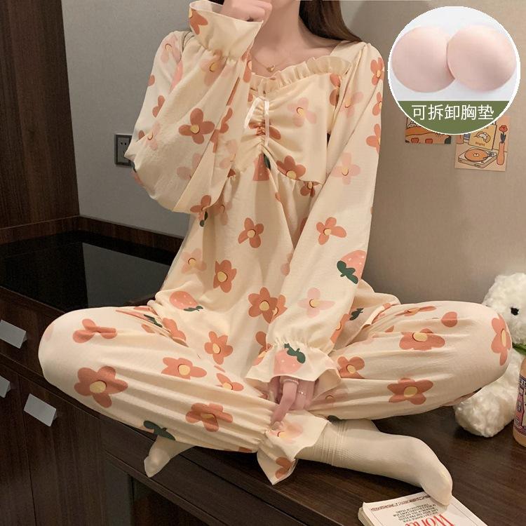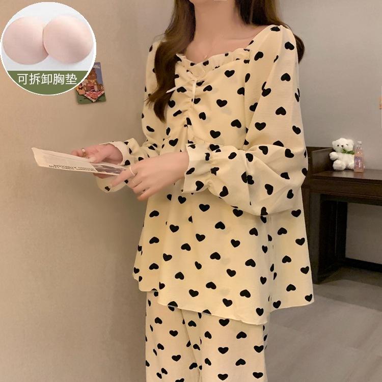 Pijamas de mujer de primavera y otoño de algodón con burbujas, estilo dulce, pantalones de manga larga, traje de casa con almohadilla para el pecho, se puede usar al aire libre