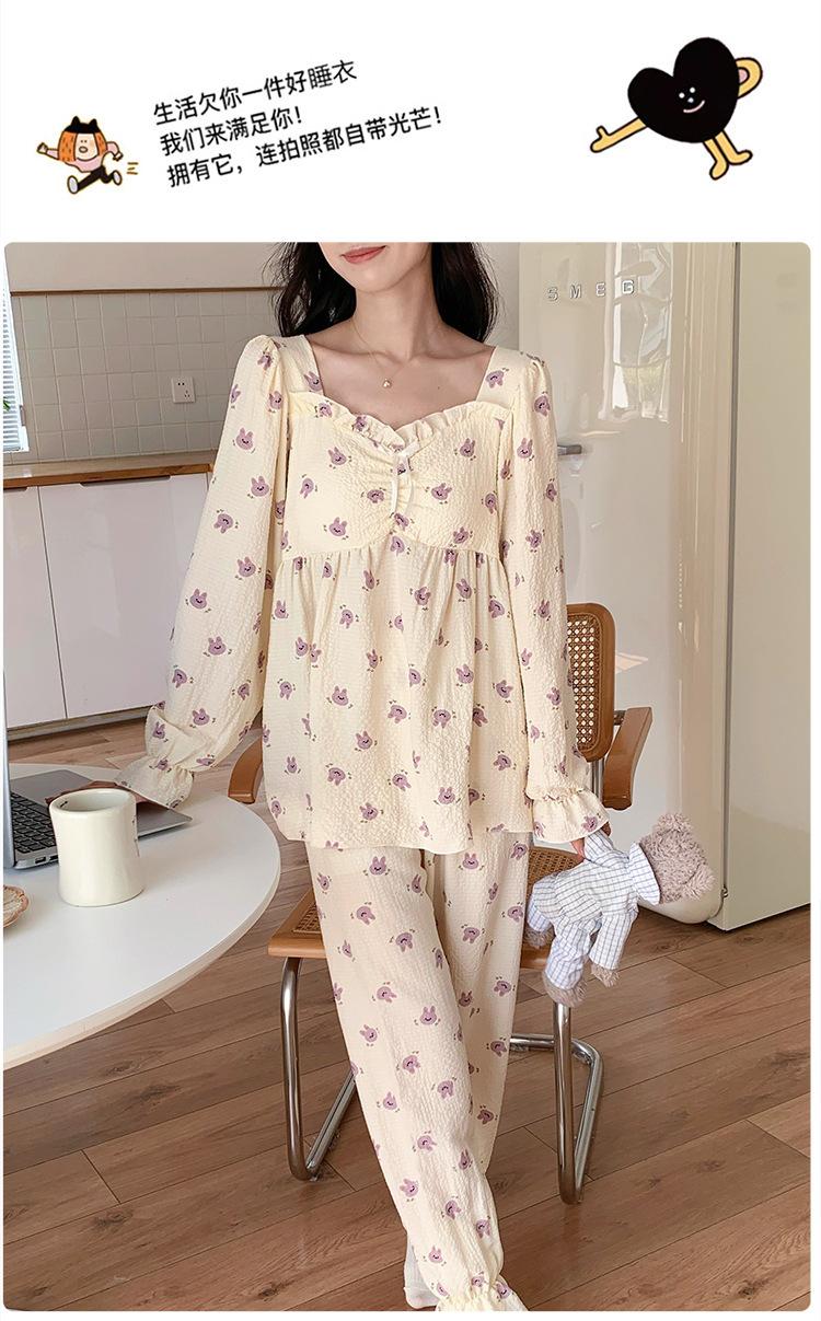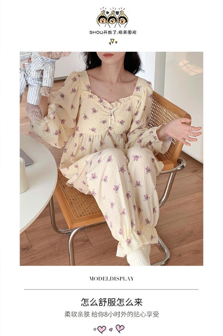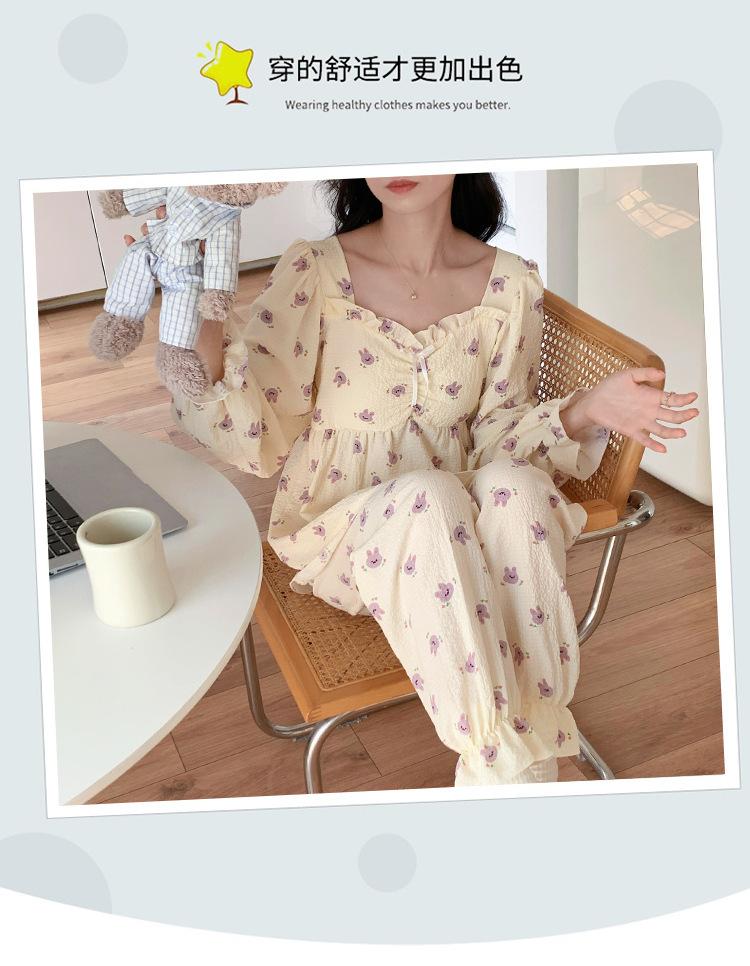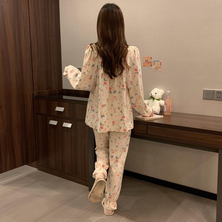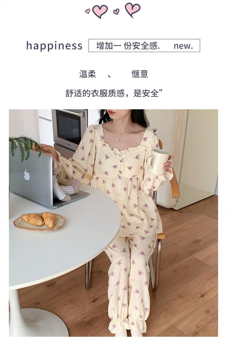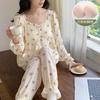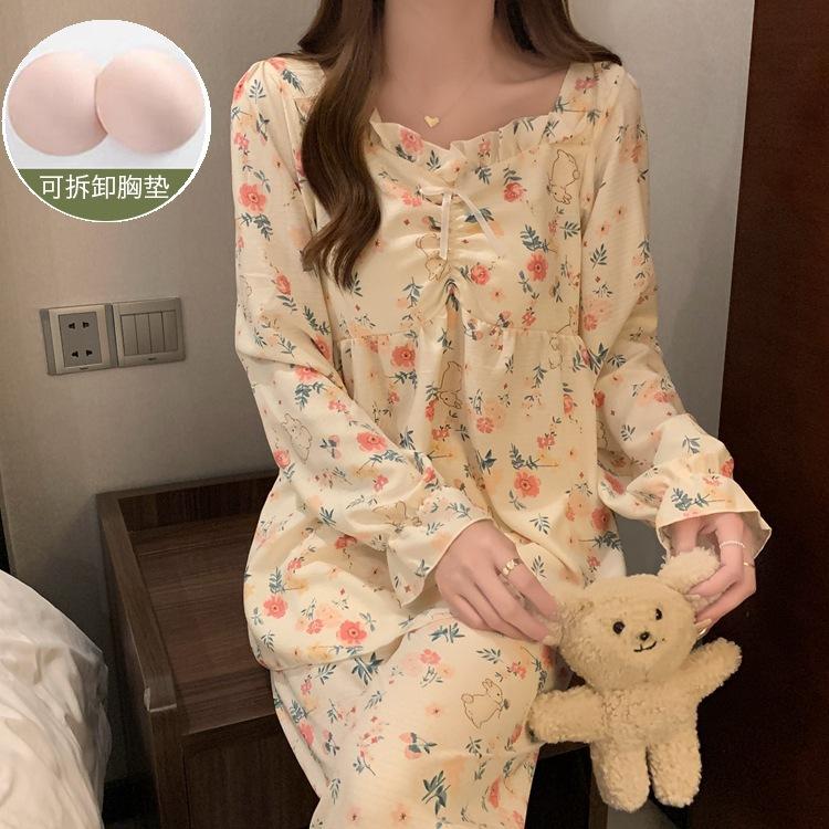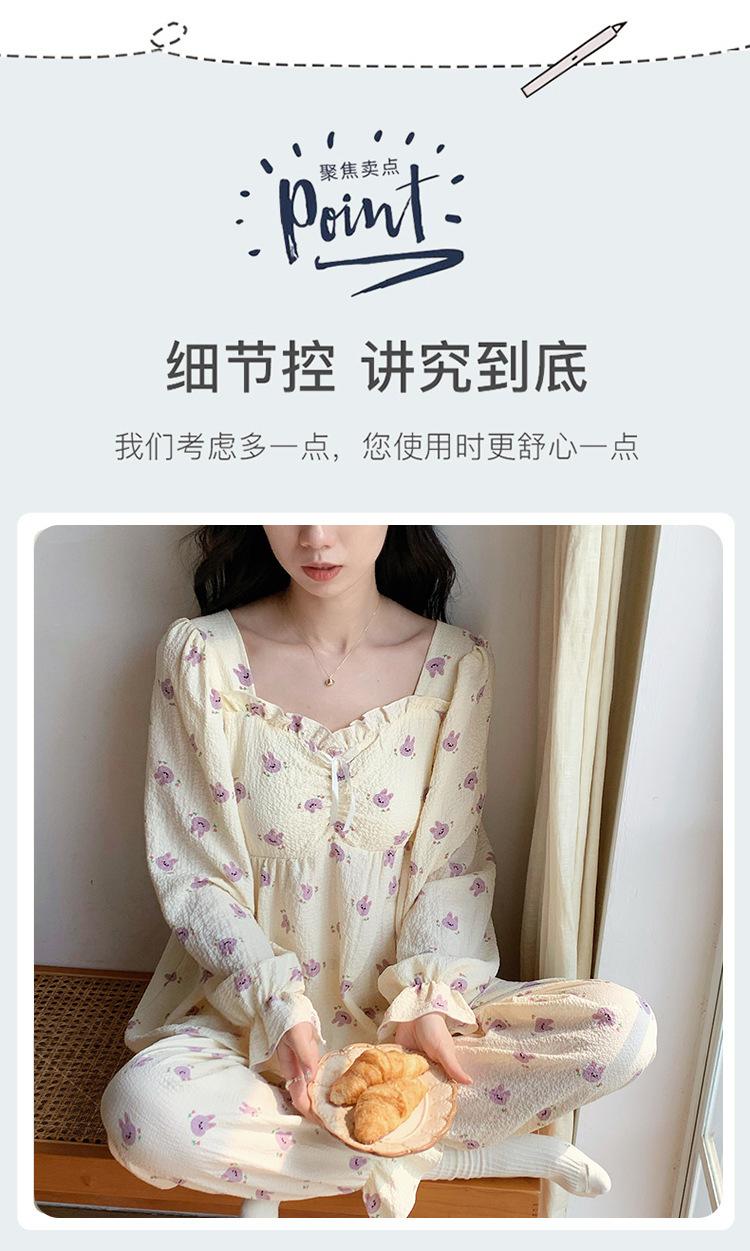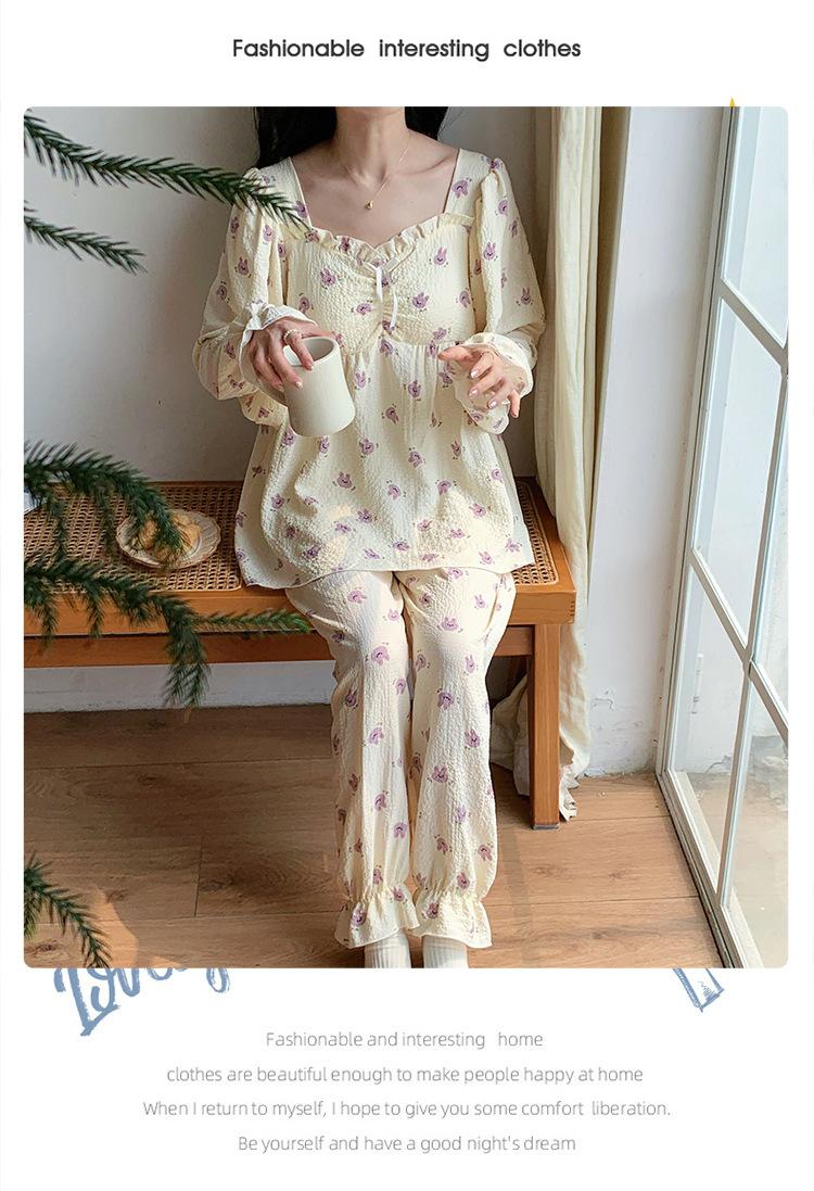 Pijamas de mujer de primavera y otoño de algodón con burbujas, estilo dulce, pantalones de manga larga, traje de casa con almohadilla para el pecho, se puede usar al aire libre