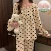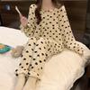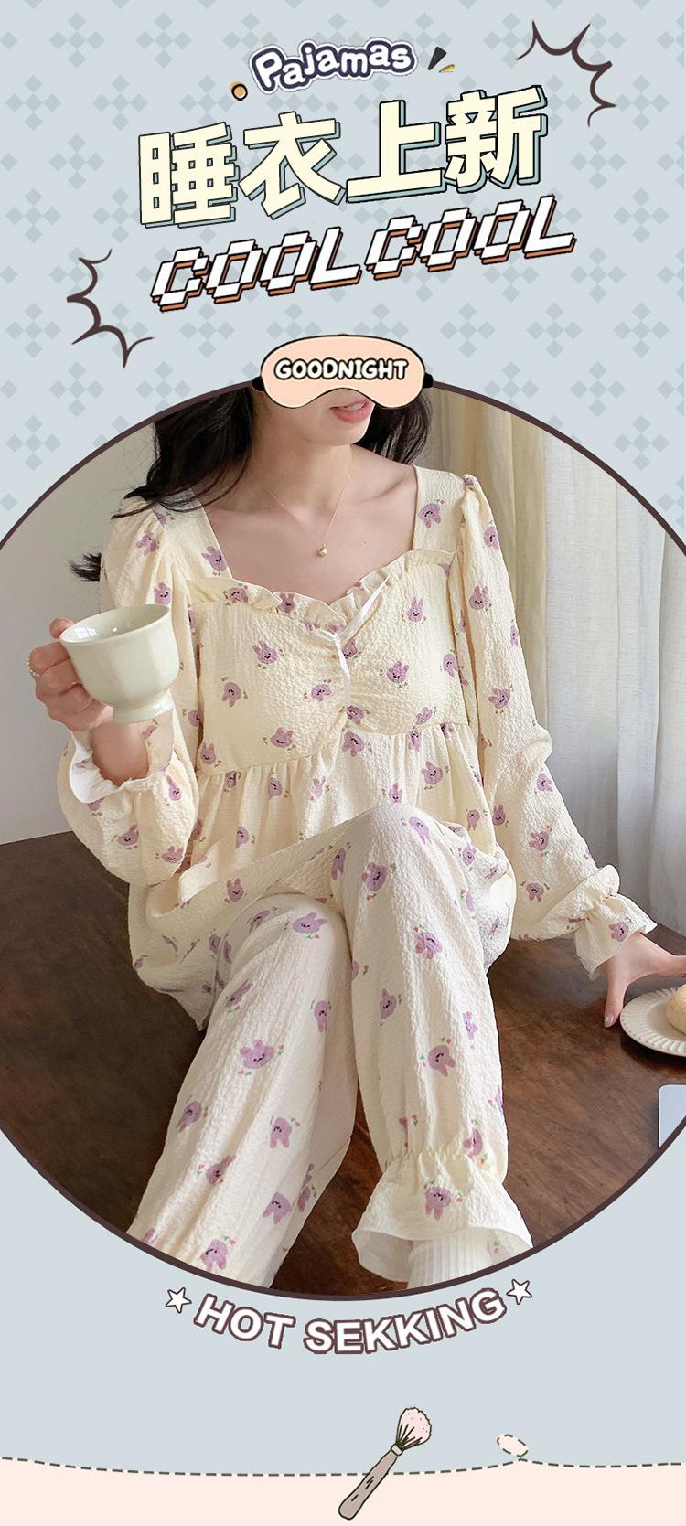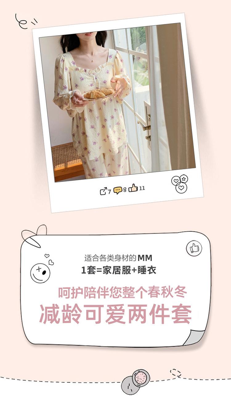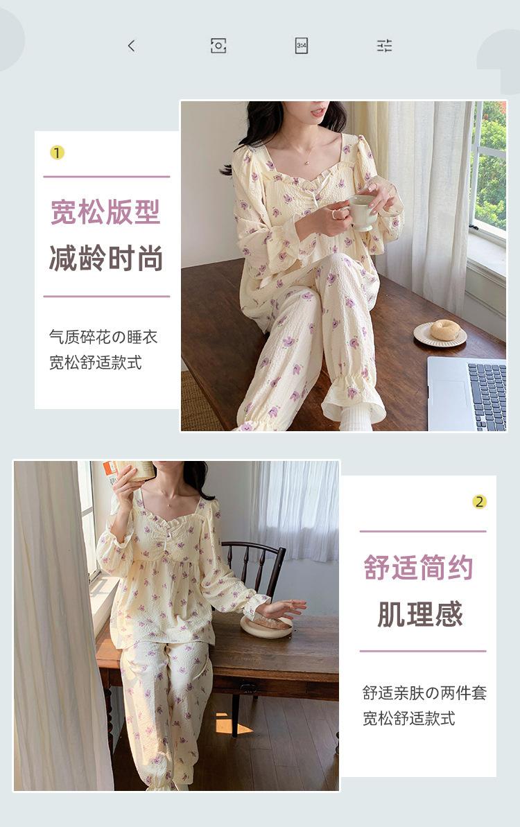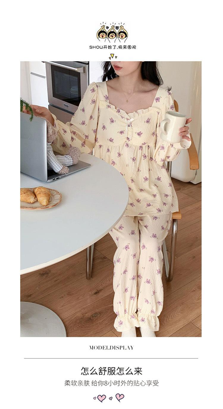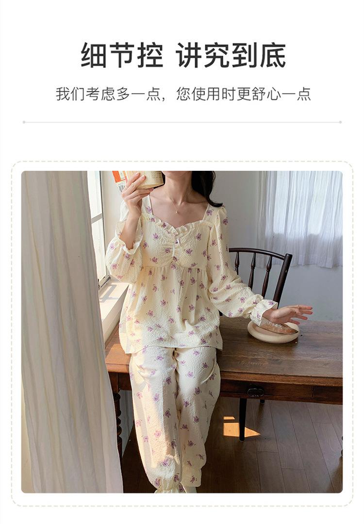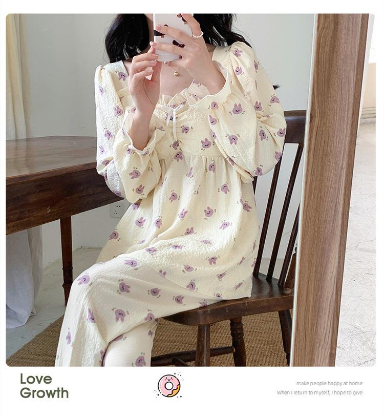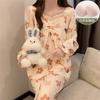 Pijamas de mujer de primavera y otoño de algodón con burbujas, estilo dulce, pantalones de manga larga, traje de casa con almohadilla para el pecho, se puede usar al aire libre