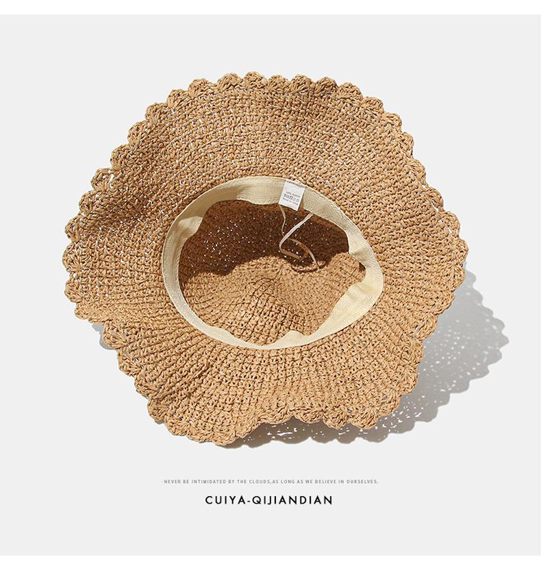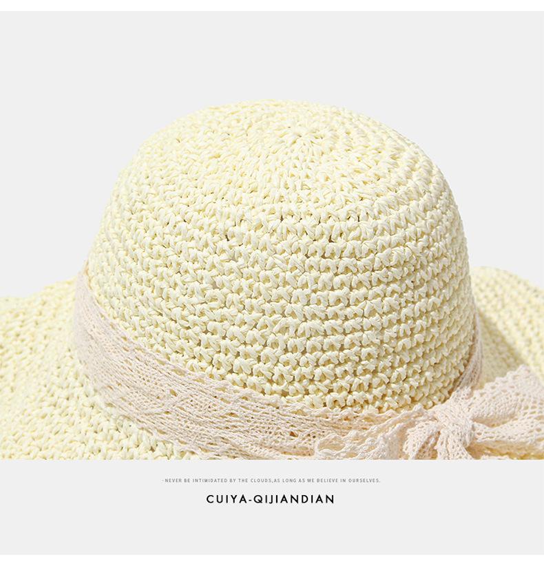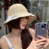 Sombrero de paja de rafia para mujer, sombrero de verano para sombra, sombrero de playa para protección solar junto al mar, ala ancha, sombrero de sol japonés tejido al por mayor