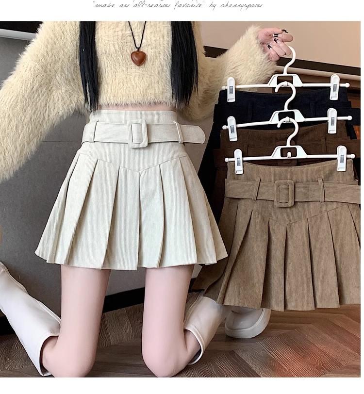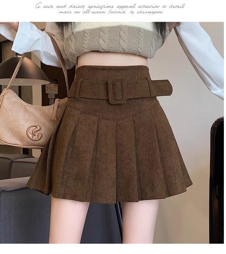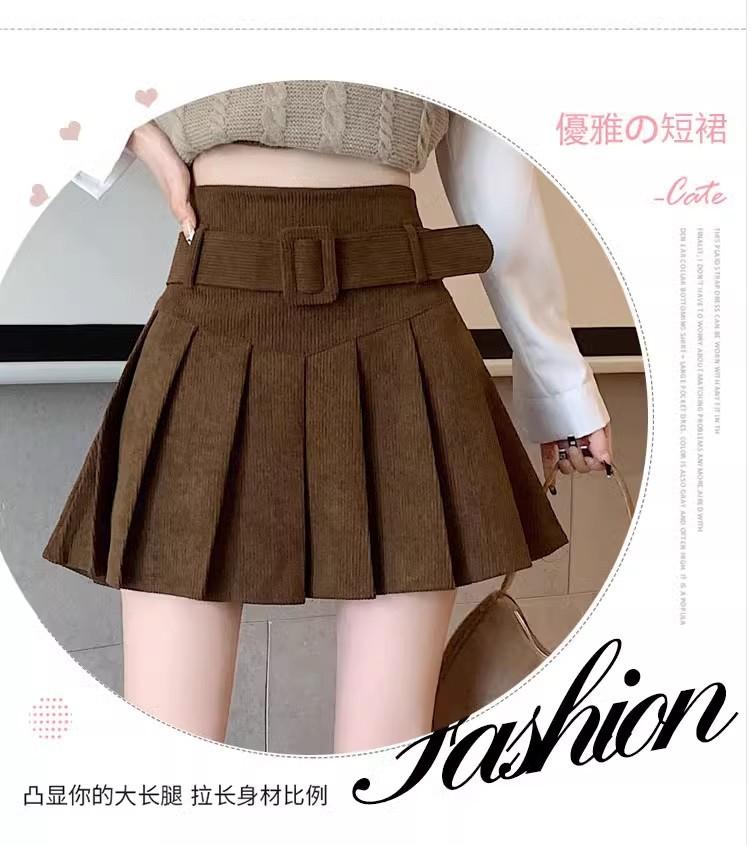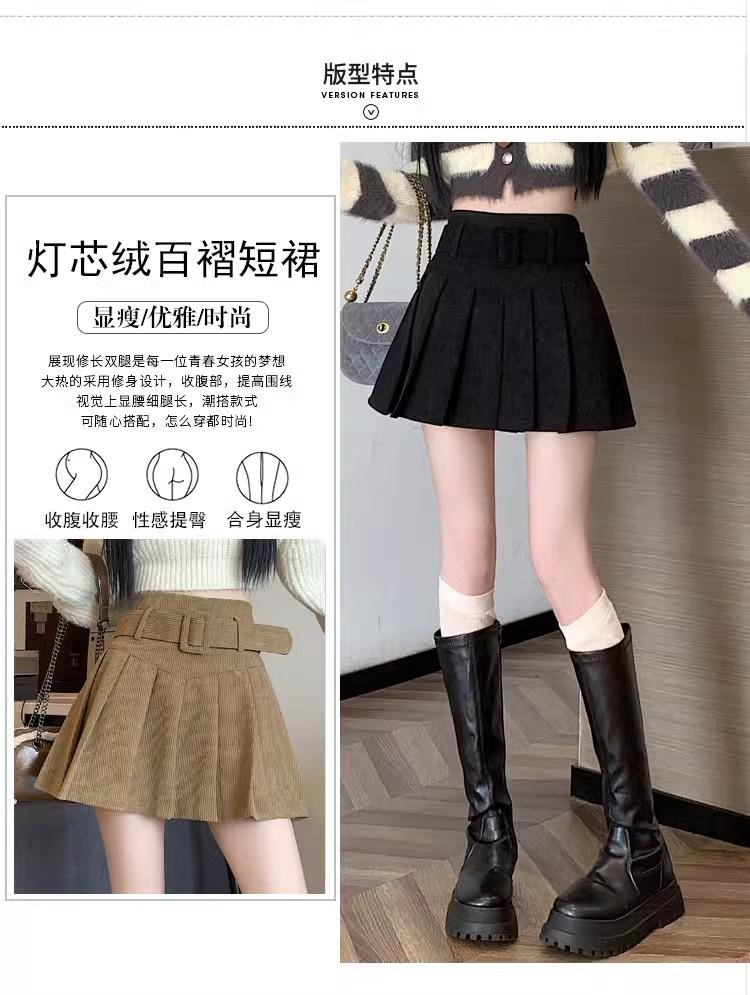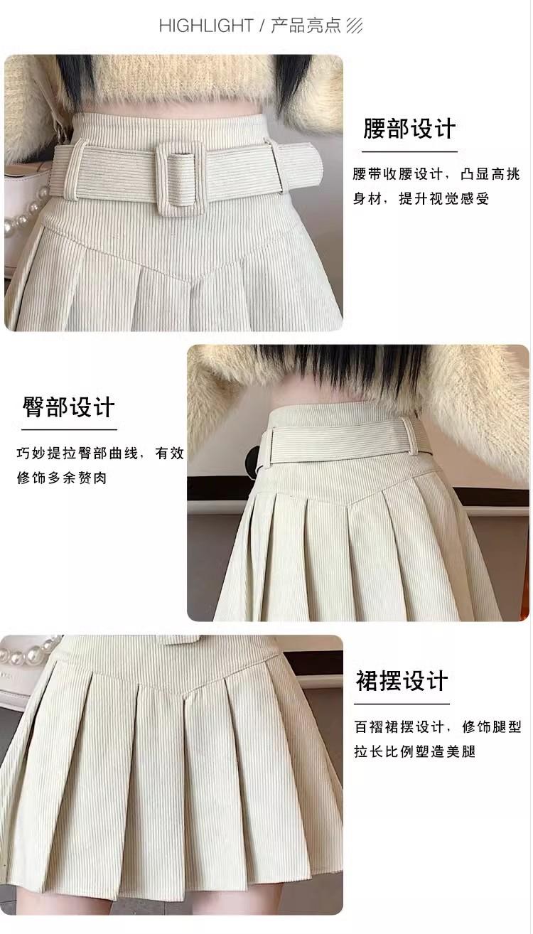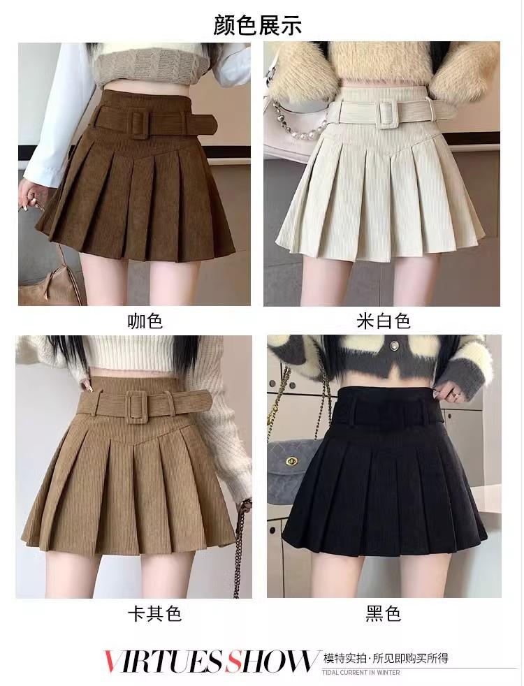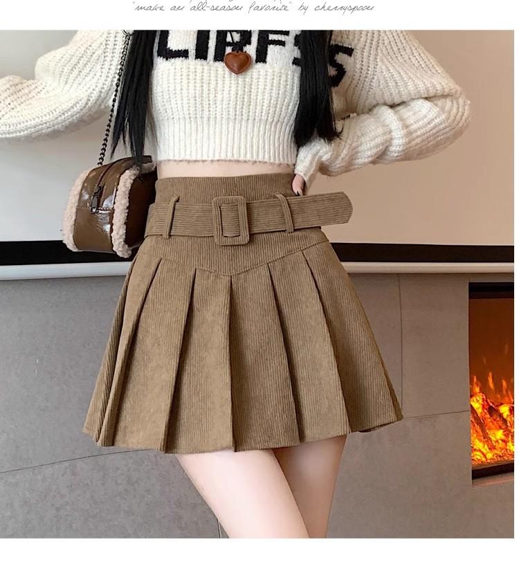 Falda de pana con cintura alta para mujer, diseño de otoño e invierno 2024, ligera, antidesgaste, con pliegues en forma de A.