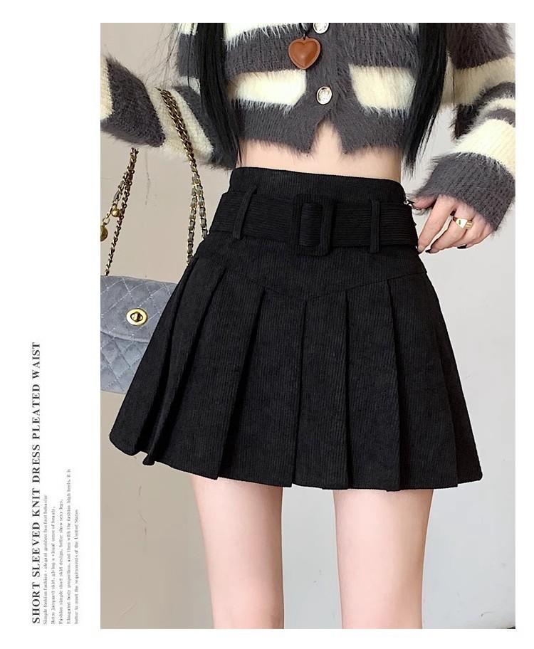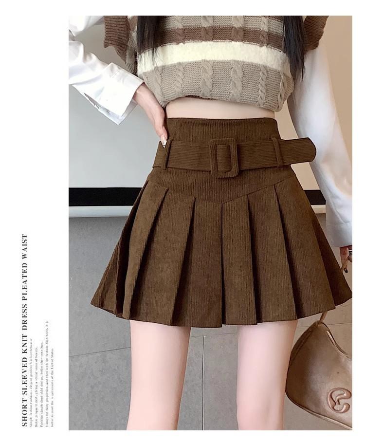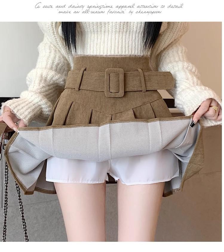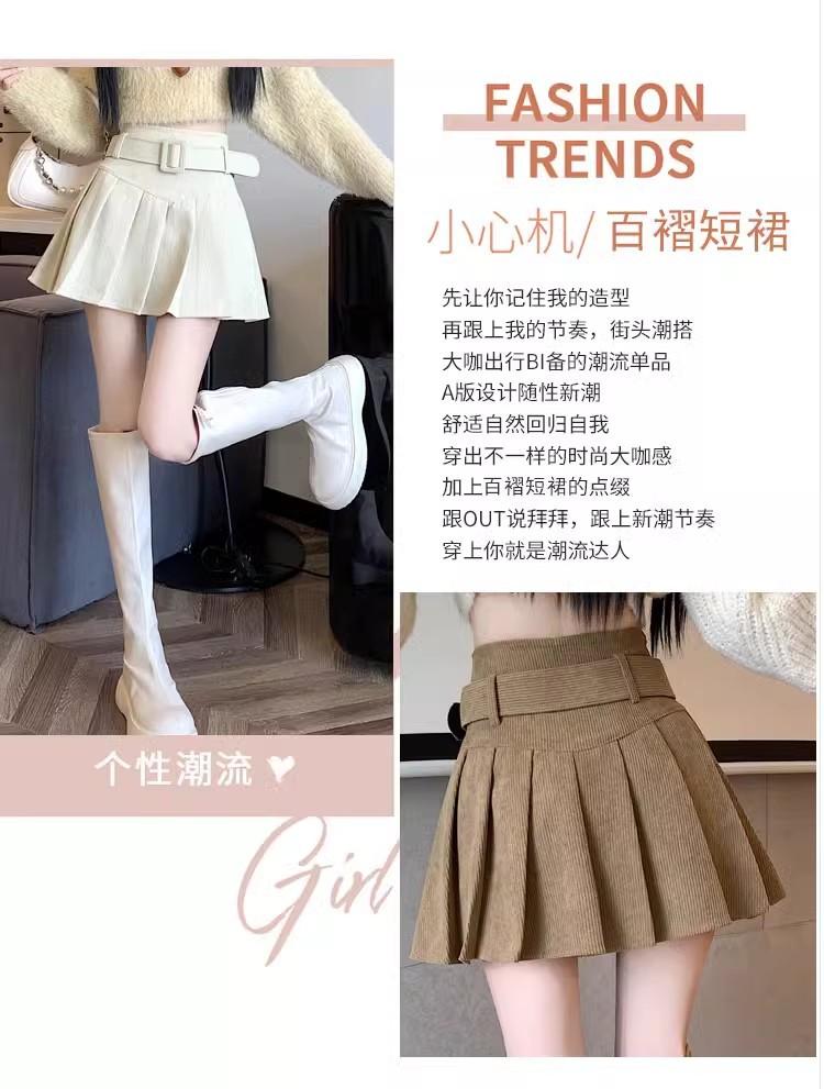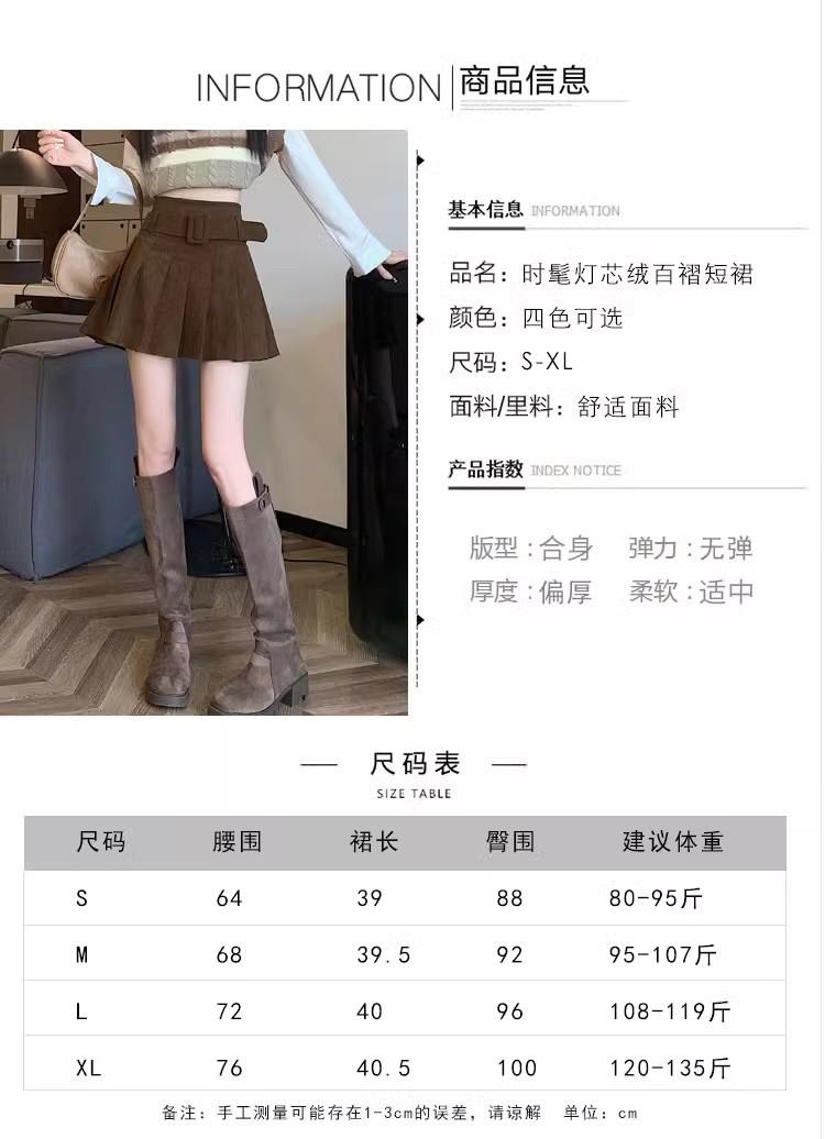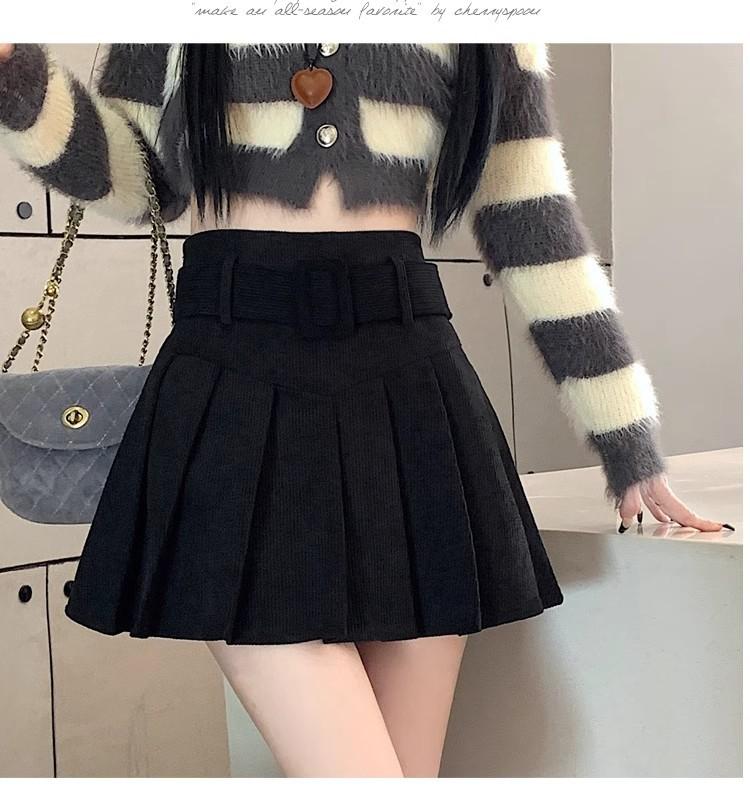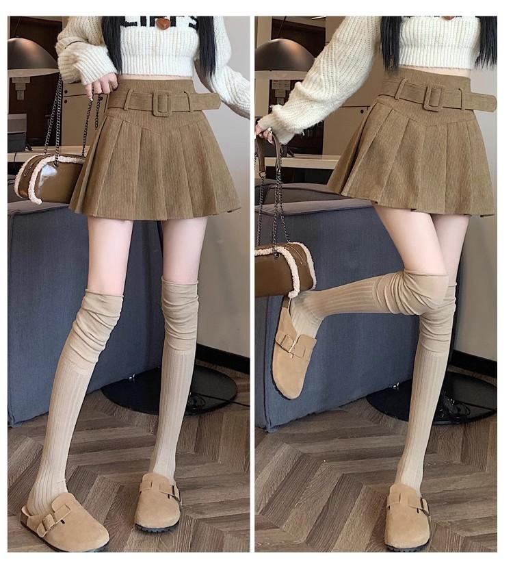 Falda de pana con cintura alta para mujer, diseño de otoño e invierno 2024, ligera, antidesgaste, con pliegues en forma de A.