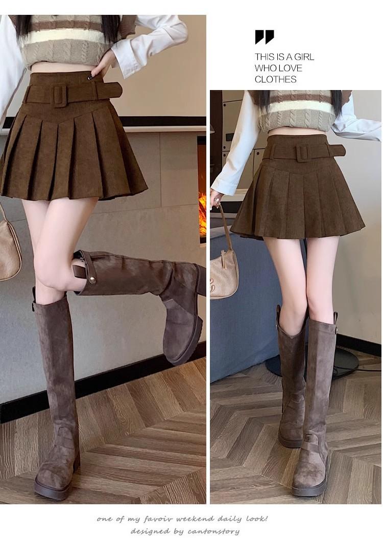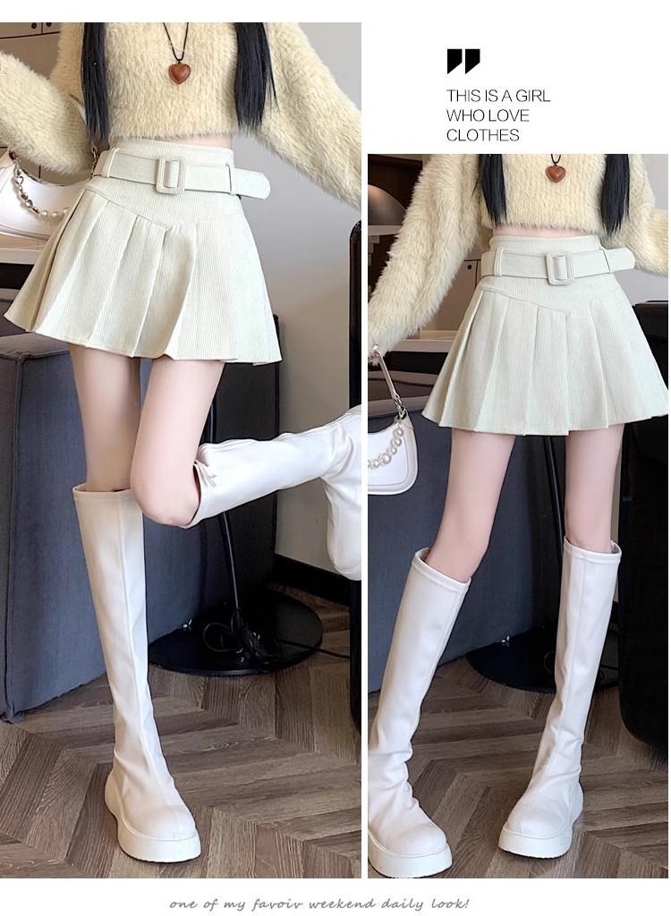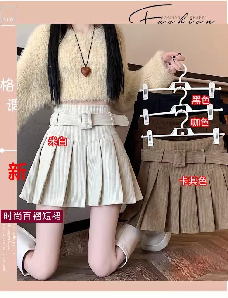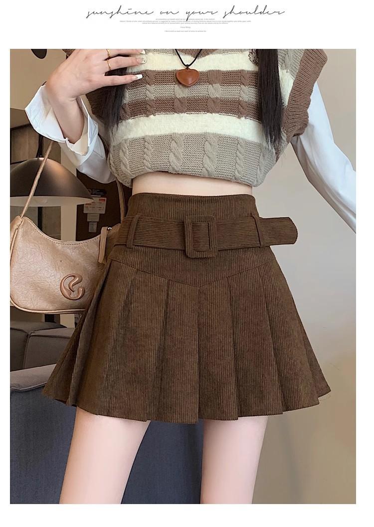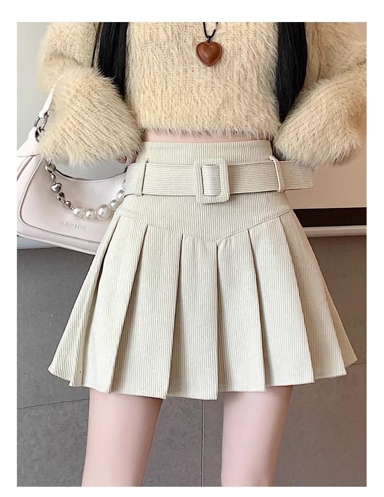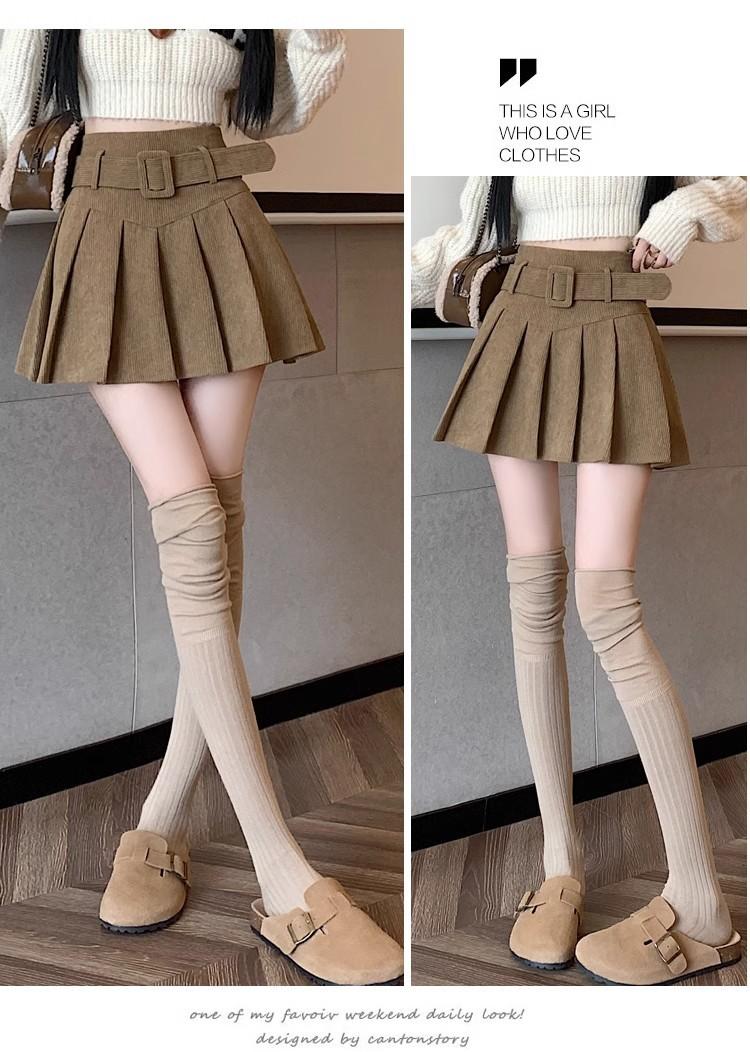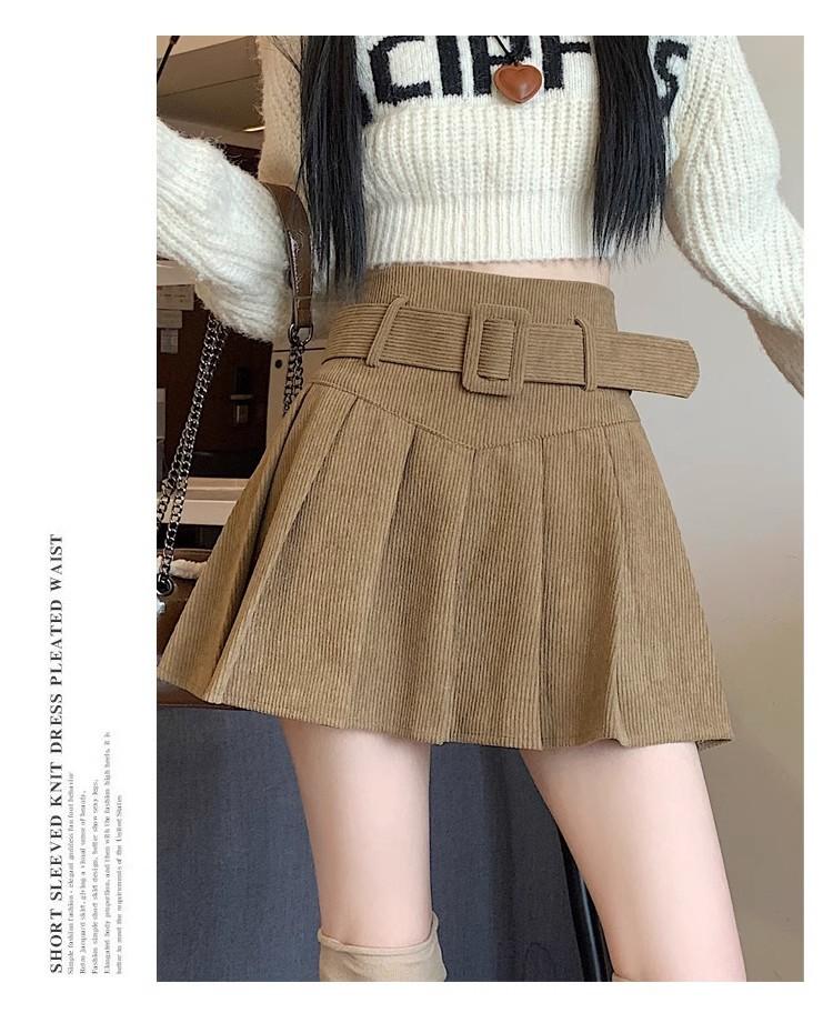Falda de pana con cintura alta para mujer, diseño de otoño e invierno 2024, ligera, antidesgaste, con pliegues en forma de A.