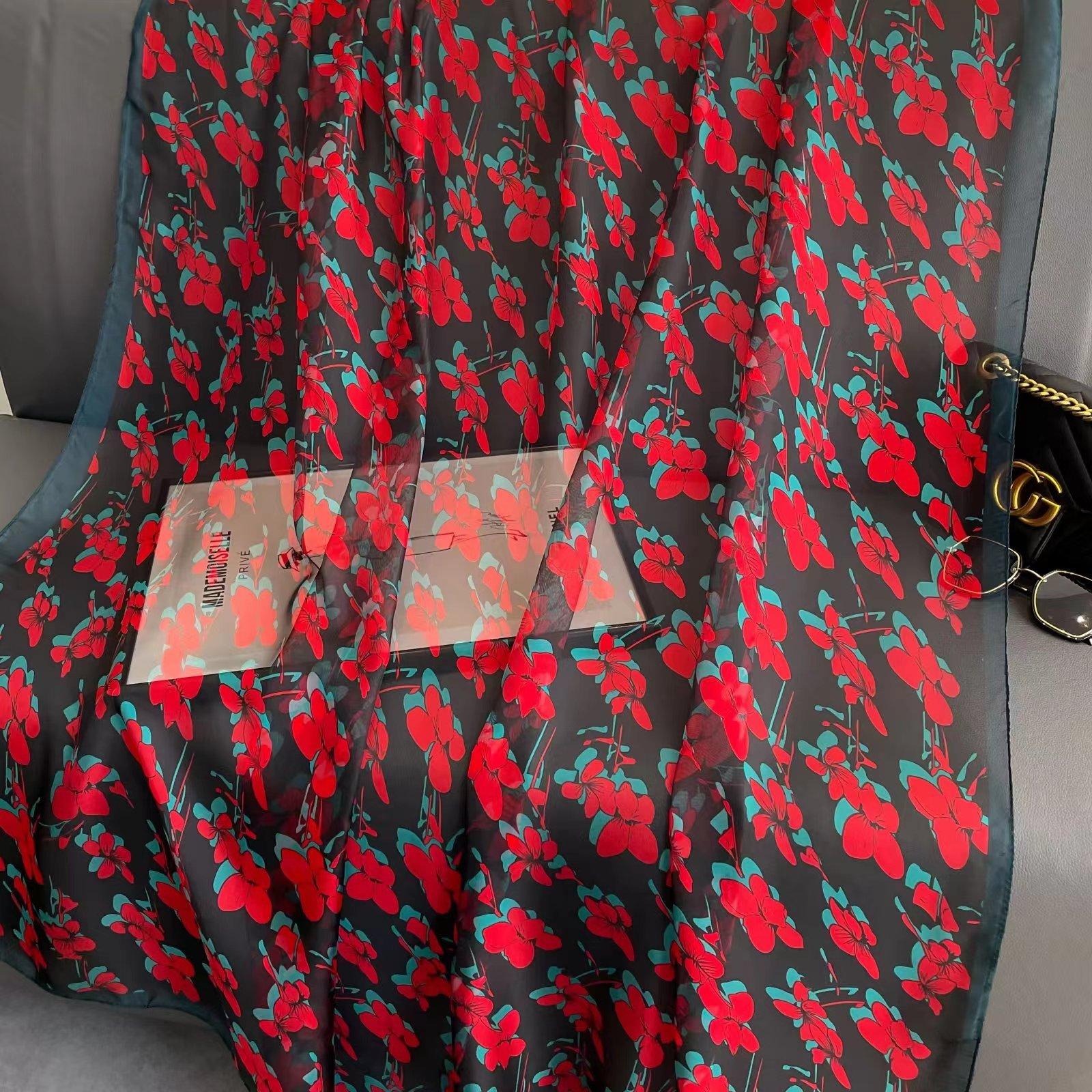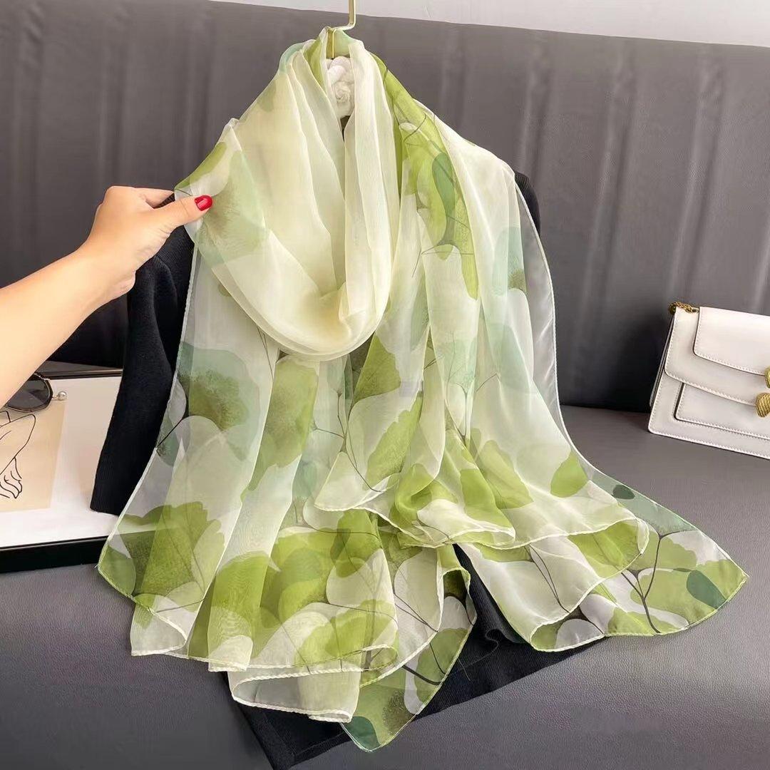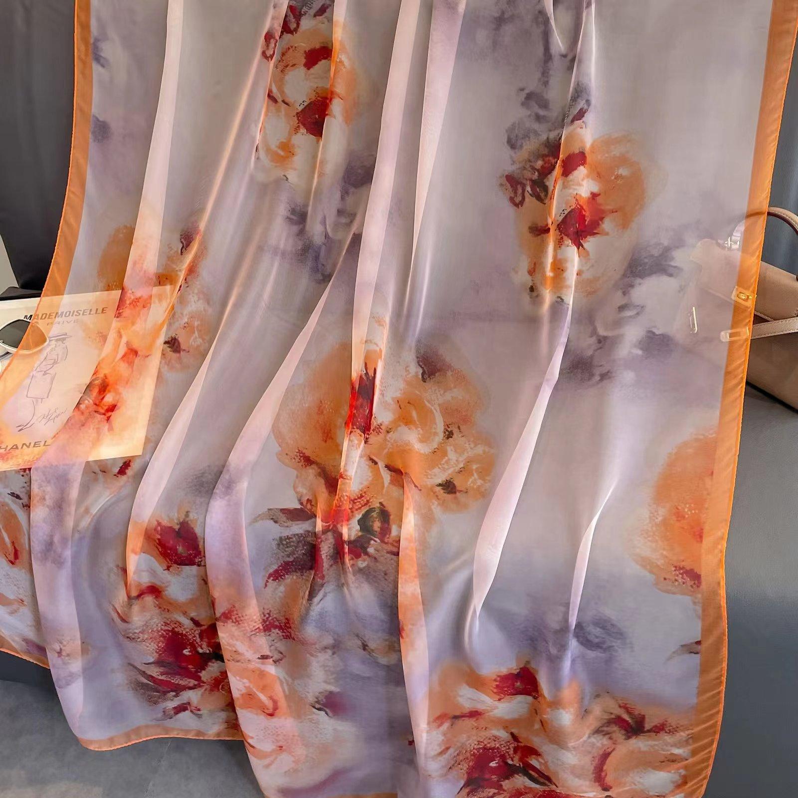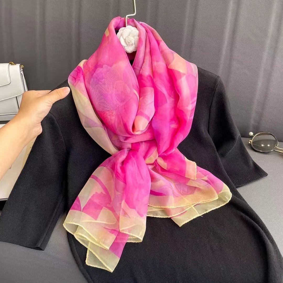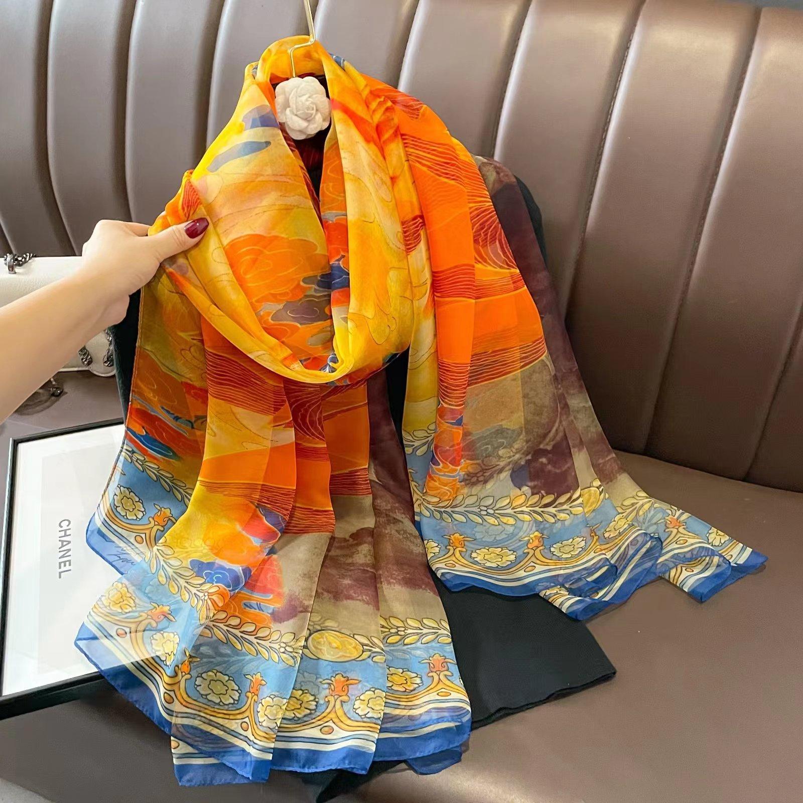 Elegante chal bufanda de estilo chino estampado estilo coreano primavera y otoño versátil bufanda de seda artificial bufanda de moda de lujo ligero para mujer