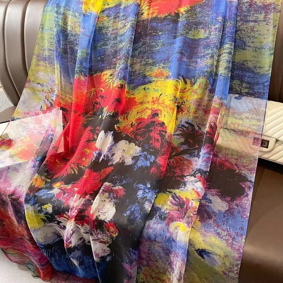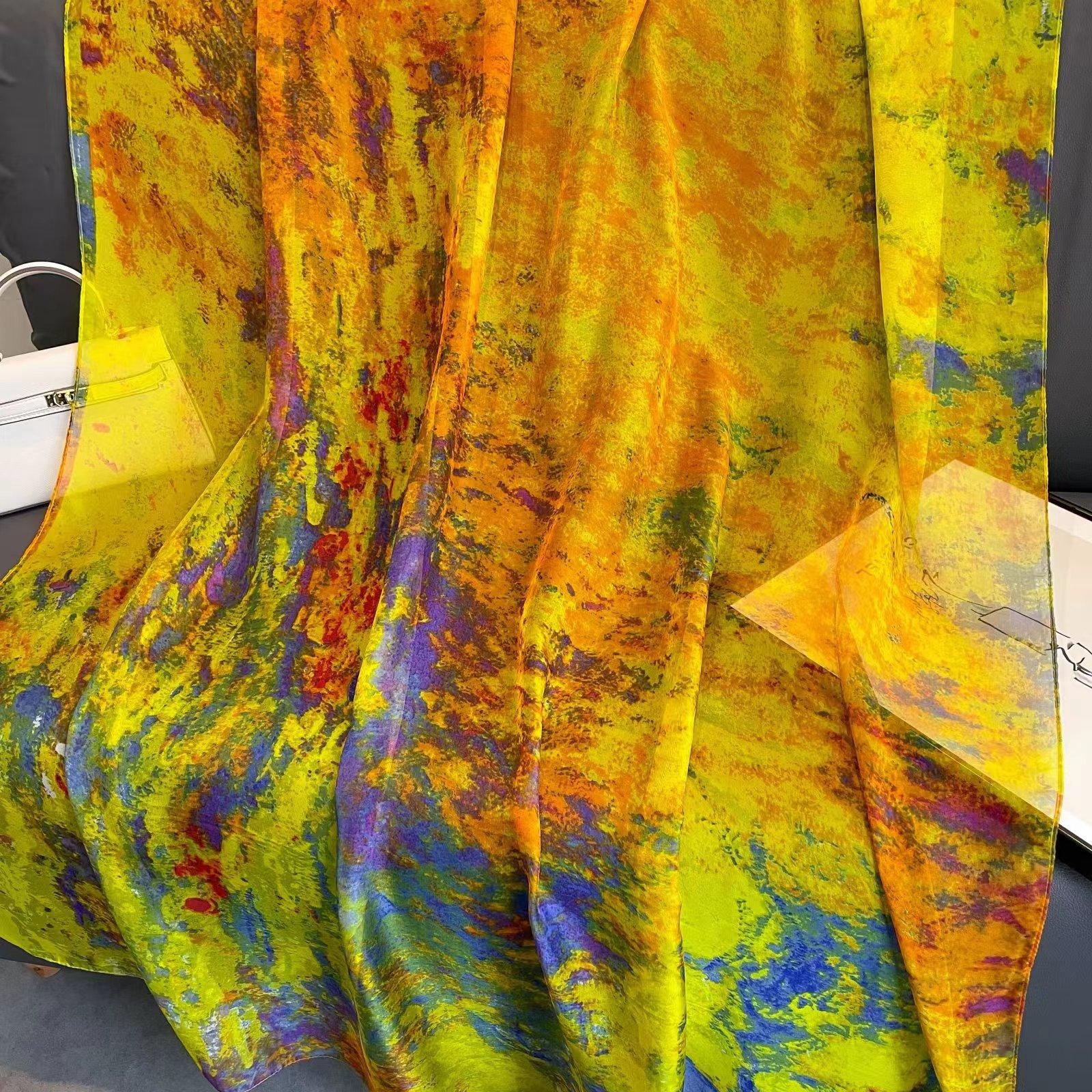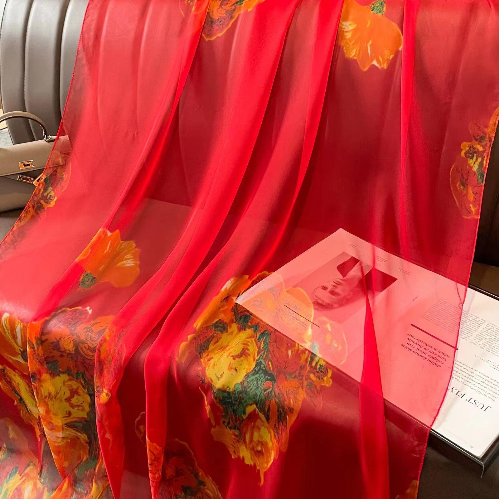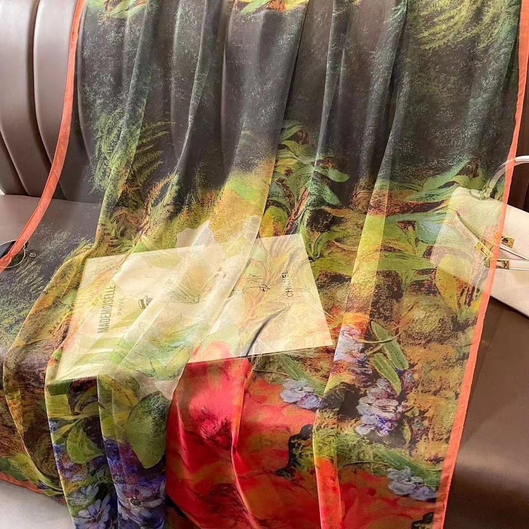 Elegante chal bufanda de estilo chino estampado estilo coreano primavera y otoño versátil bufanda de seda artificial bufanda de moda de lujo ligero para mujer