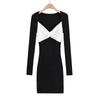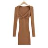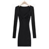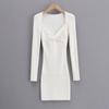 2022 primavera Europa y Estados Unidos nuevo comercio exterior color sólido cuello cuadrado top de tubo vestido tejido manga larga ajustado sexy deseo puro