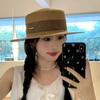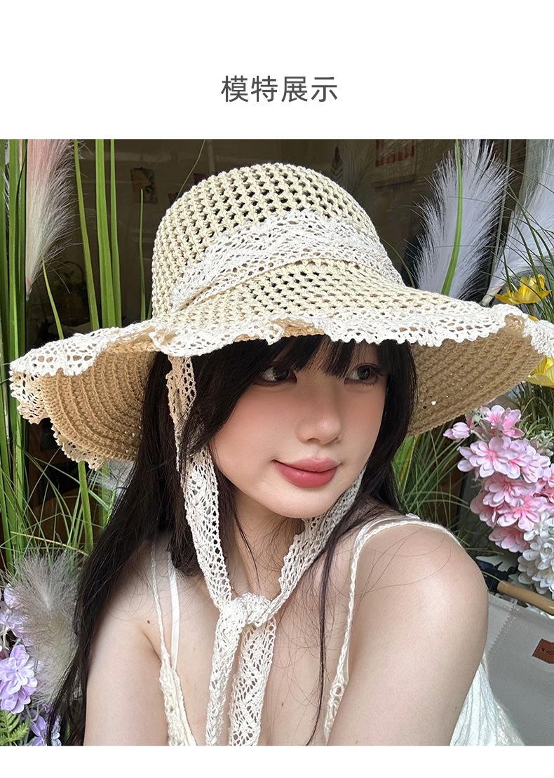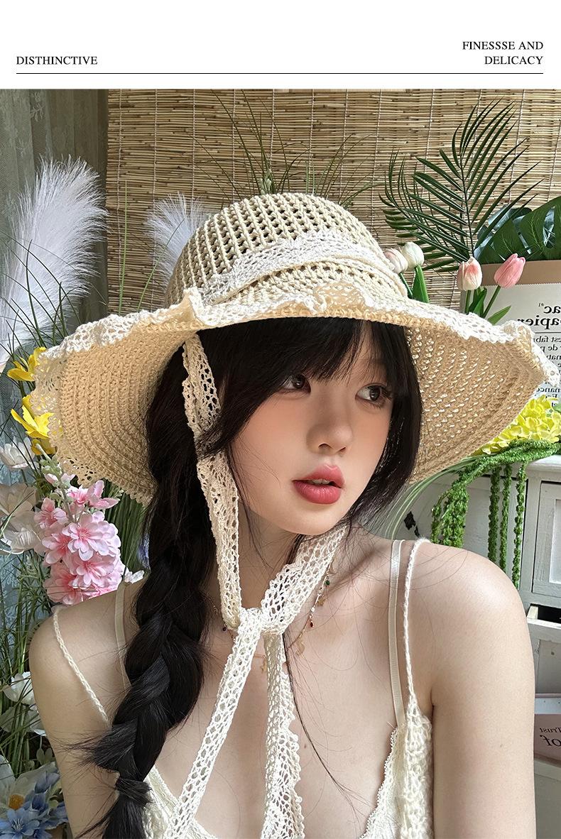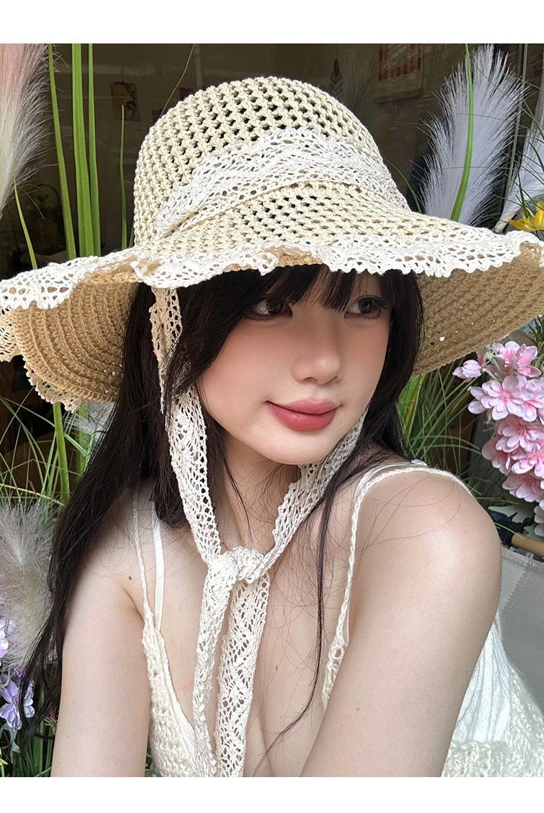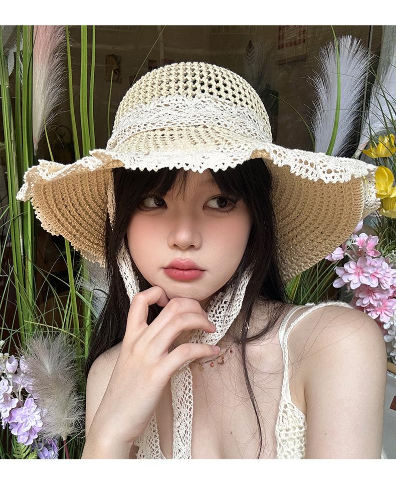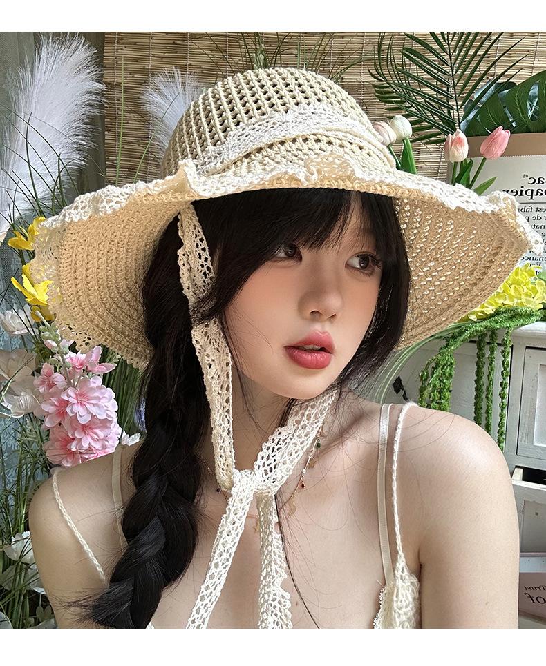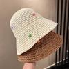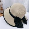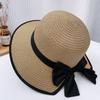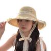 Sombrero de paja con correa para mujer, estilo coreano, de verano, hueco, transpirable, para playa, vacaciones, sombrilla, sombrero de pescador