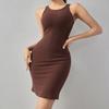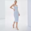 Vestido de viscosa de punto elástico de cintura alta y escote en U sexy para mujer, estilo americano, primavera 2024