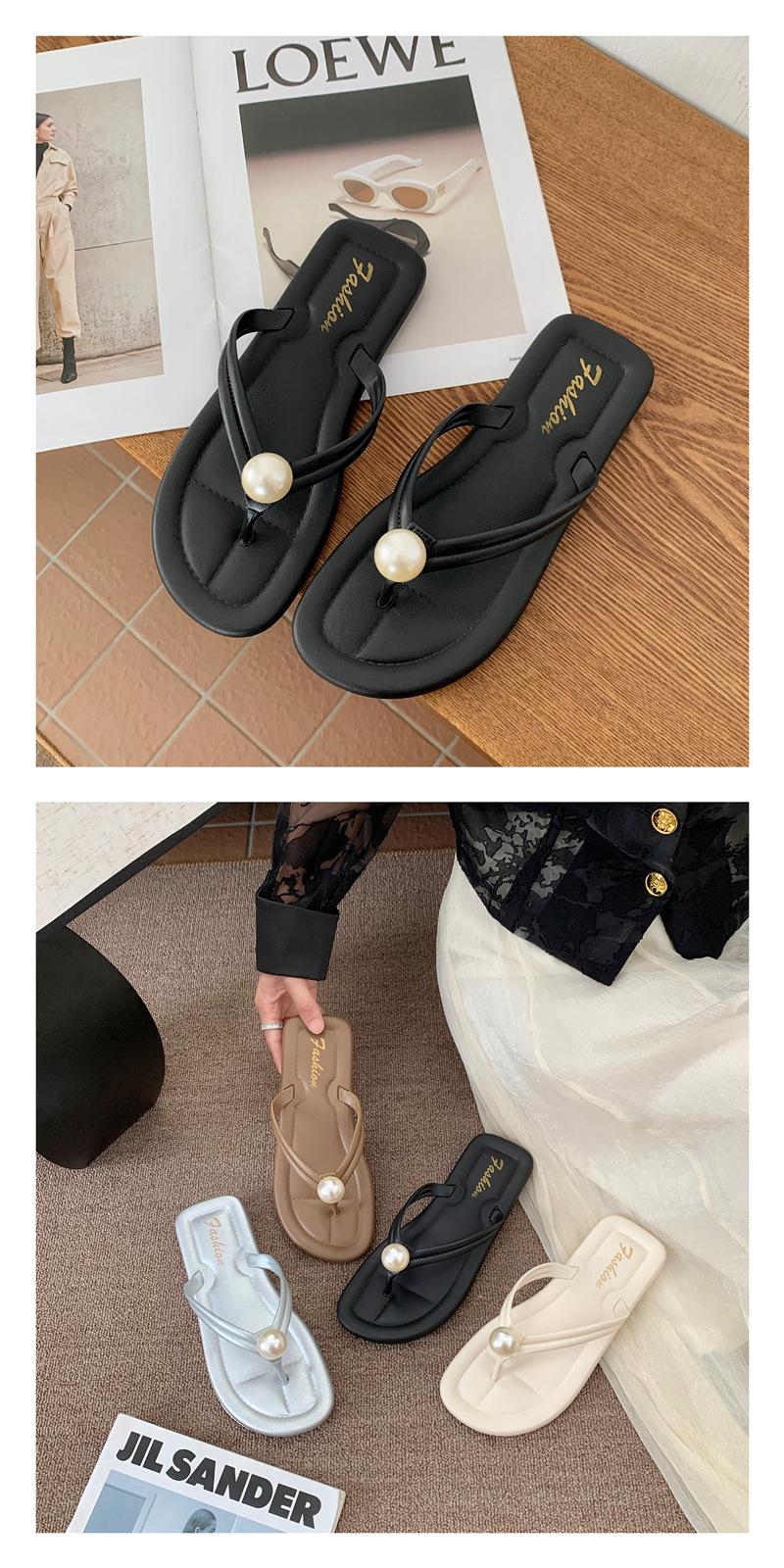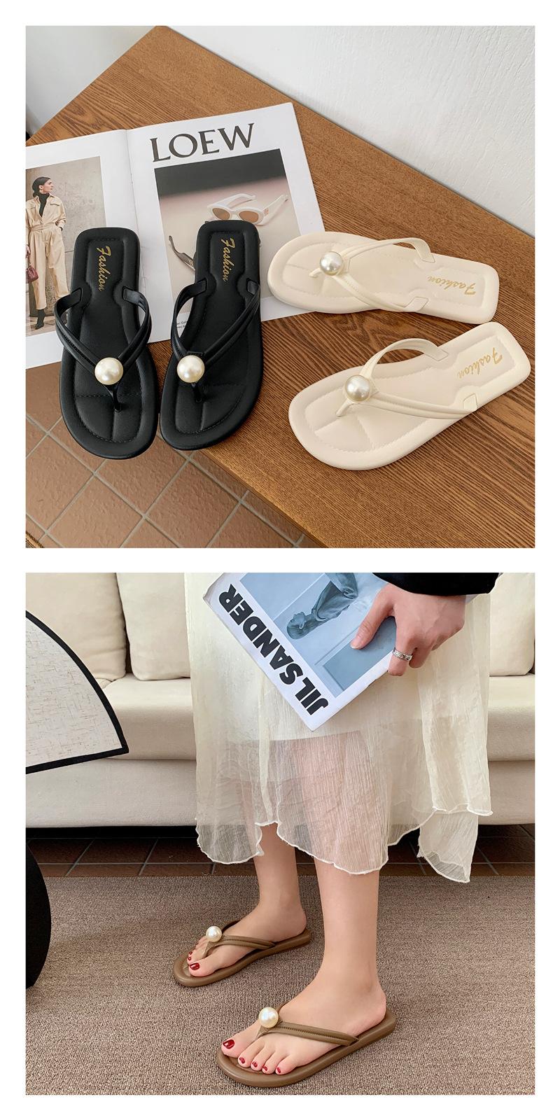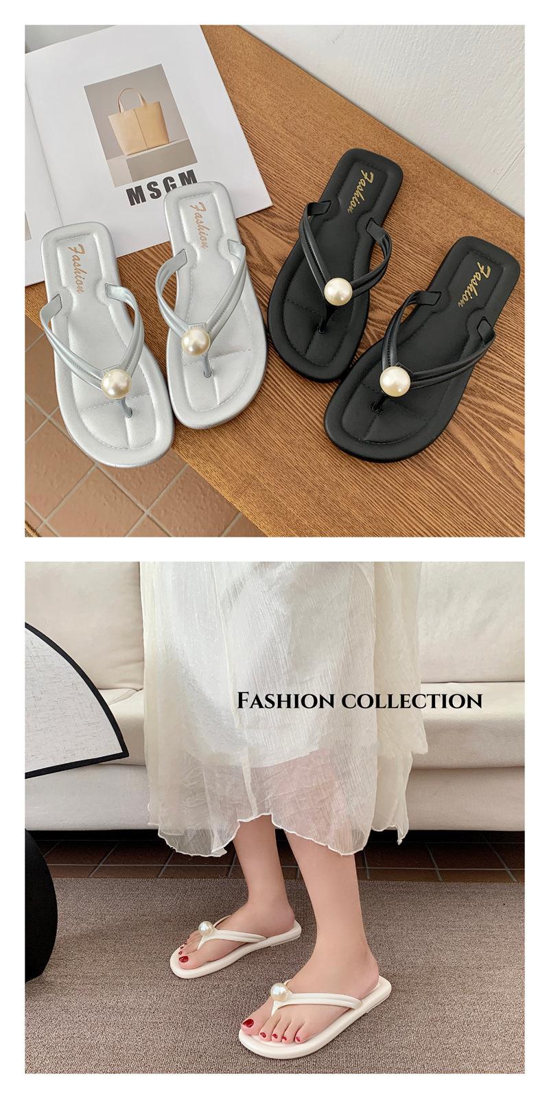 Chanclas de PVC con perlas decorativas para exteriores, chanclas para mujer, zapatillas de playa, ocio, suela suave, venta al por mayor