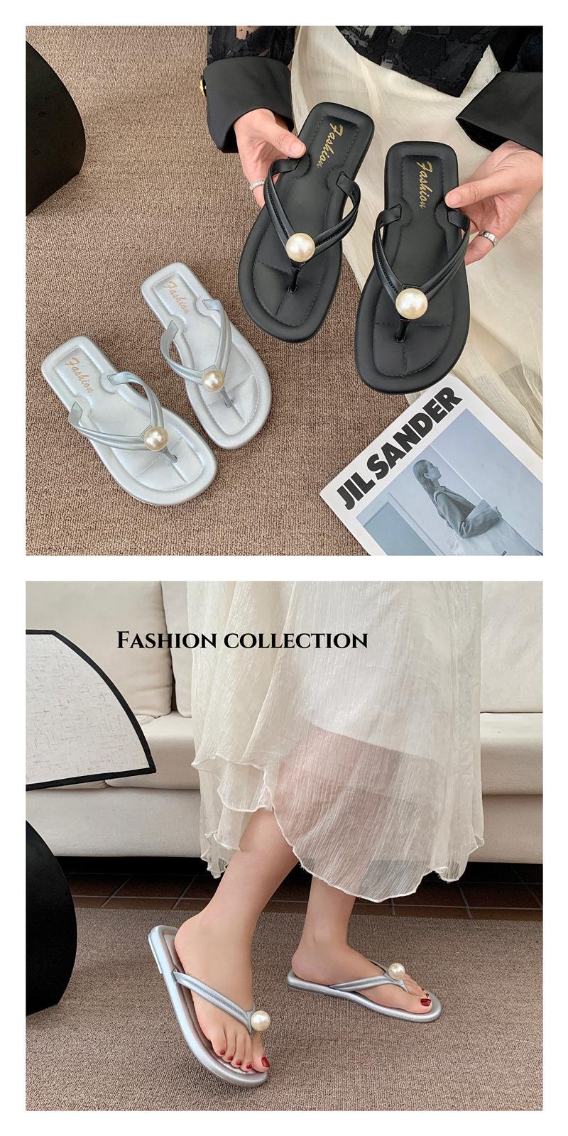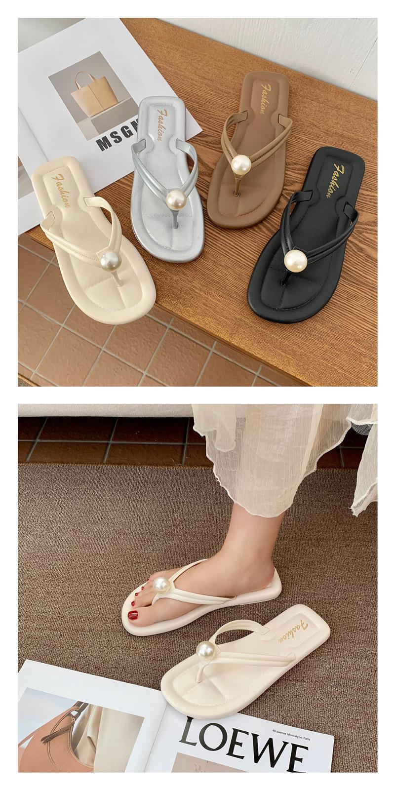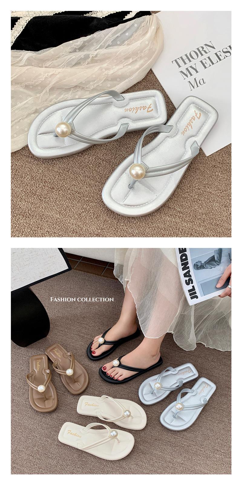 Chanclas de PVC con perlas decorativas para exteriores, chanclas para mujer, zapatillas de playa, ocio, suela suave, venta al por mayor