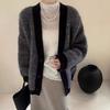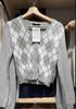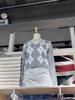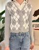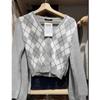 Suéter Estilo Académico Estilo BM Cuadros Diamante Cuello en V Suéter Tejido Bm Cárdigan con Botones de Contraste Abrigo de Manga Larga Top de Mujer