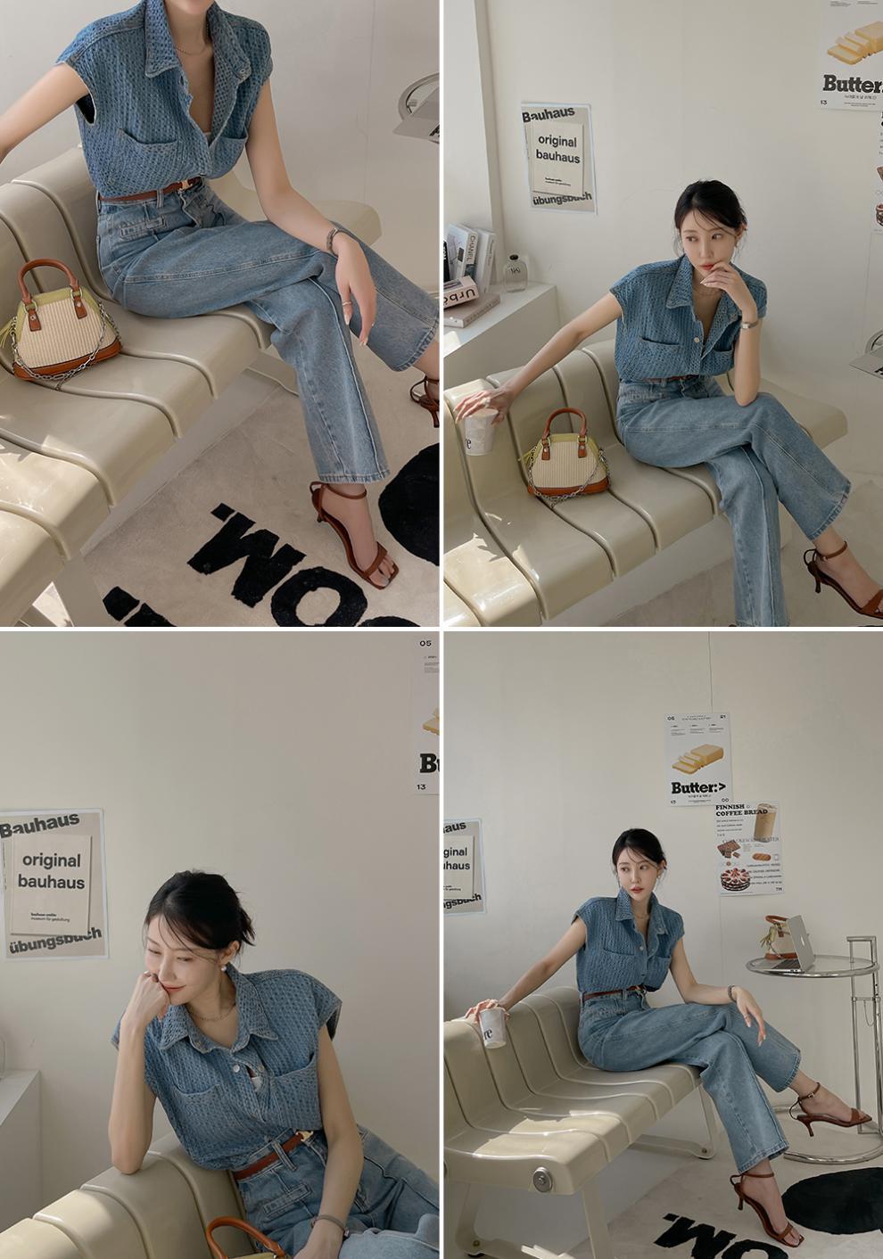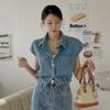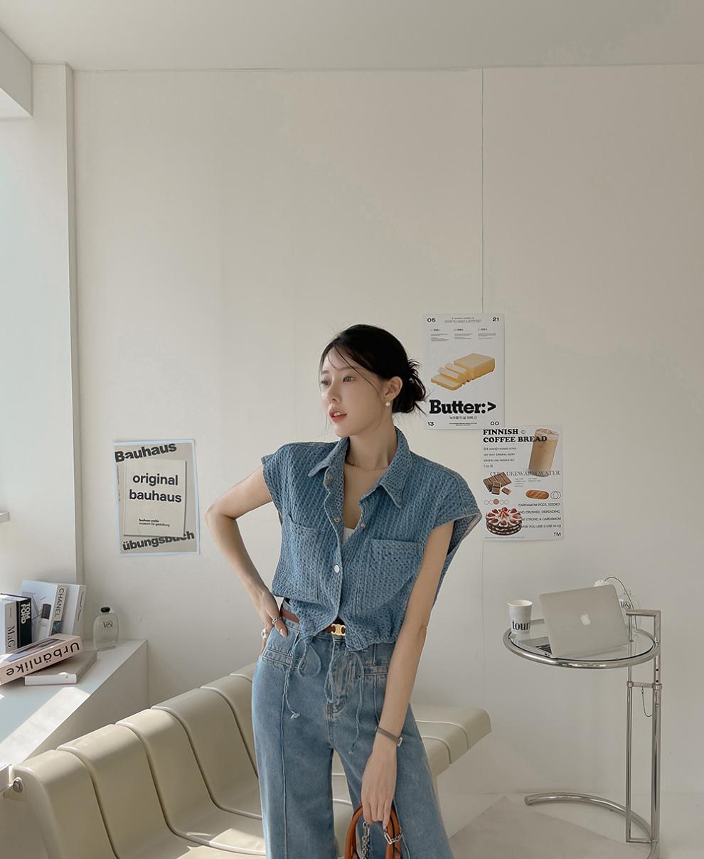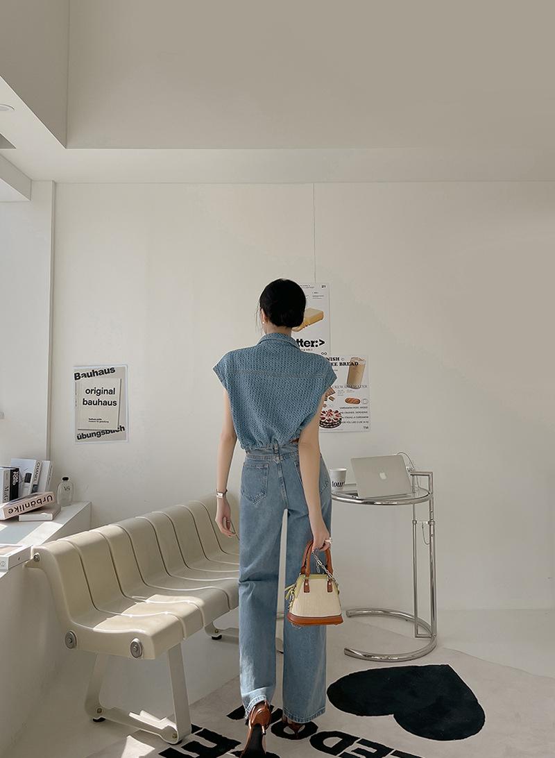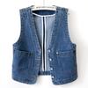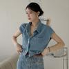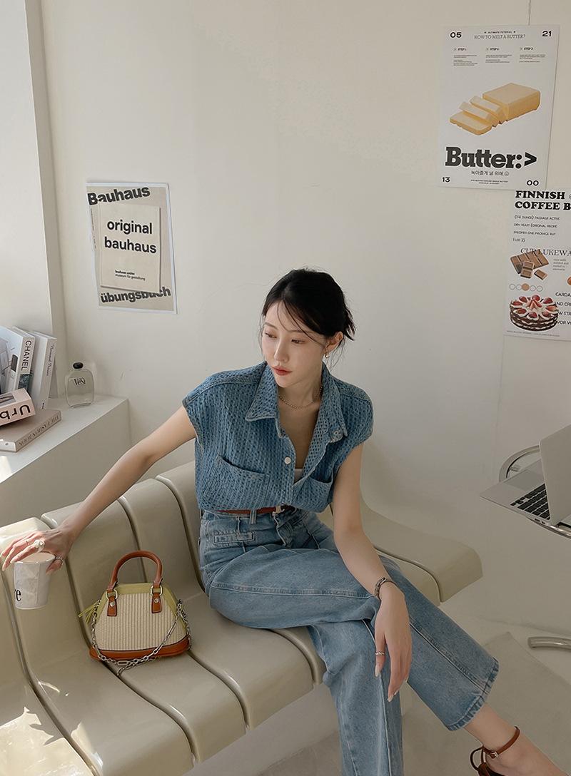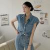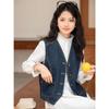 Chaleco vaquero sin mangas con diseño de bolsillo de un solo pecho y solapa retro de estilo francés de otoño coreano 2023 para mujer