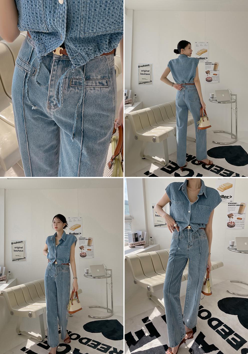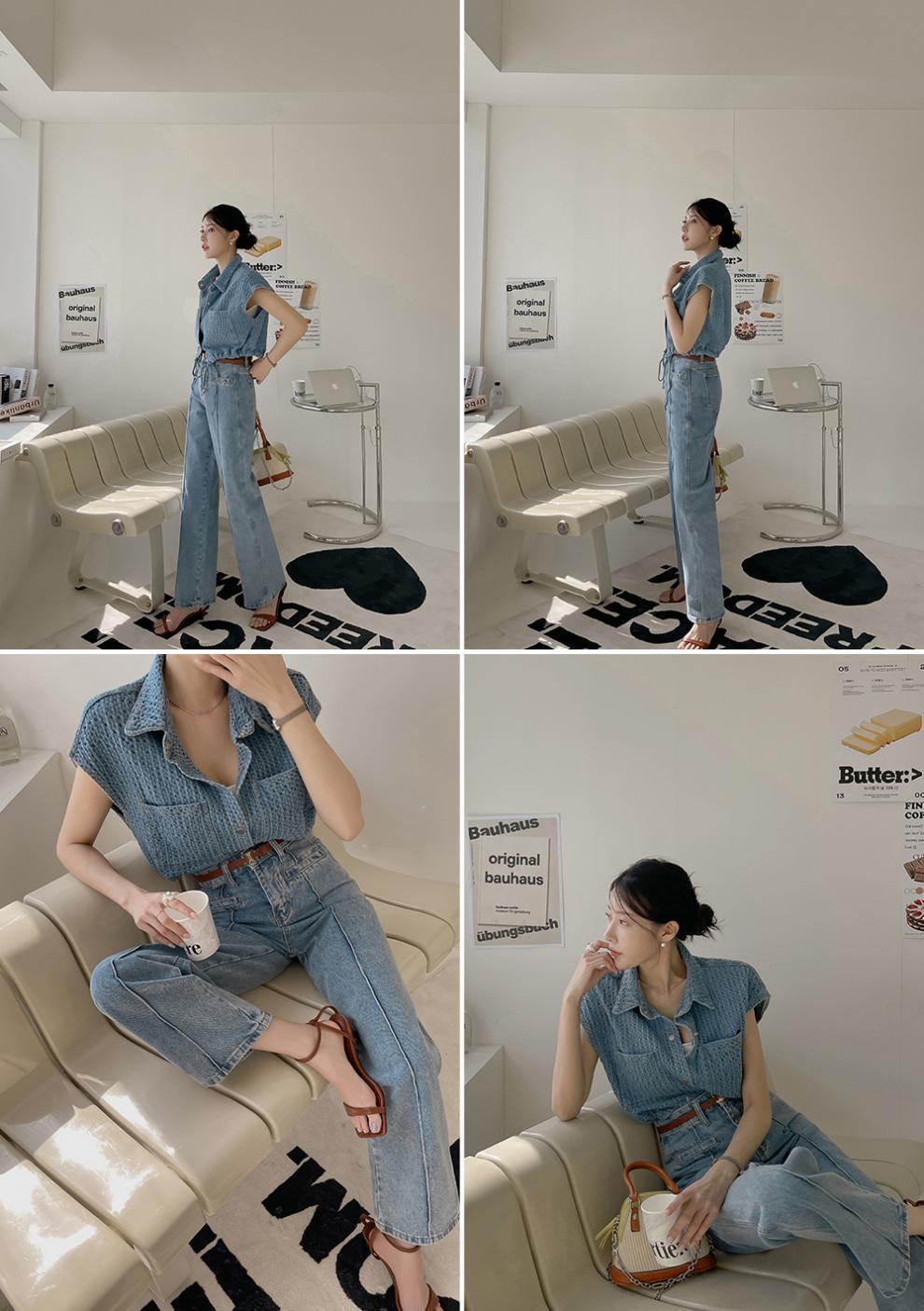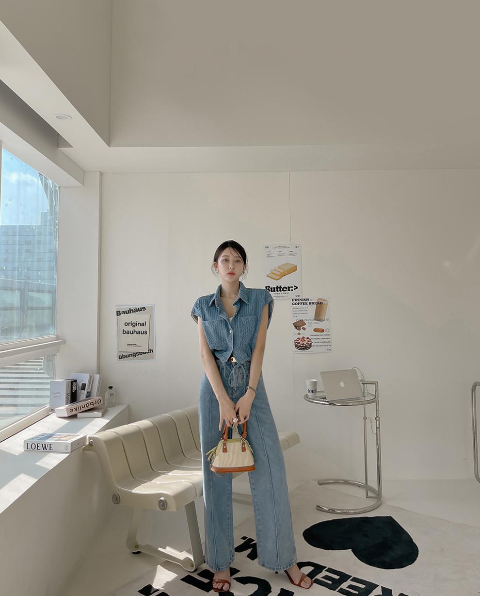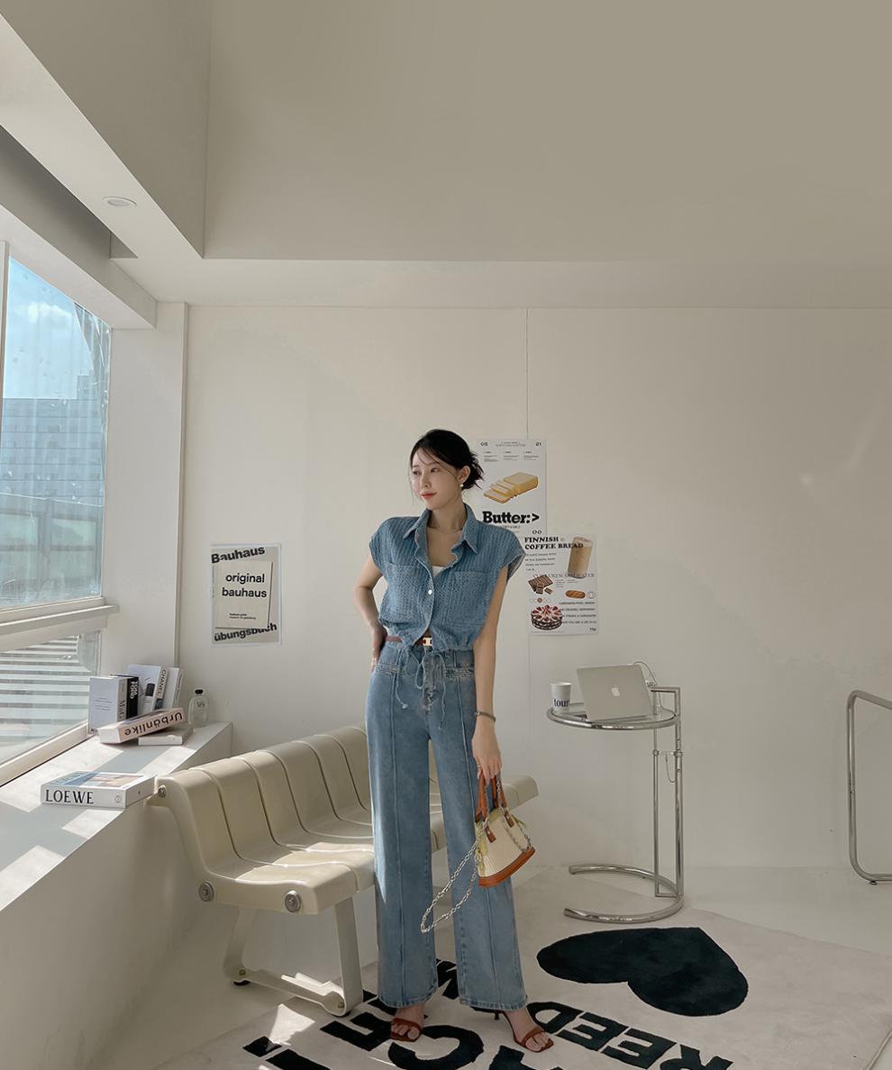 Chaleco vaquero sin mangas con diseño de bolsillo de un solo pecho y solapa retro de estilo francés de otoño coreano 2023 para mujer