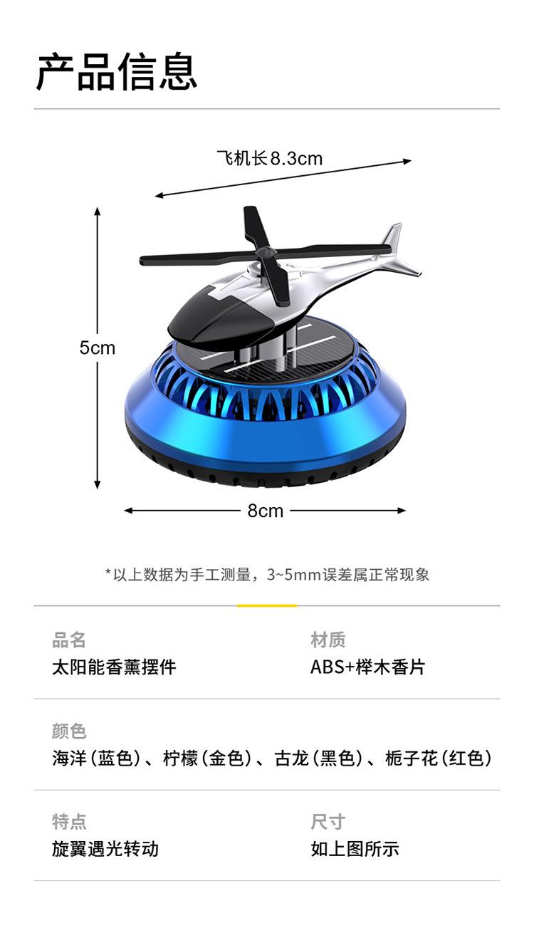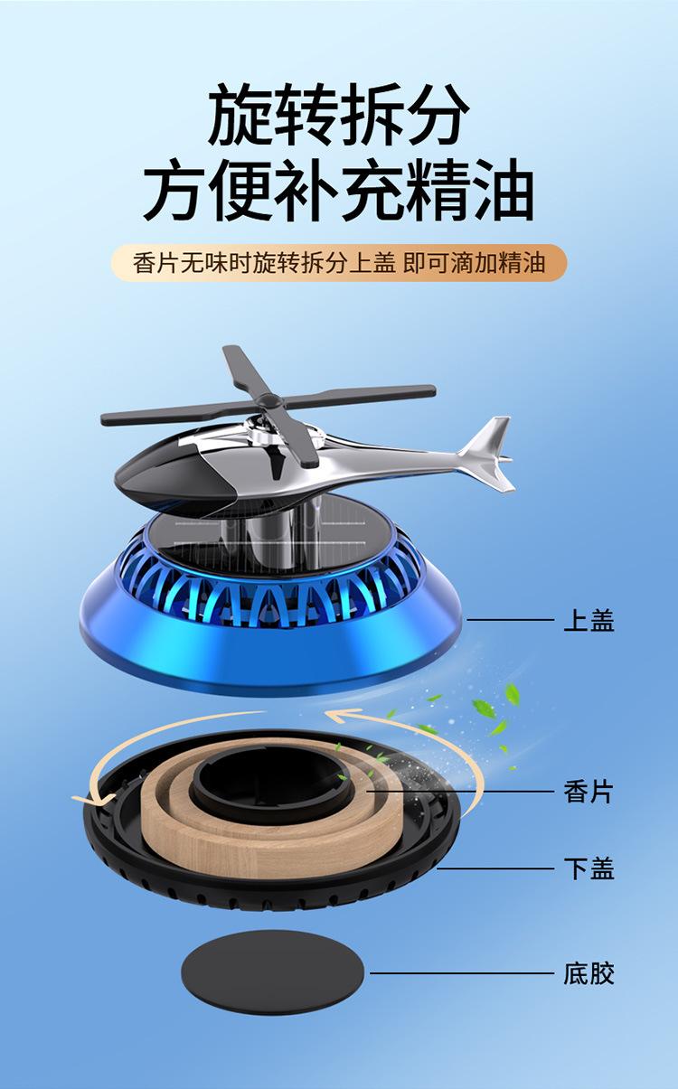 Aromaterapia para coche helicóptero solar perfume para coche fragancia para coche duradera decoración para coche adornos de perfume
